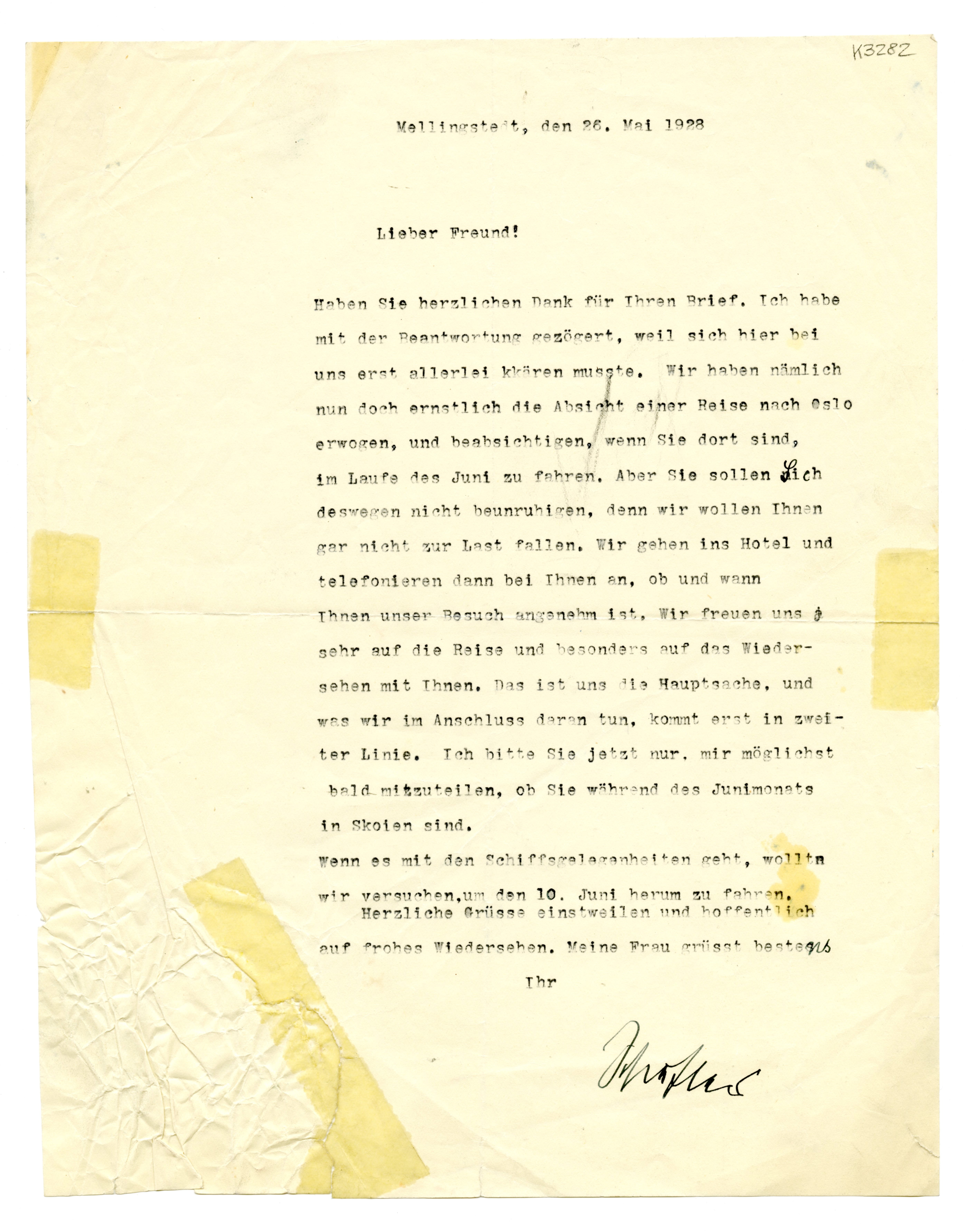 MM K 3282, Munchmuseet. Datert 26.05.1928. Brev fra Gustav Schiefler.