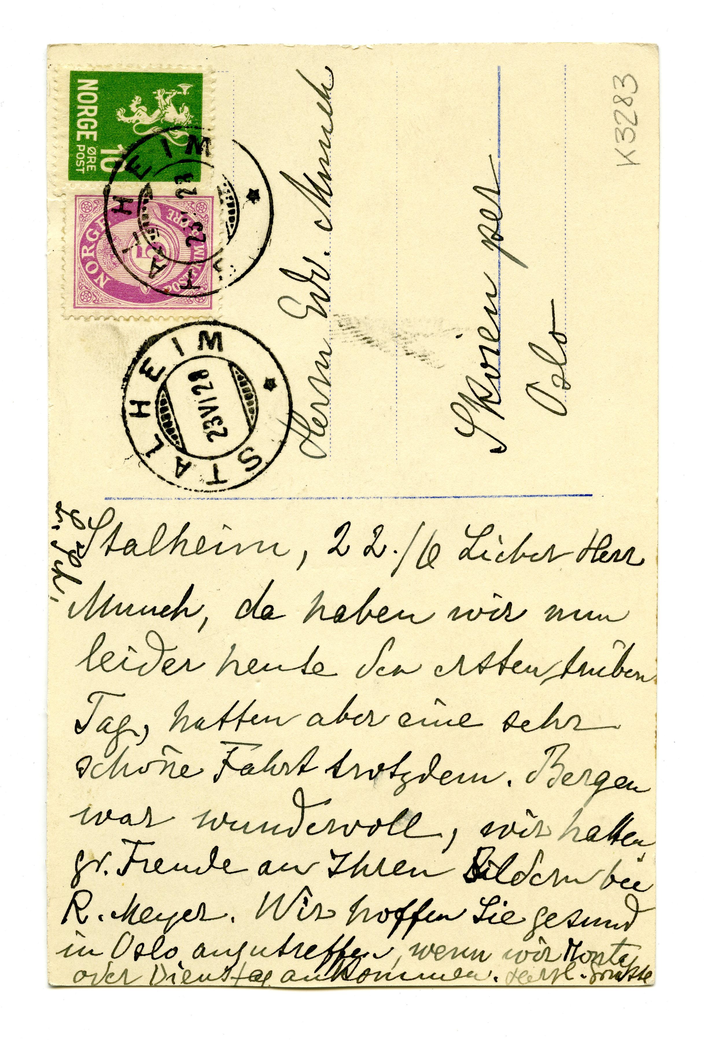 MM K 3283, Munchmuseet. Datert 22.06.1928. Brev fra Luise Schiefler.