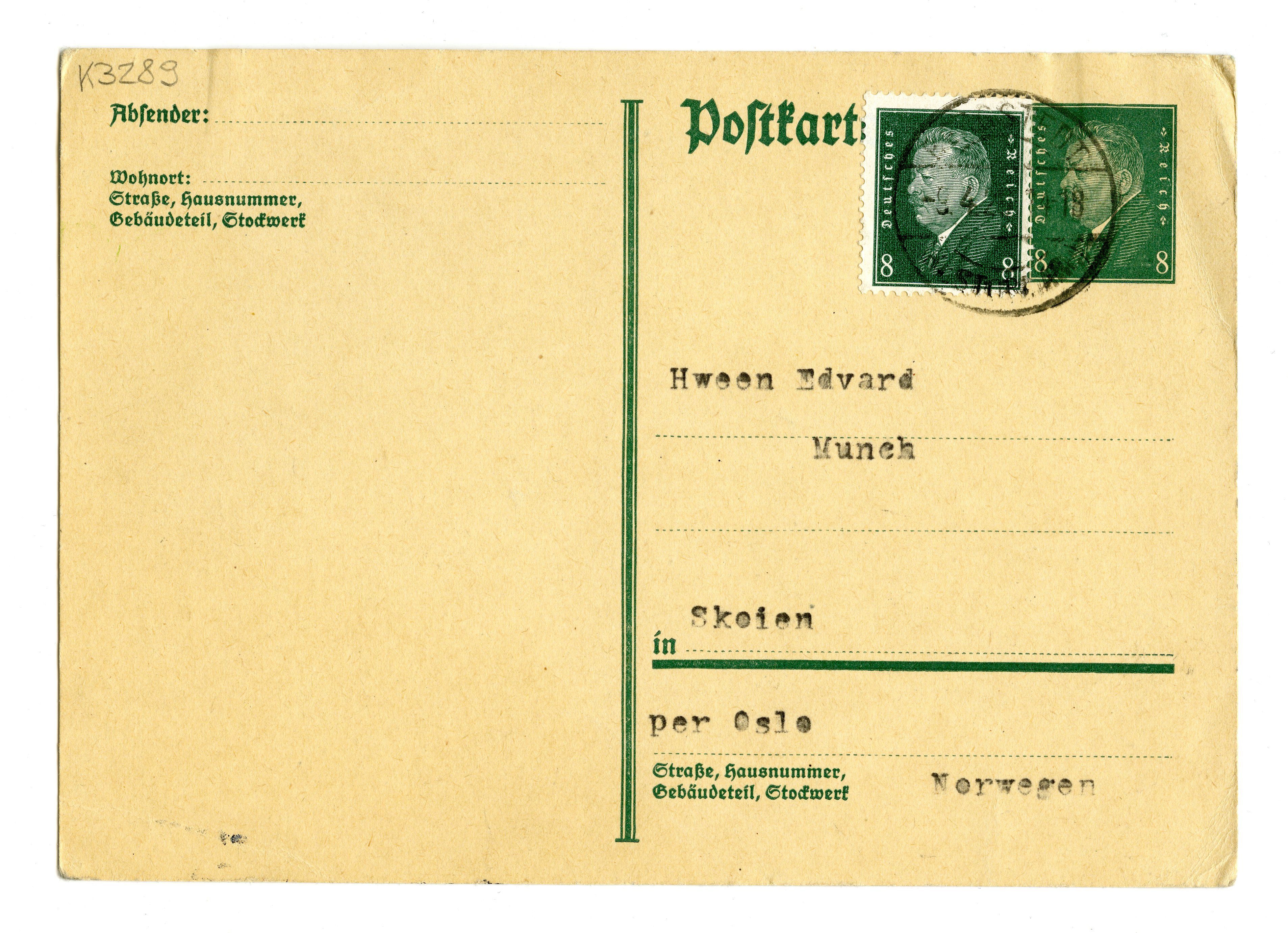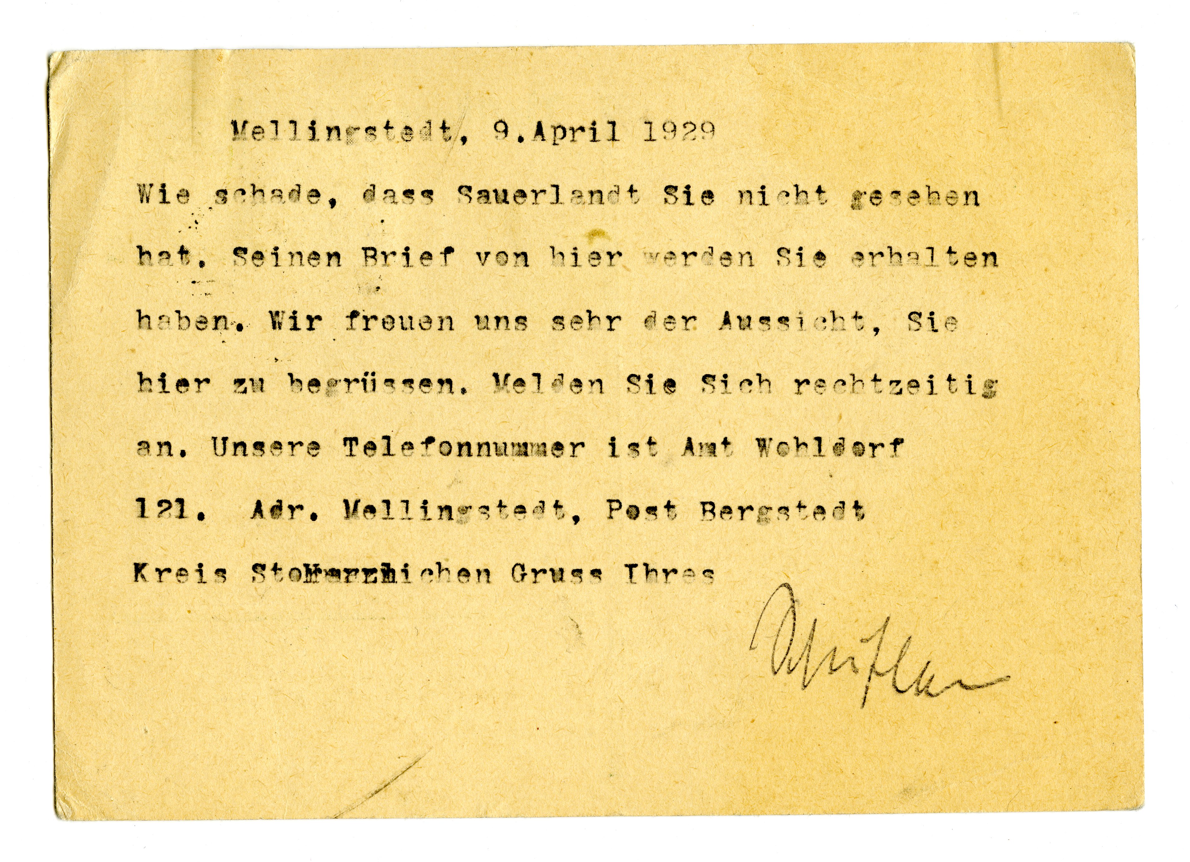 MM K 3289, Munchmuseet. Datert 09.04.1929. Brev fra Gustav Schiefler.