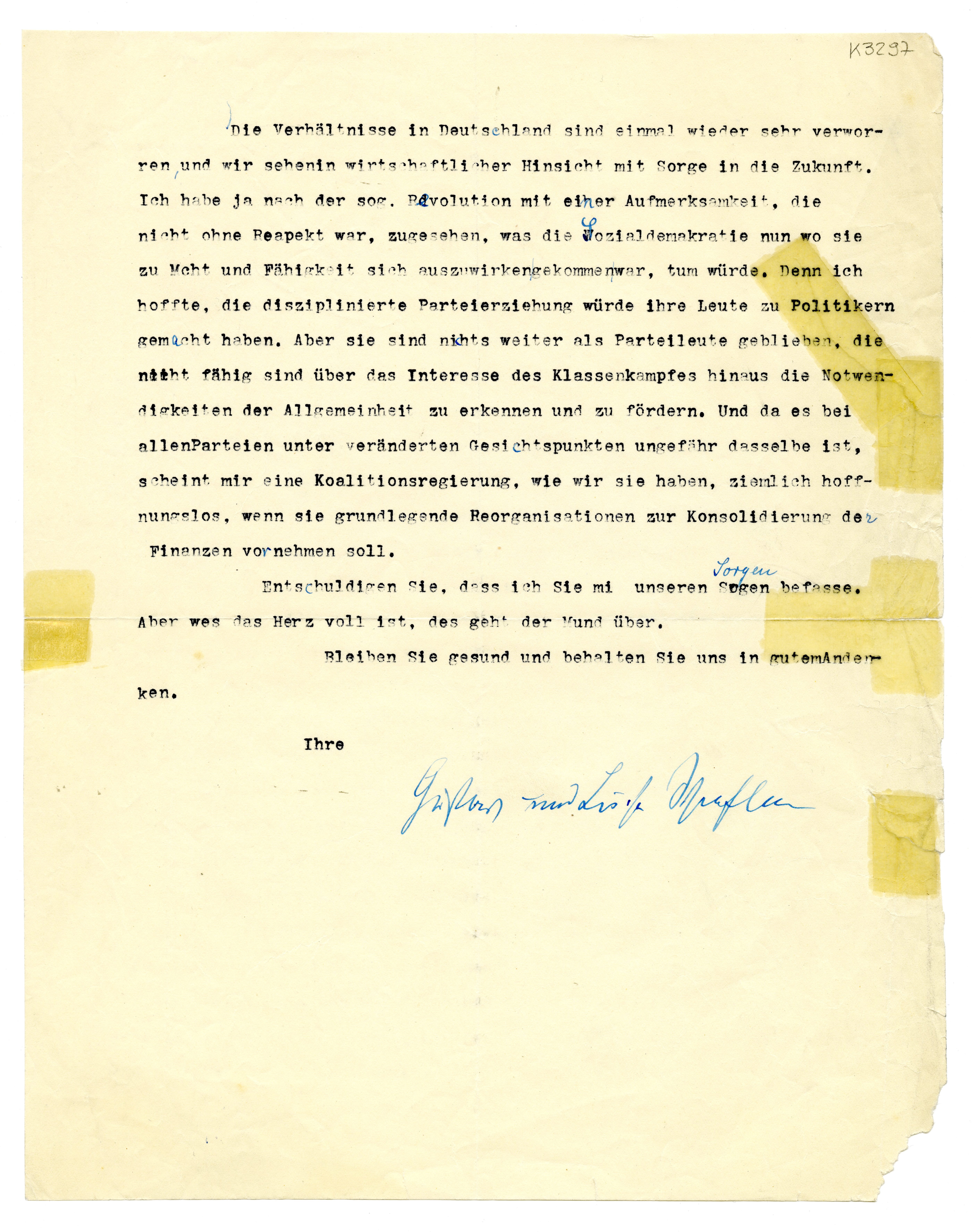MM K 3297, Munchmuseet. Ikke datert. Brev fra Gustav Schiefler, Luise Schiefler.