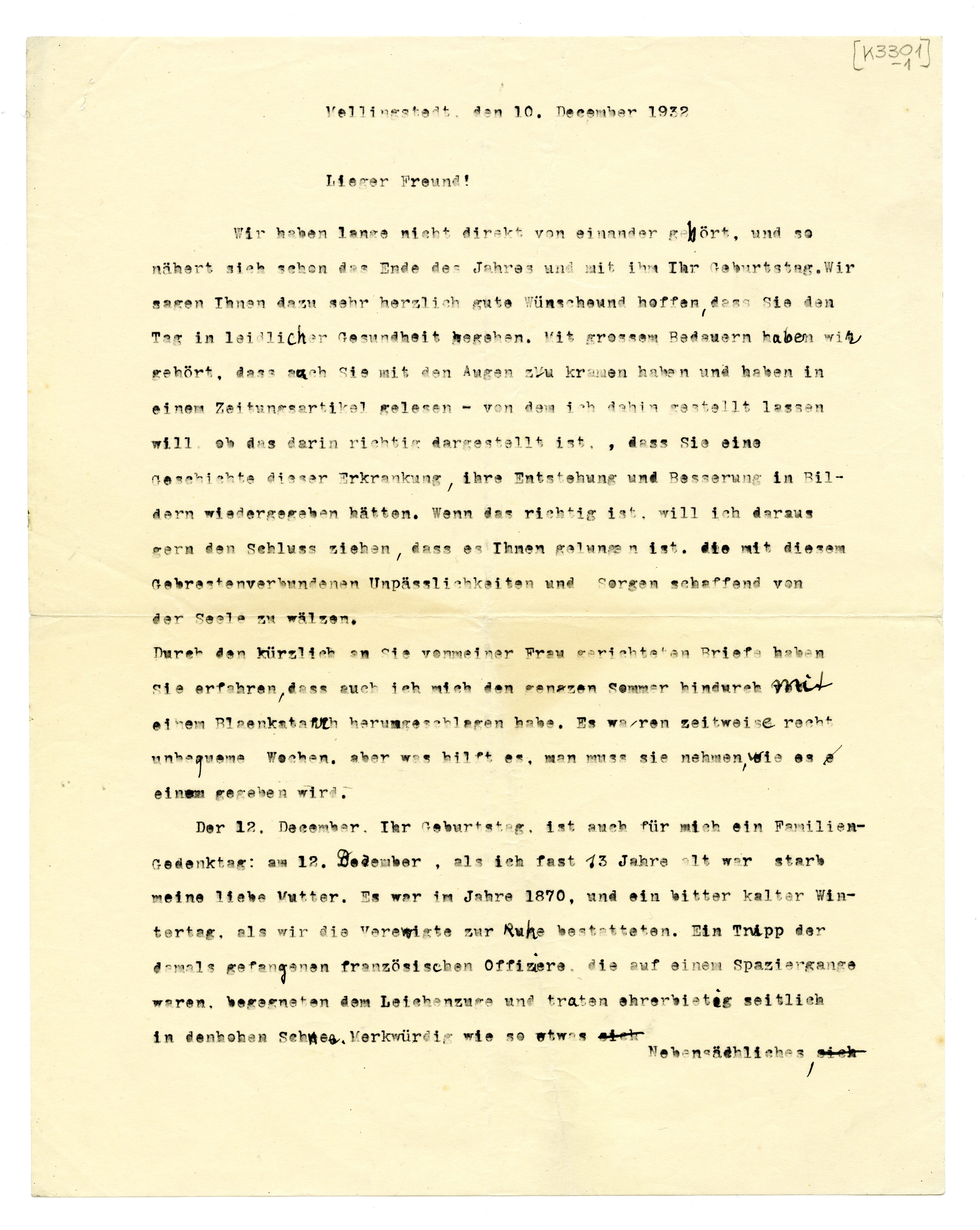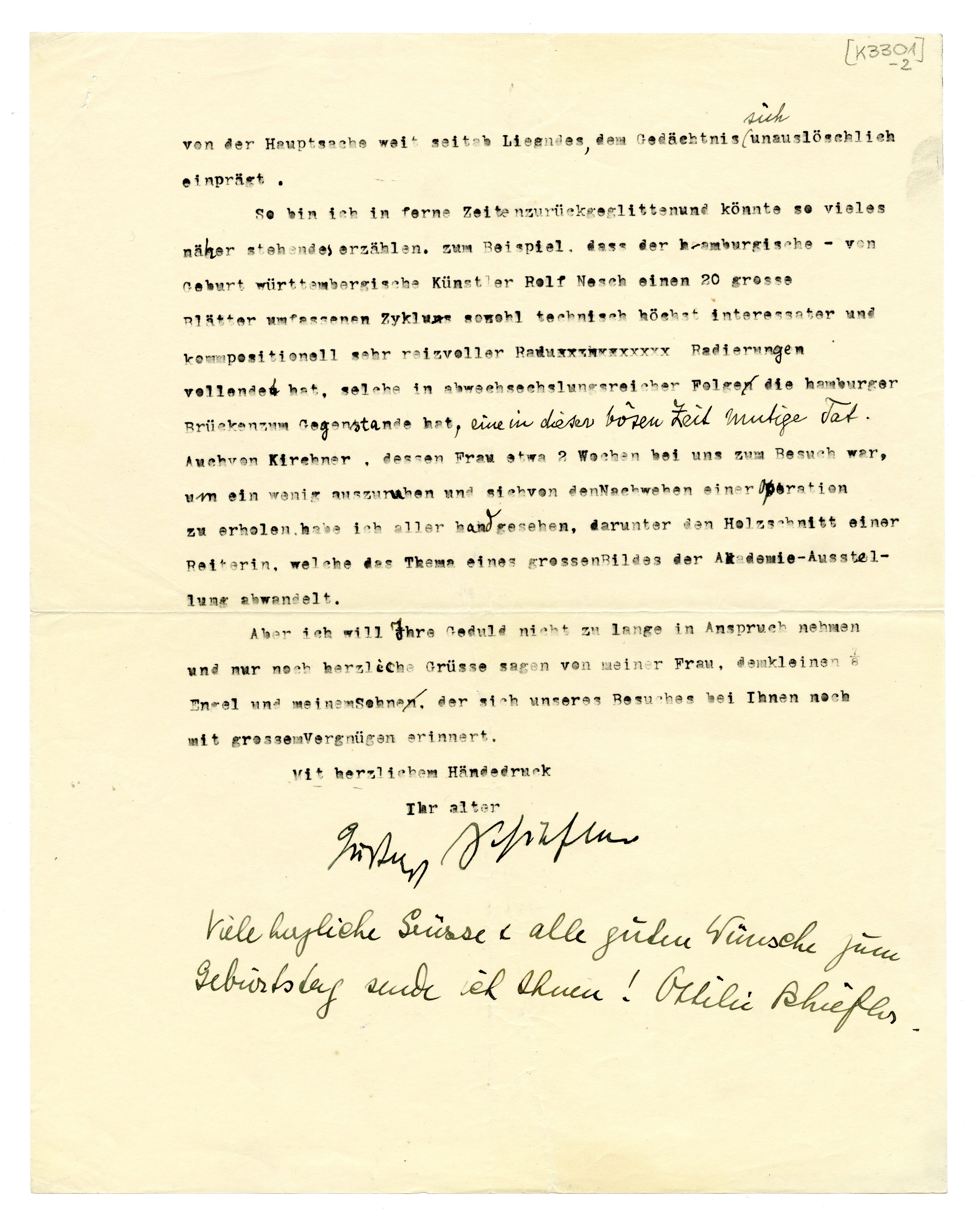 MM K 3301, Munchmuseet. Datert 10.12.1932. Brev fra Gustav Schiefler, Ottilie Schiefler.