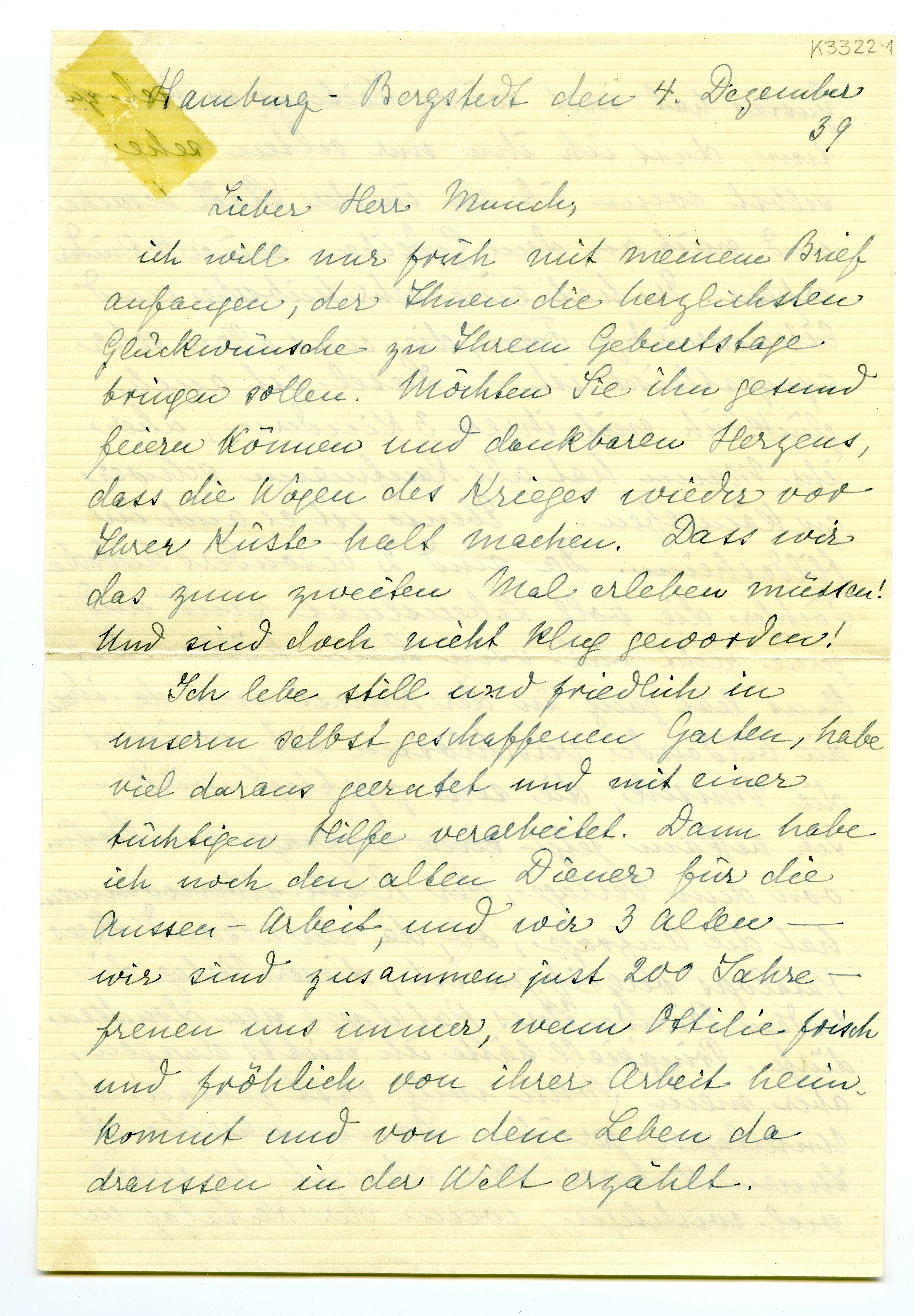 MM K 3322, Munchmuseet. Datert 04.12.1939. Brev fra Luise Schiefler.