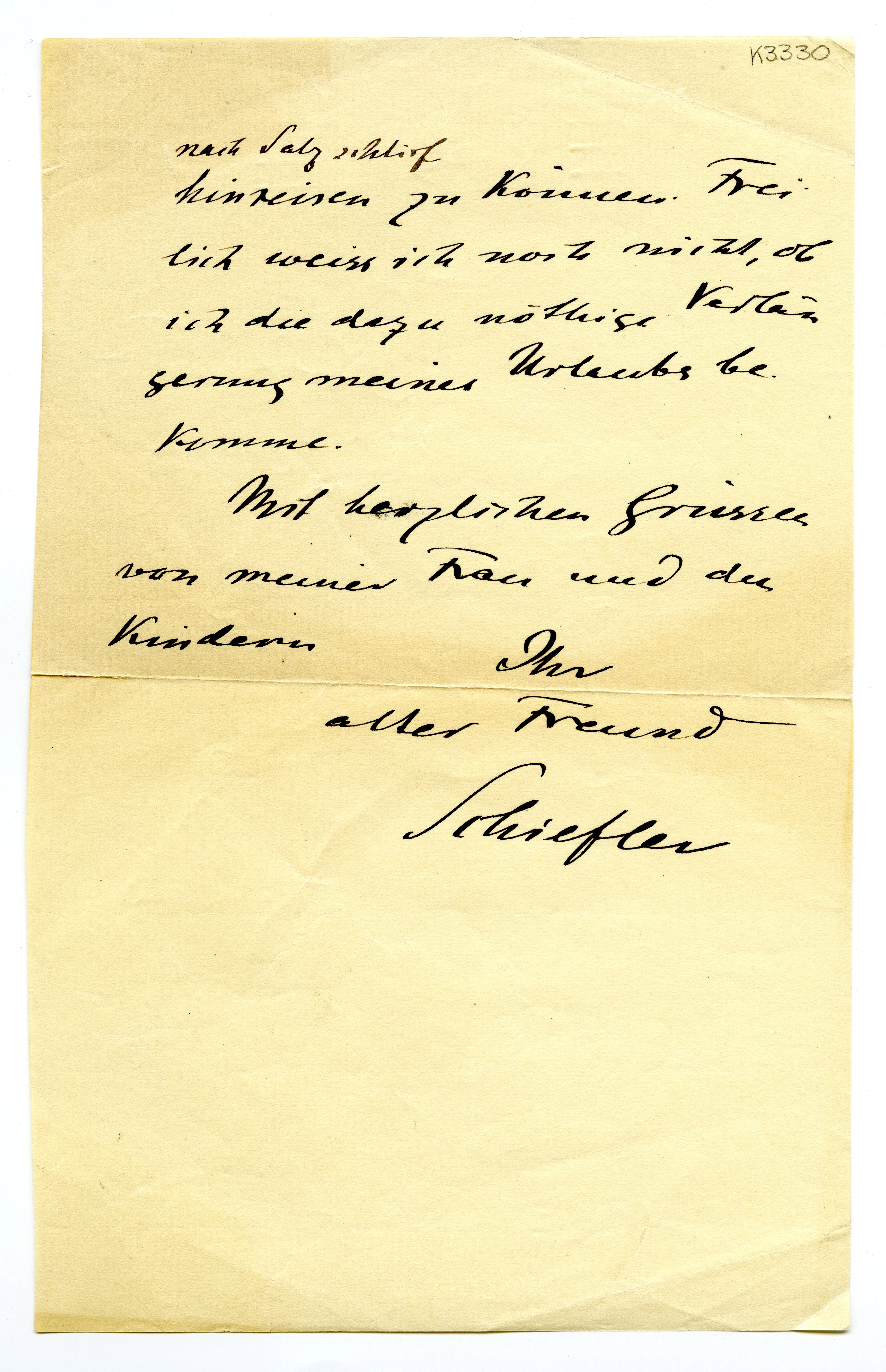 MM K 3330, Munchmuseet. Ikke datert. Brev fra Gustav Schiefler.