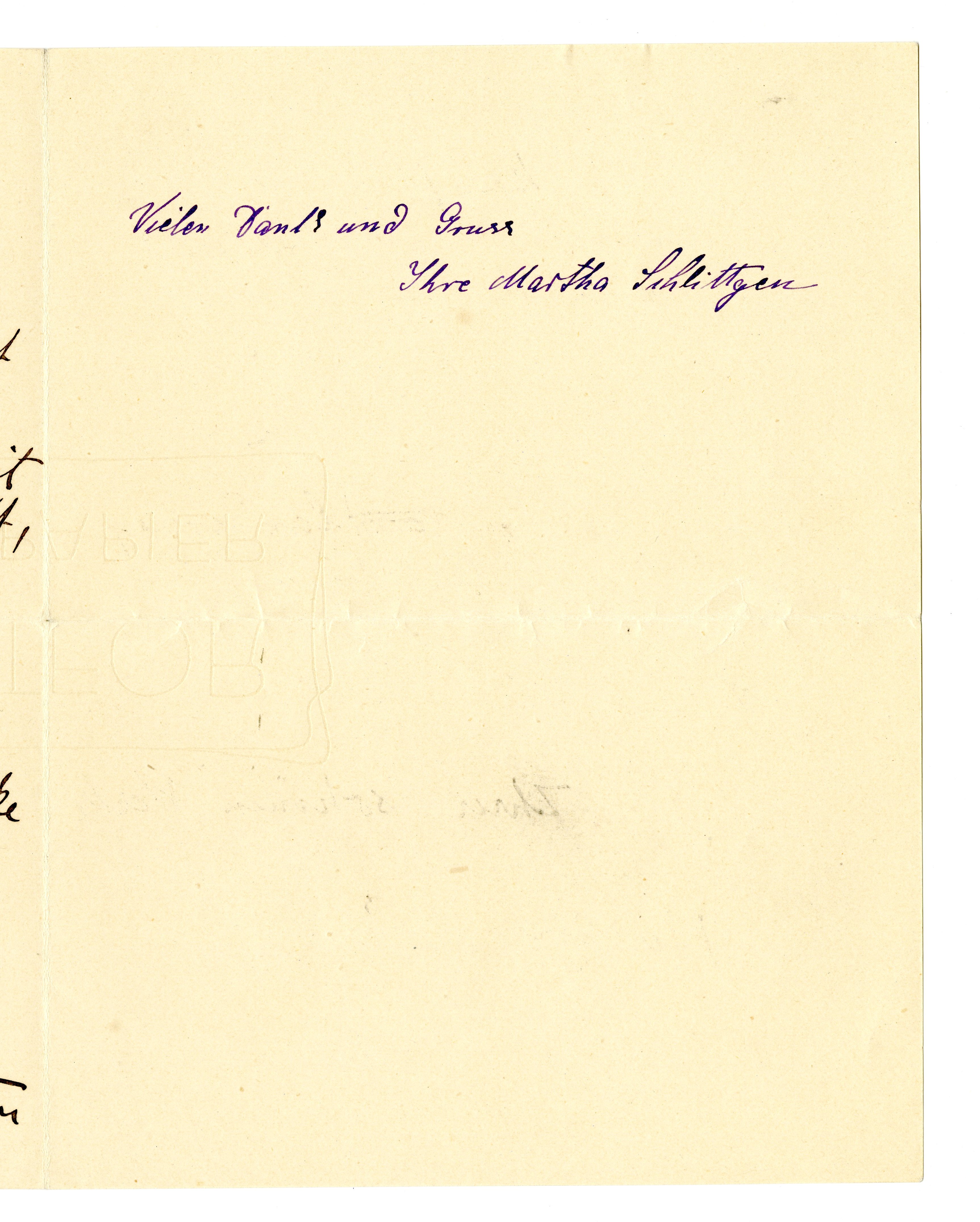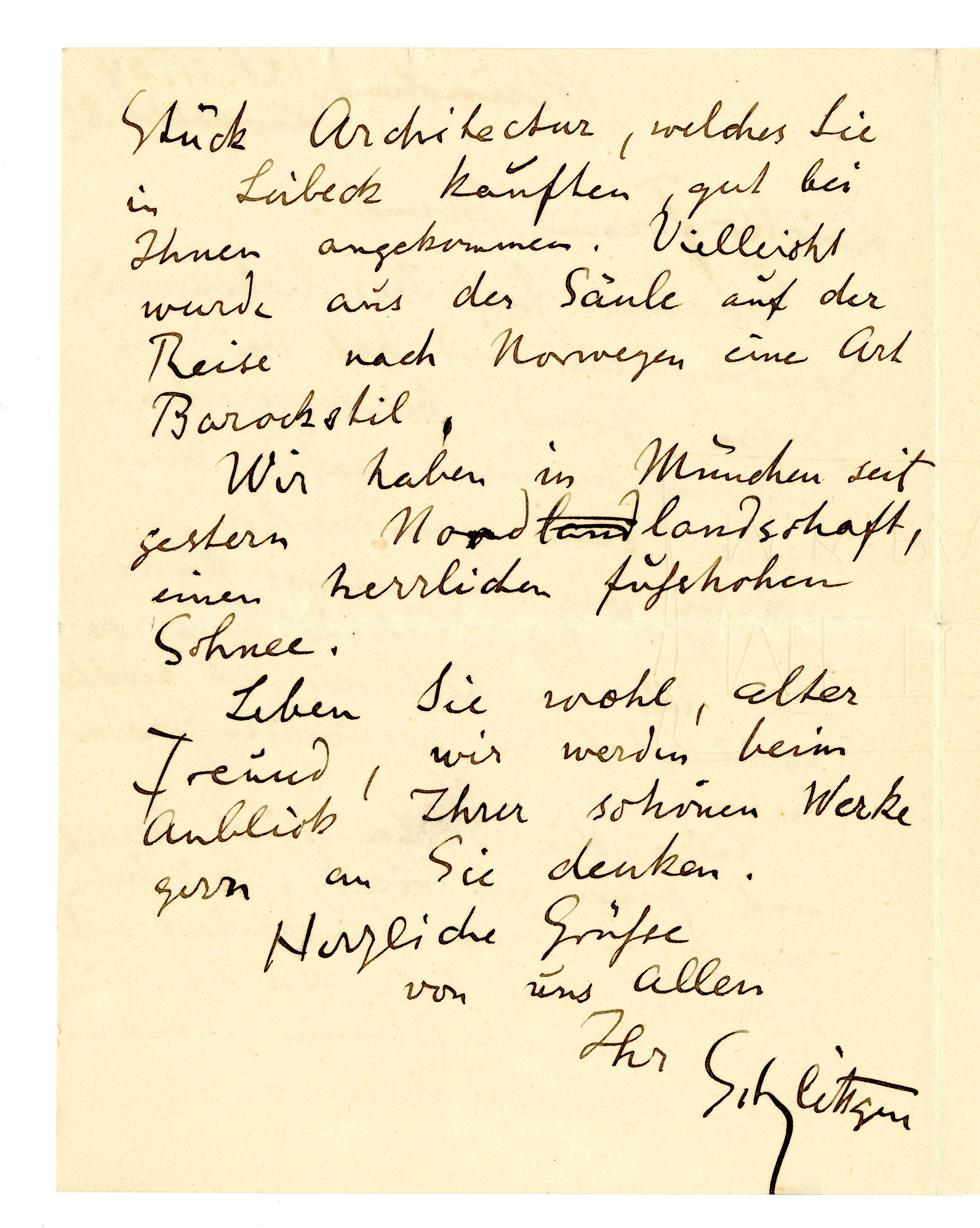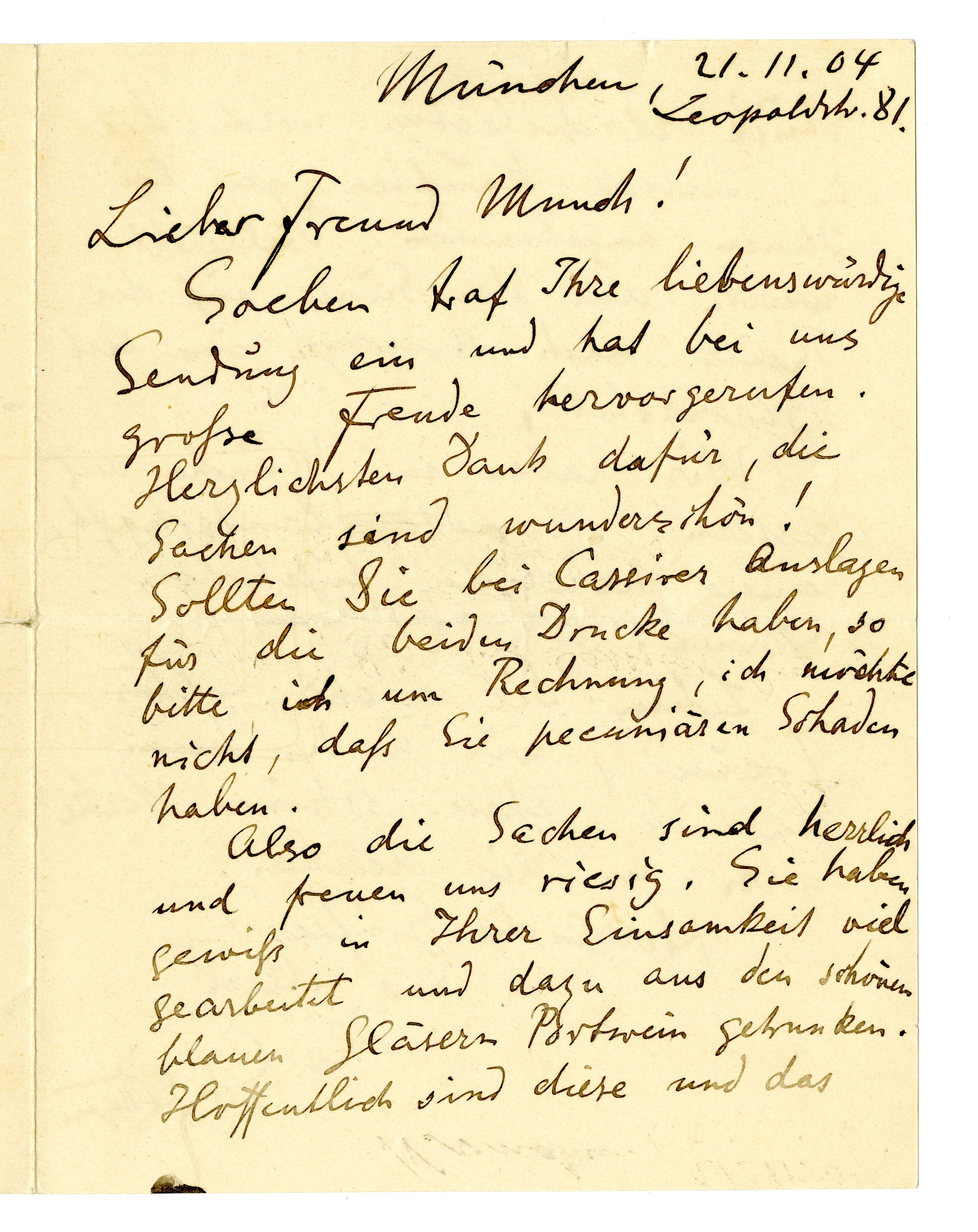 MM K 3335, Munchmuseet. Datert 21.11.1904. Brev fra Hermann Schlittgen, Martha Schlittgen.