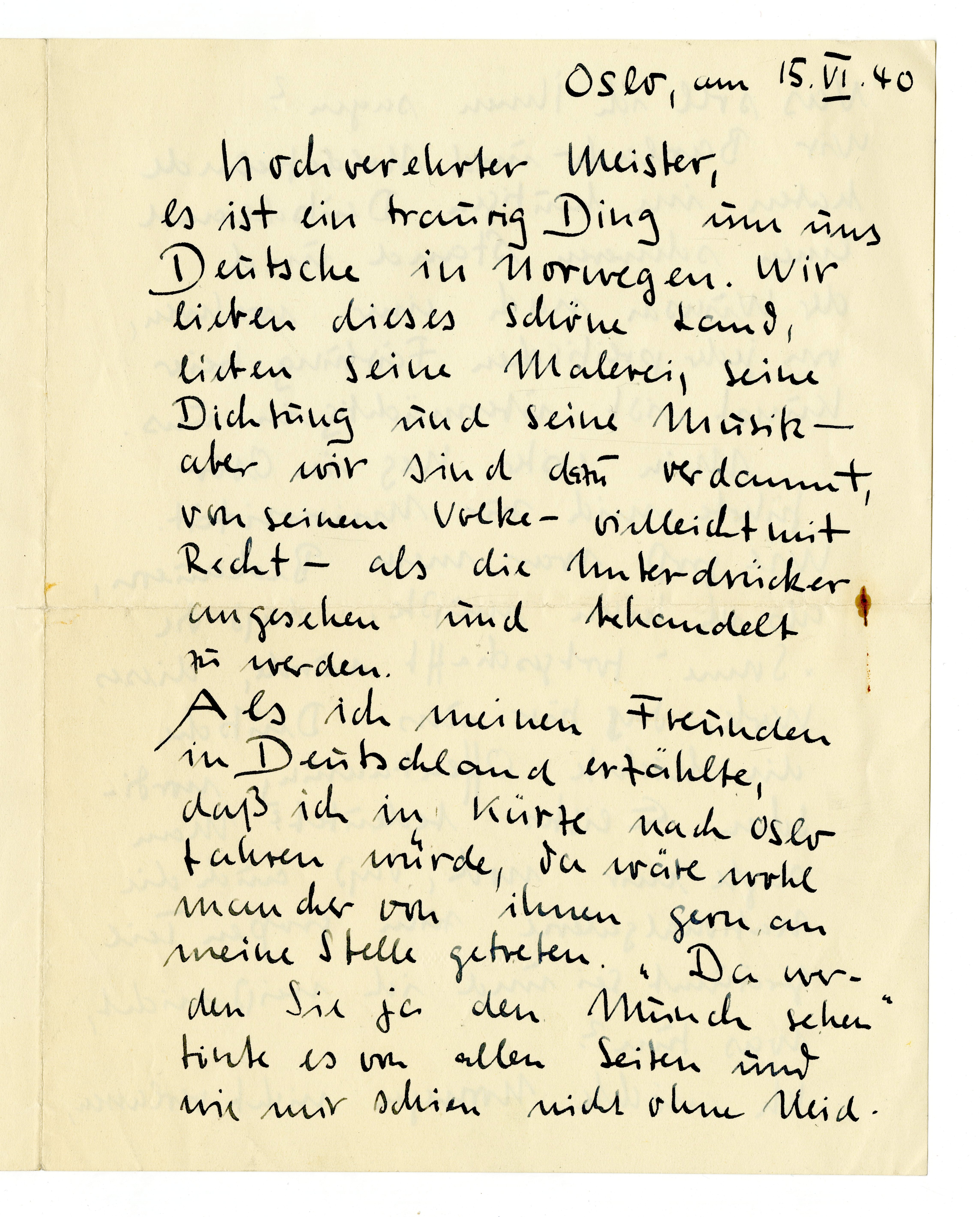 MM K 3351, Munchmuseet. Datert 15.06.1940. Brev fra Hans Joachim Soltau.