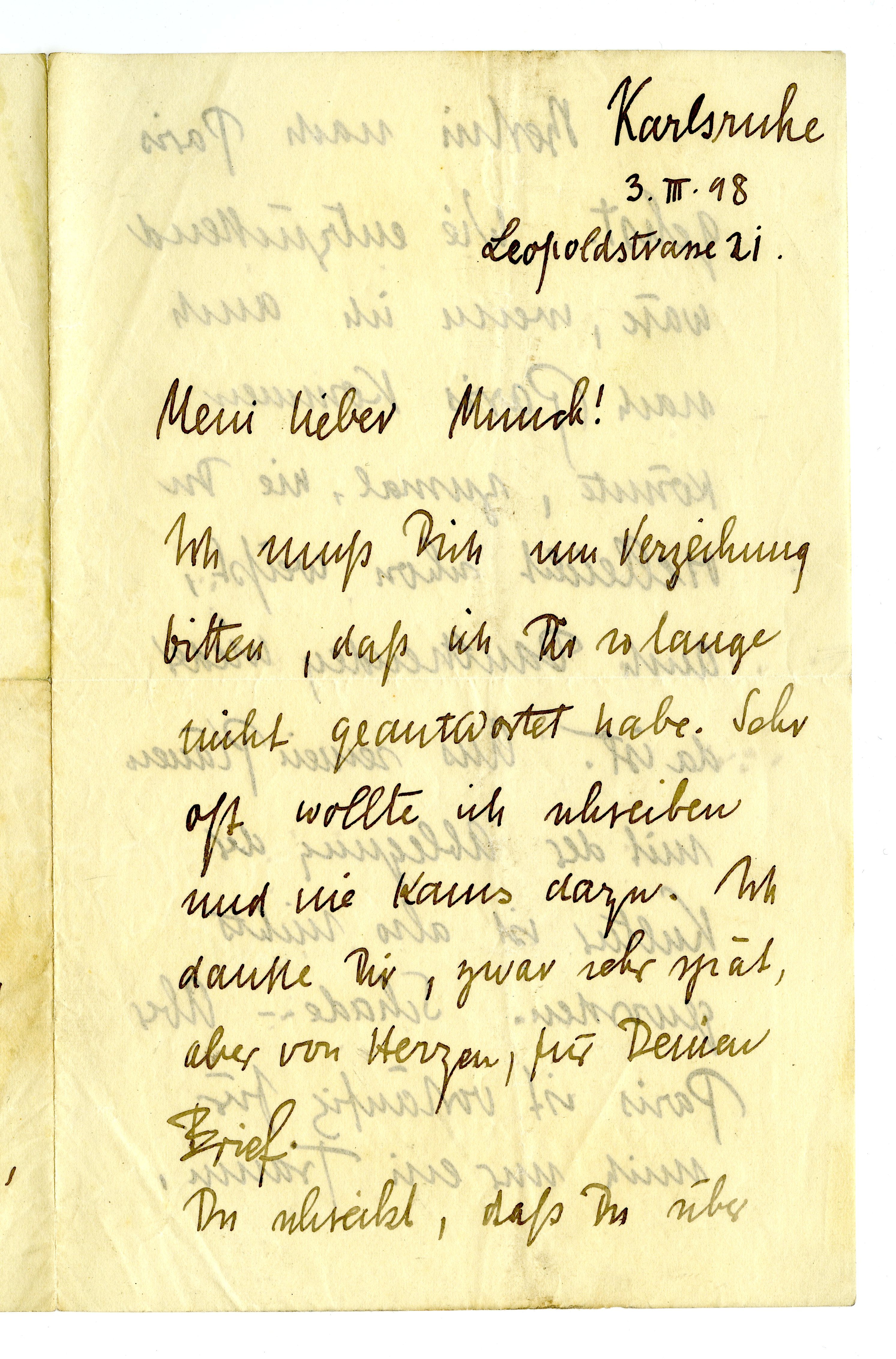 MM K 3428, Munchmuseet. Datert 03.03.1898. Brev fra Emil Rudolf Weiss.