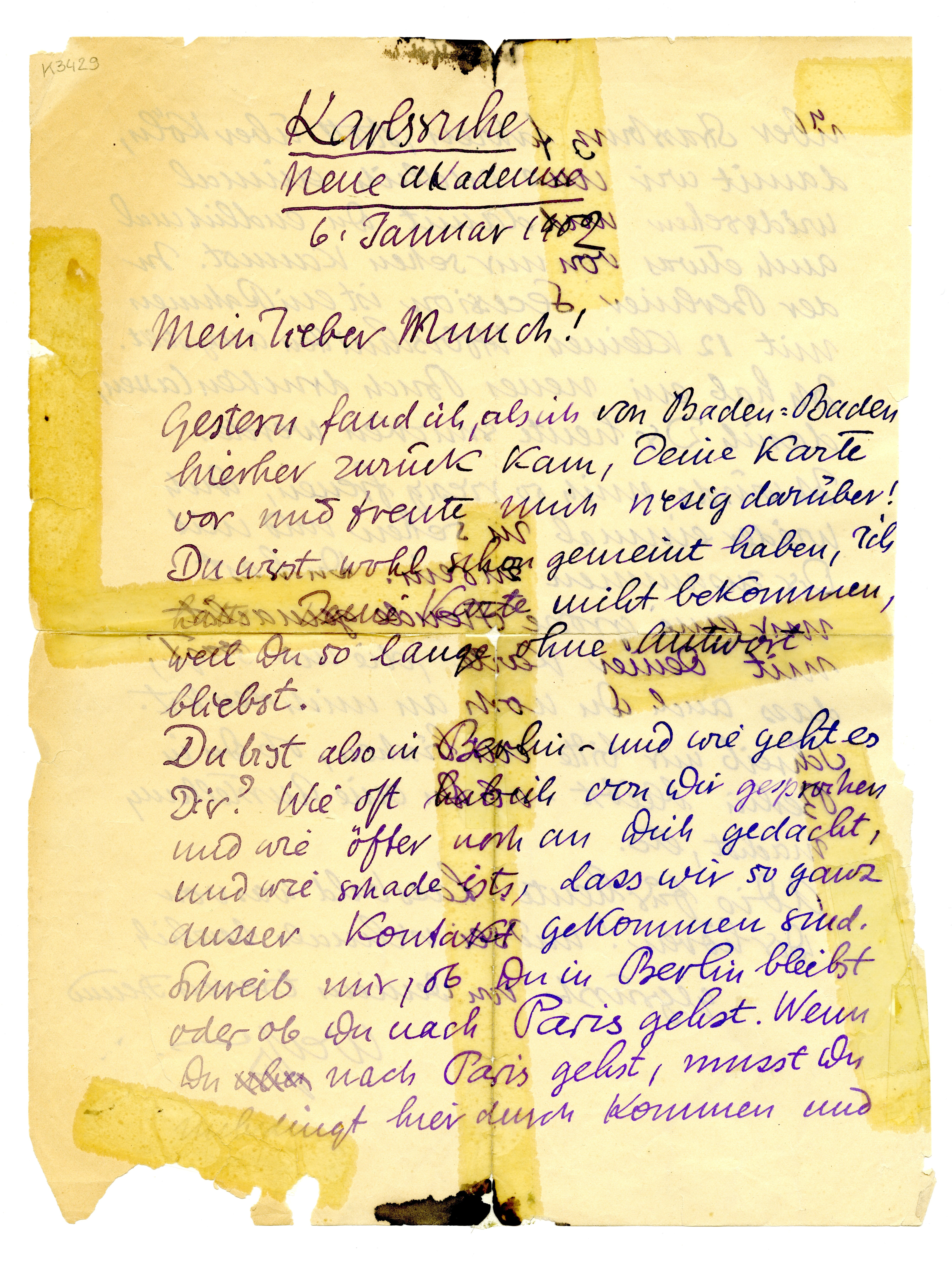 MM K 3429, Munchmuseet. Datert 06.01.1902. Brev fra Emil Rudolf Weiss.