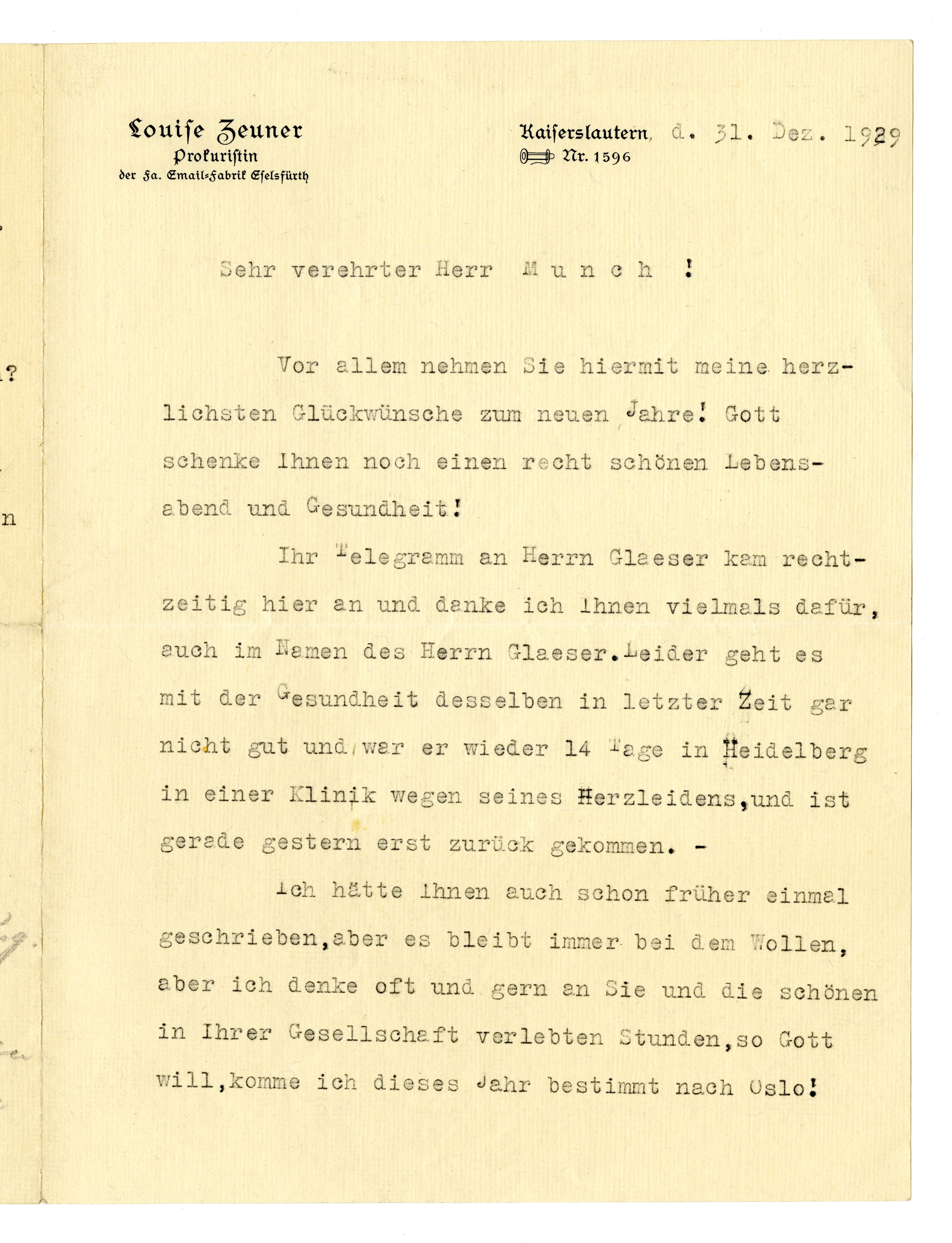 MM K 3451, Munchmuseet. Datert 31.12.1929. Brev fra Der Fa. Email-Fabrik Eselsfürth.
