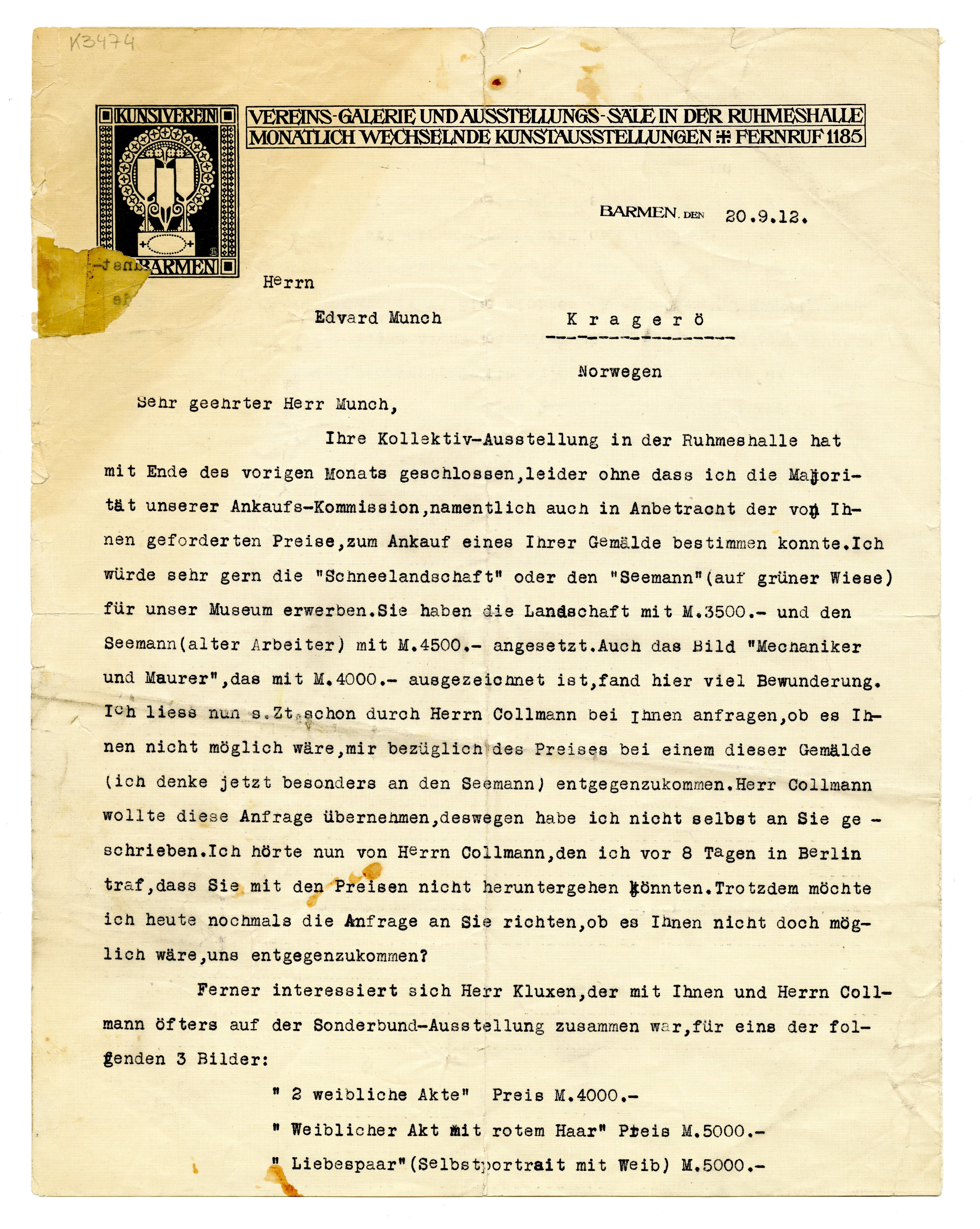 mann öfters auf der Sonderbund-Ausstellung zusammen war, für eins der fol-