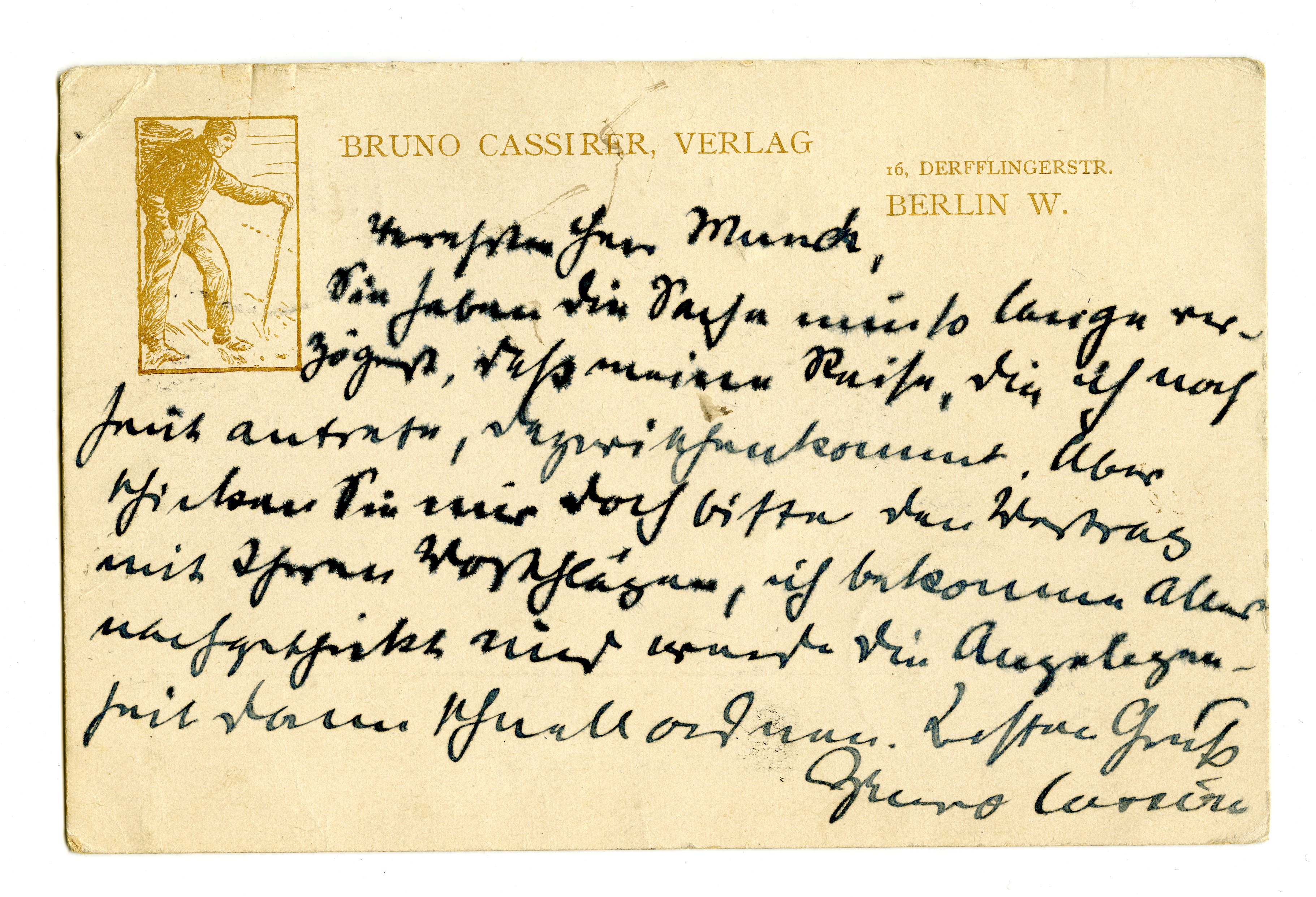 MM K 3479, Munchmuseet. Datert 24.05.1904. Brev fra Bruno Cassirer, Bruno Cassirer Verlag.