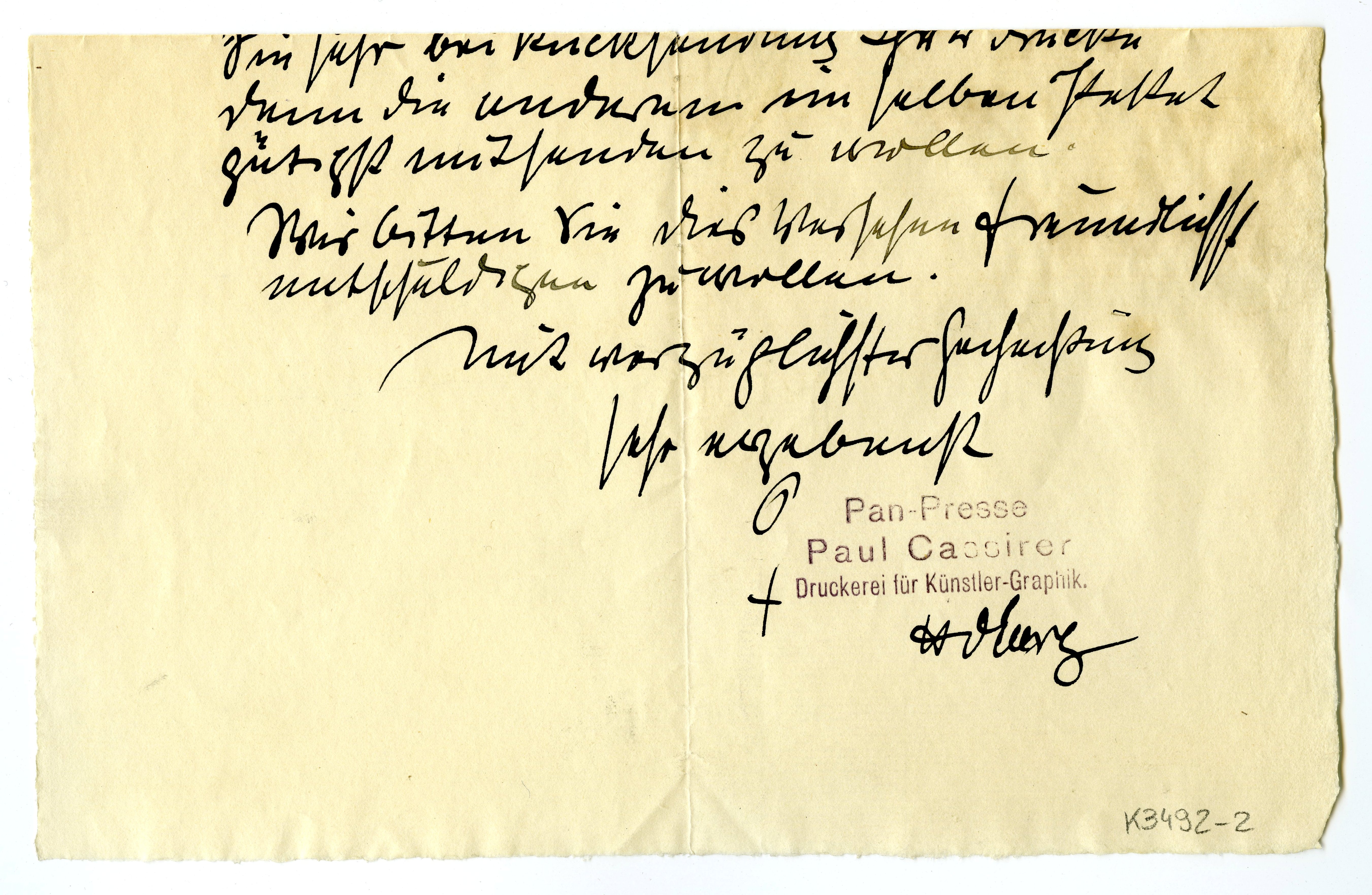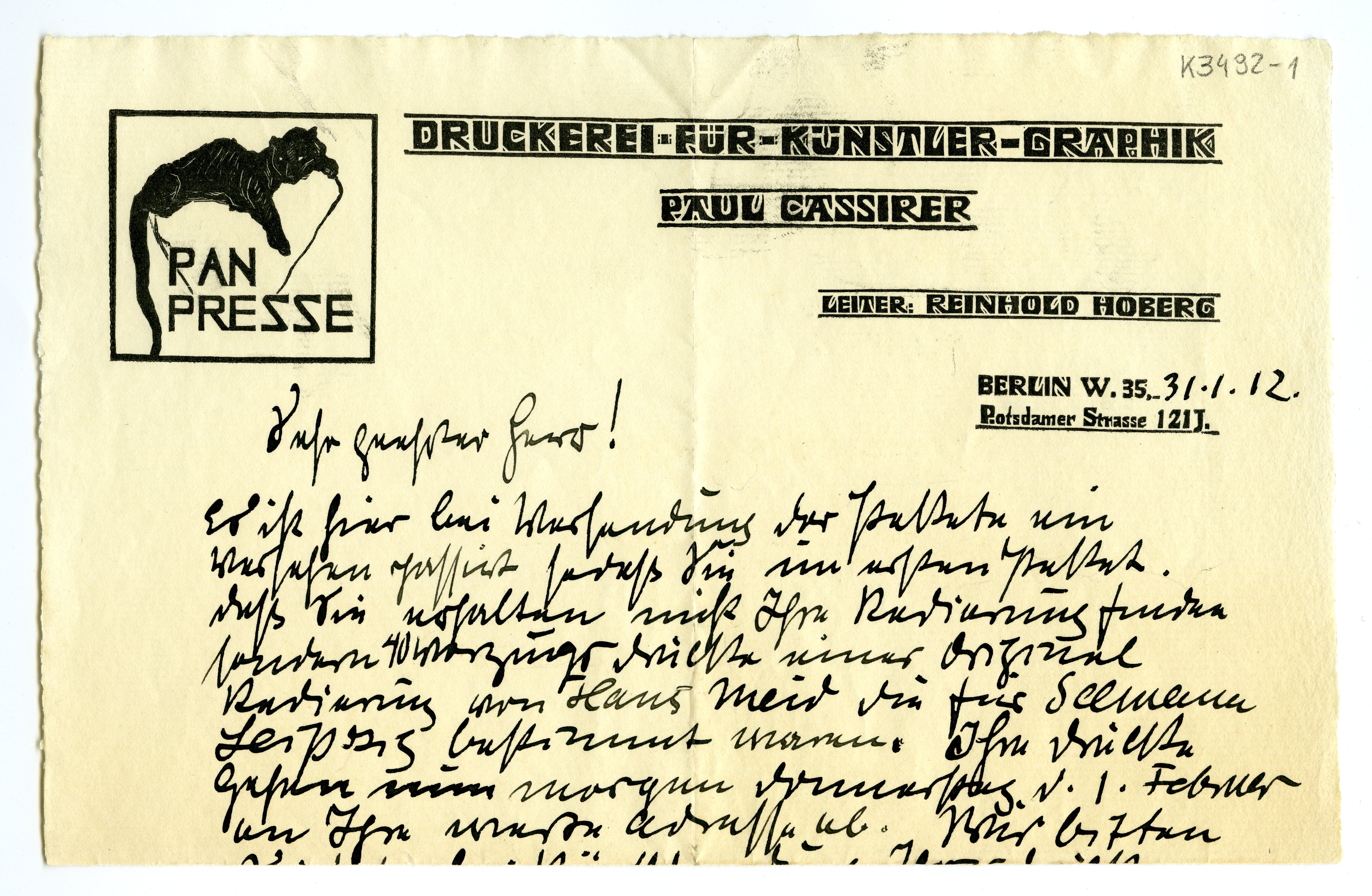 MM K 3492, Munchmuseet. Datert 31.01.1912. Brev fra Paul Cassirer, Paul Cassirer Kunst-ausstellung und Verlagsanstalt.