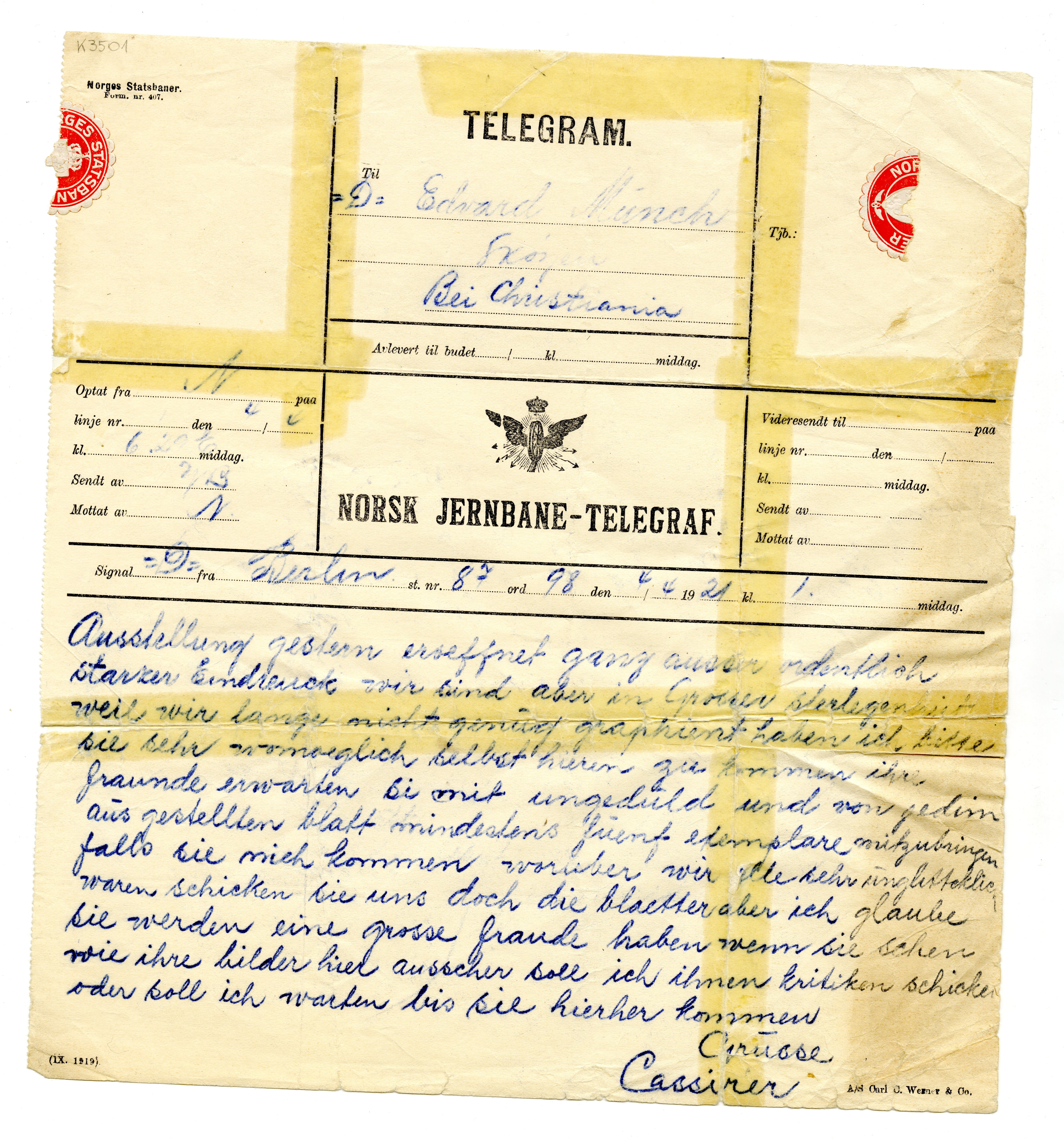 MM K 3501, Munchmuseet. Datert 04.04.1921. Brev fra Paul Cassirer, Paul Cassirer Kunst-ausstellung und Verlagsanstalt.