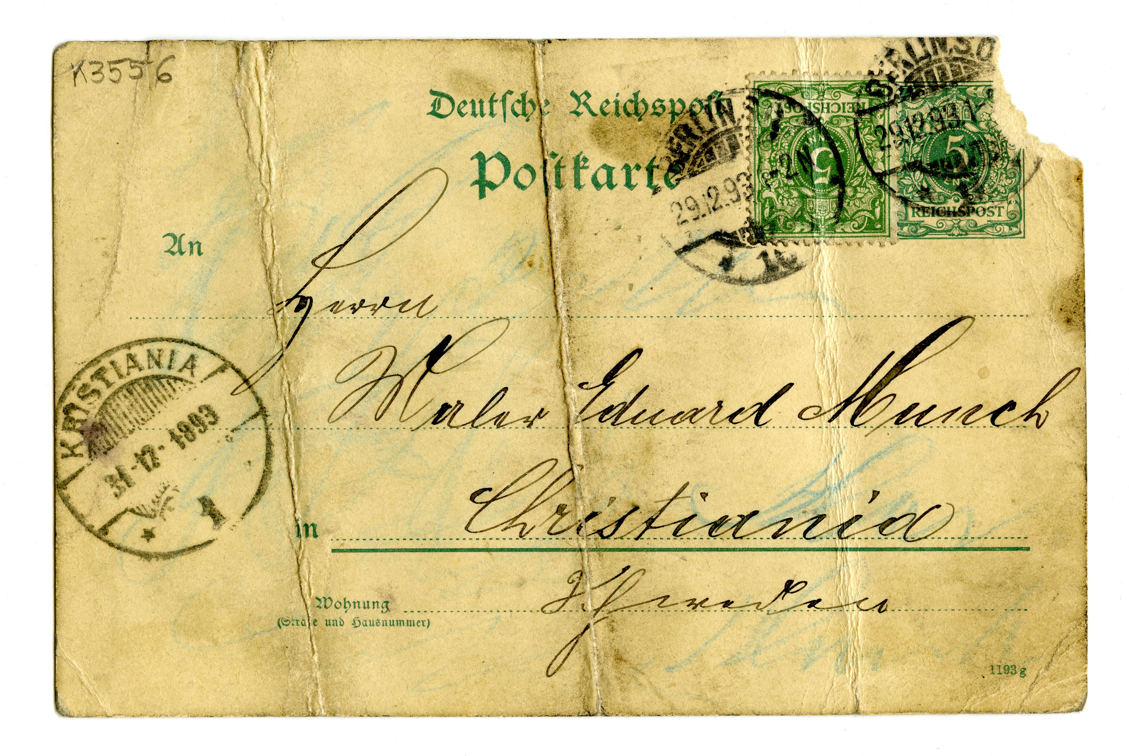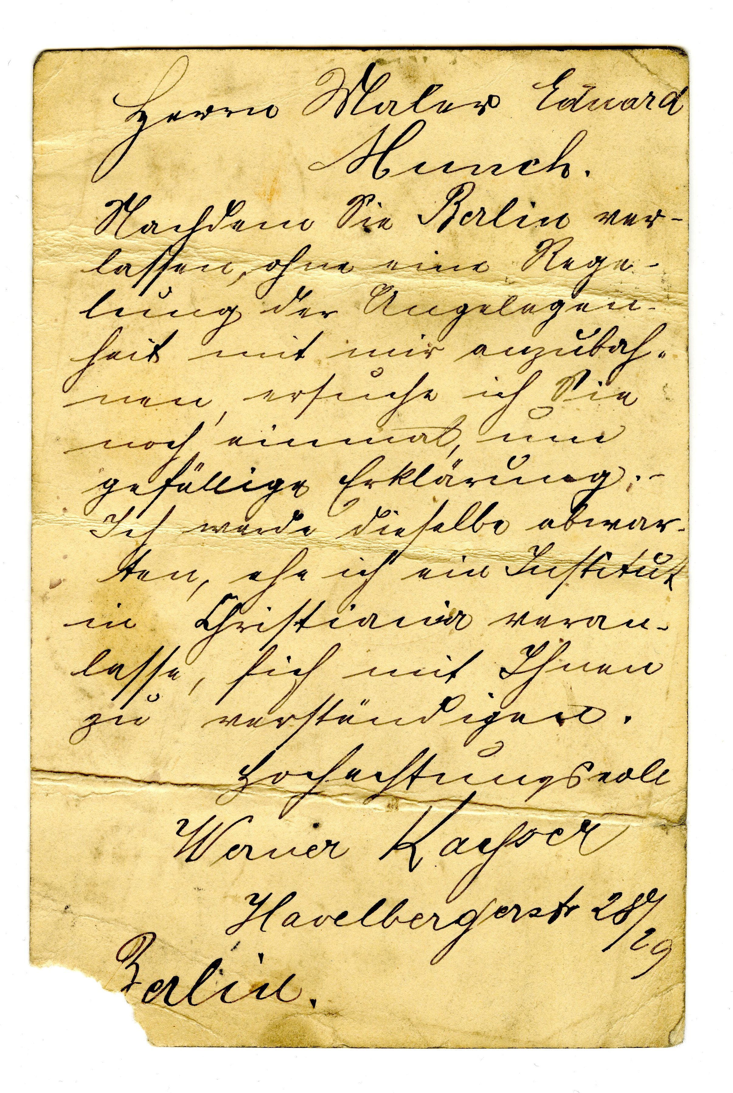 MM K 3556, Munchmuseet. Datert 29.02.1893. Brev fra Werner Kayser, Photografisches Atelier Geschwister Marschalk.
