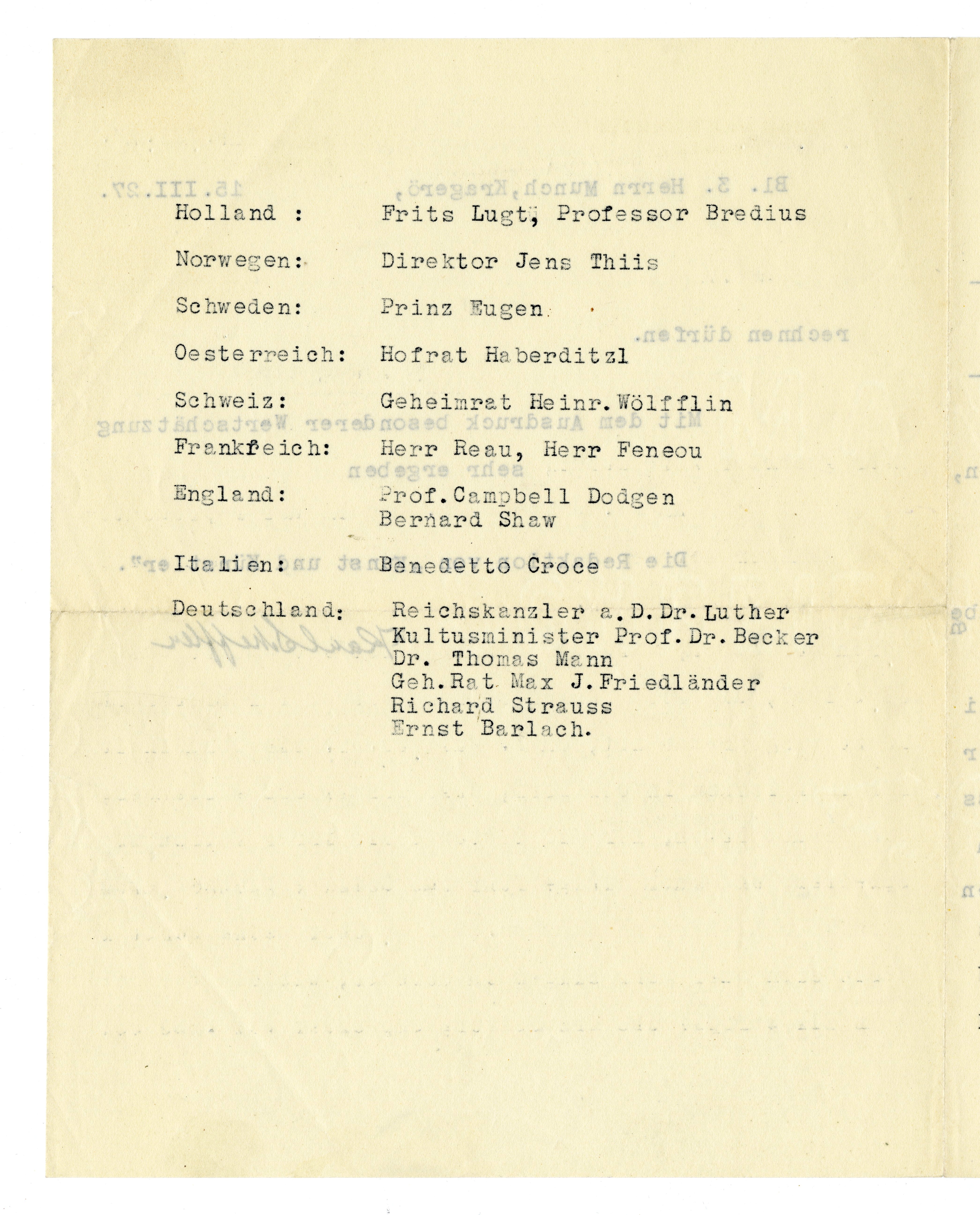 Kultusminister Prof. Dr. Becker Dr. Thomas Mann Geh.Rat Max J. Friedländer Richard Strauss Ernst Barlach. |