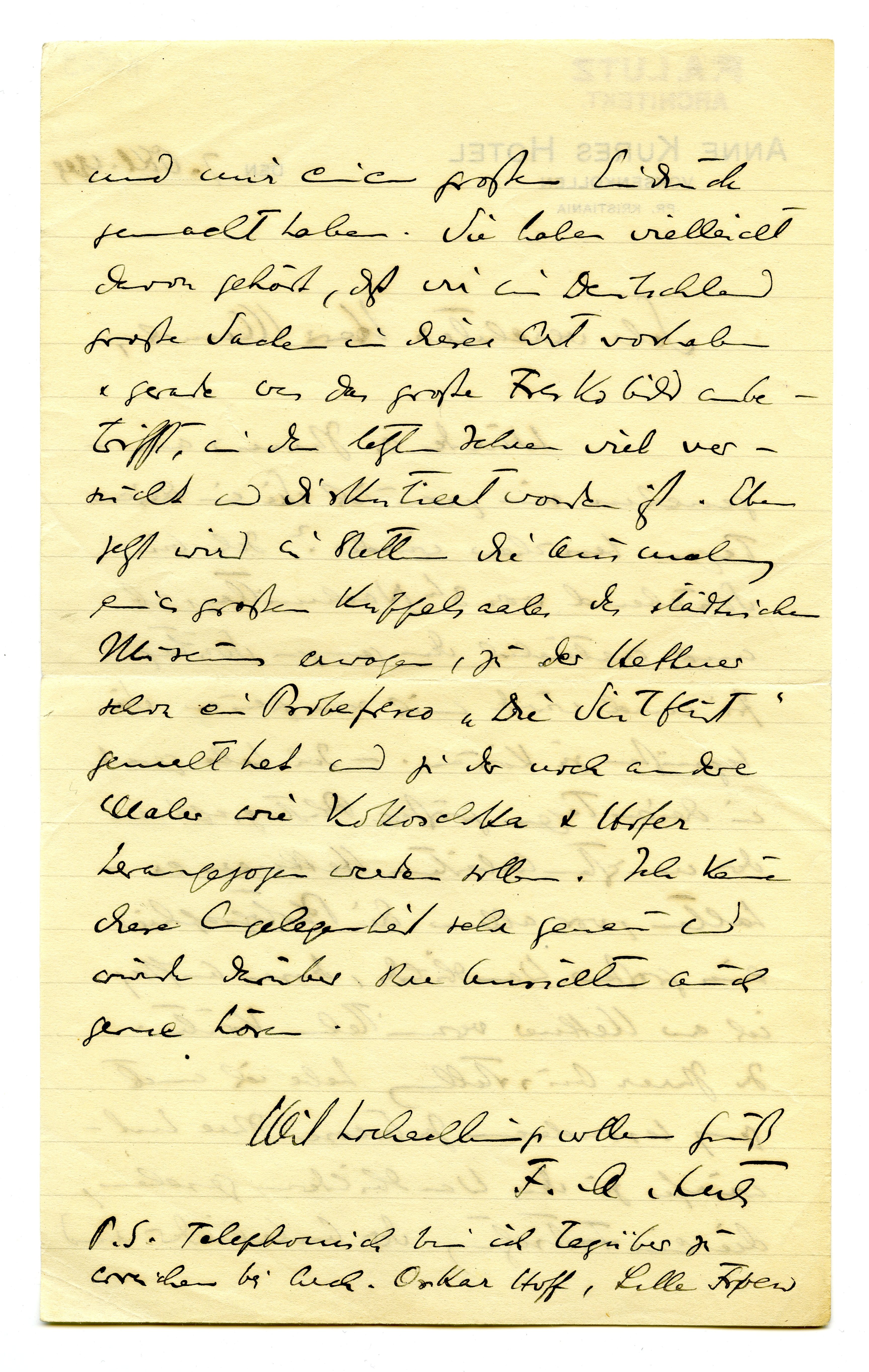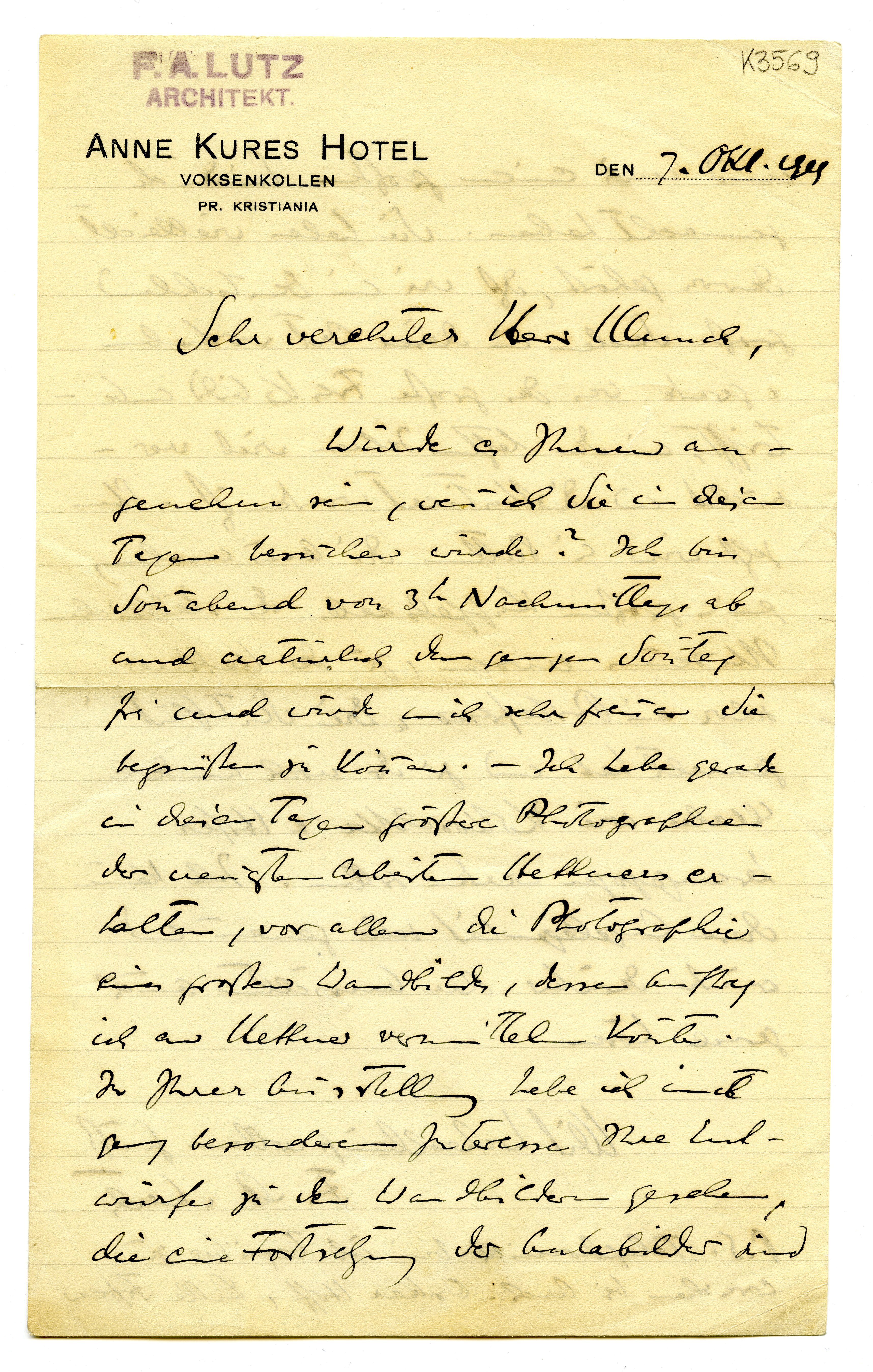 MM K 3569, Munchmuseet. Datert 07.10.1919. Brev fra F.A. Lutz, F.A. Galerie.