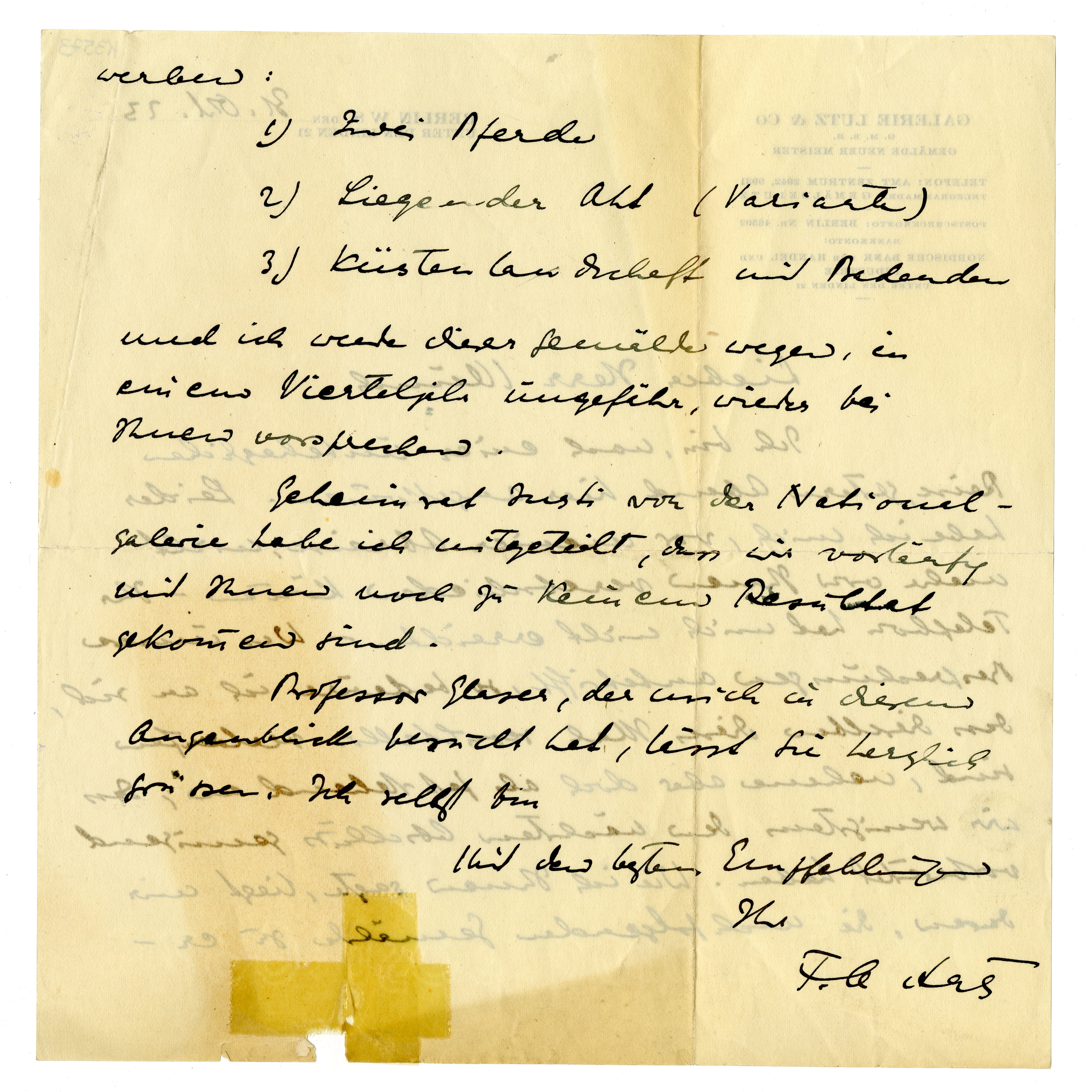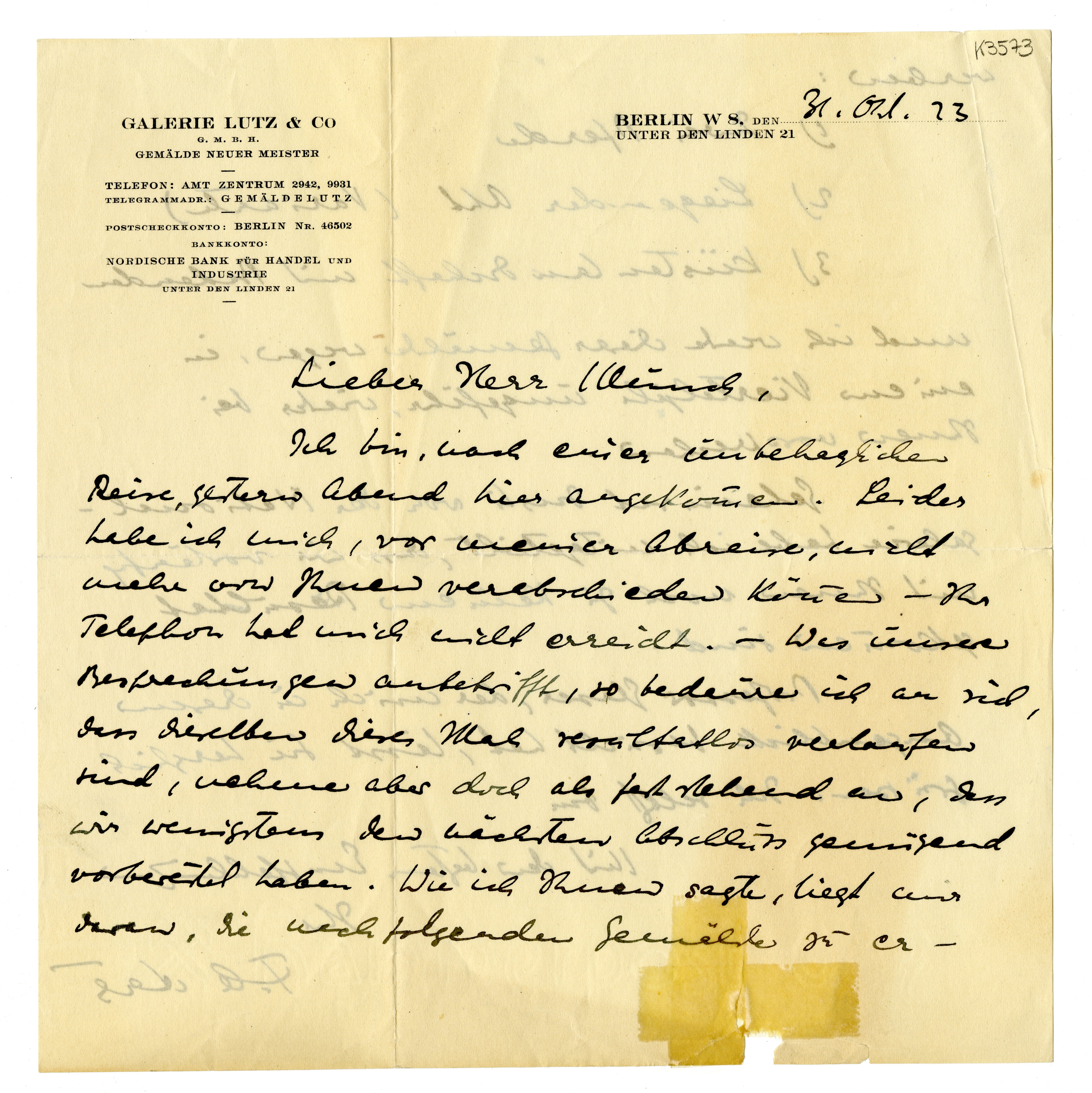 MM K 3573, Munchmuseet. Datert 31.10.1923. Brev fra F.A. Lutz, F.A. Galerie.