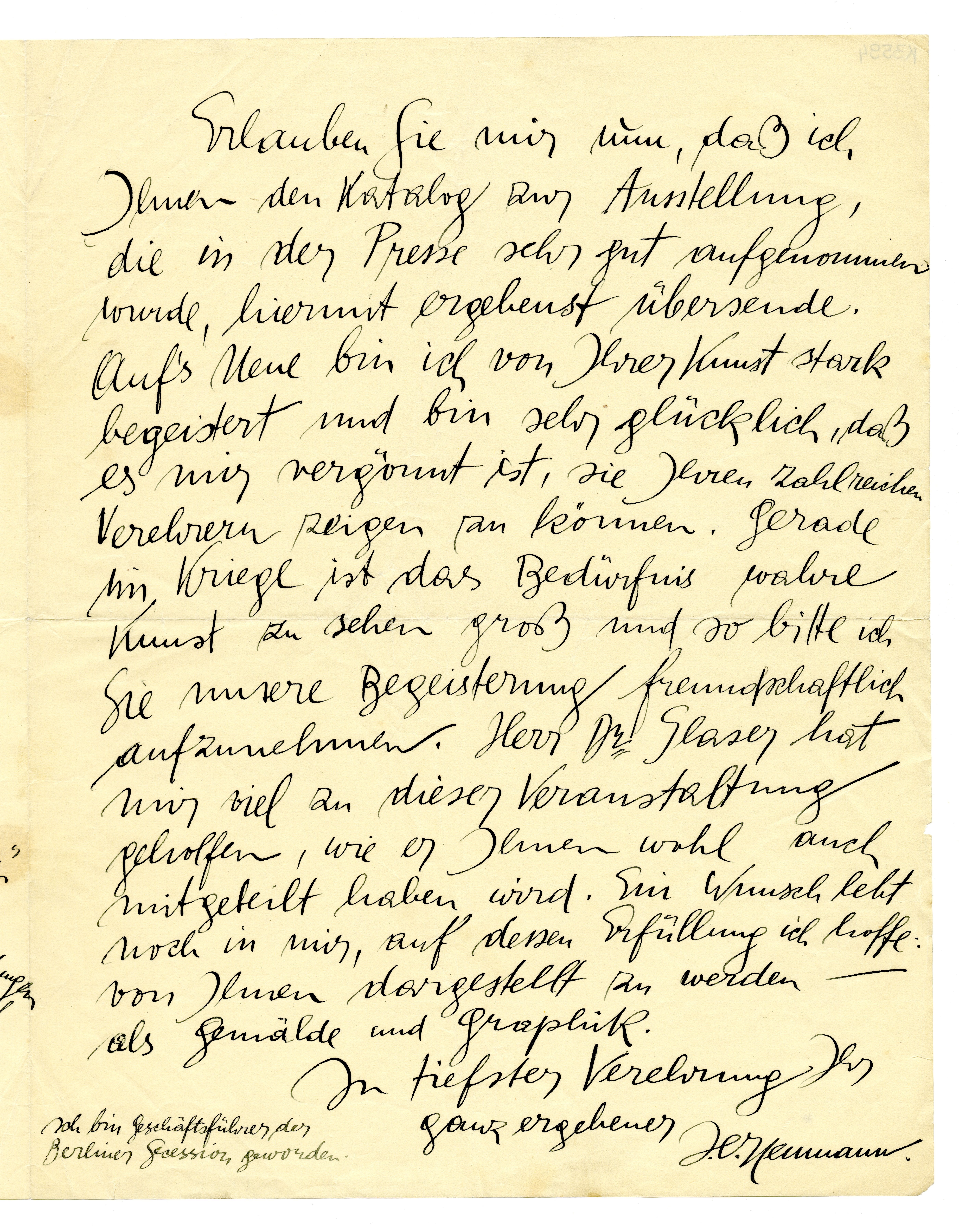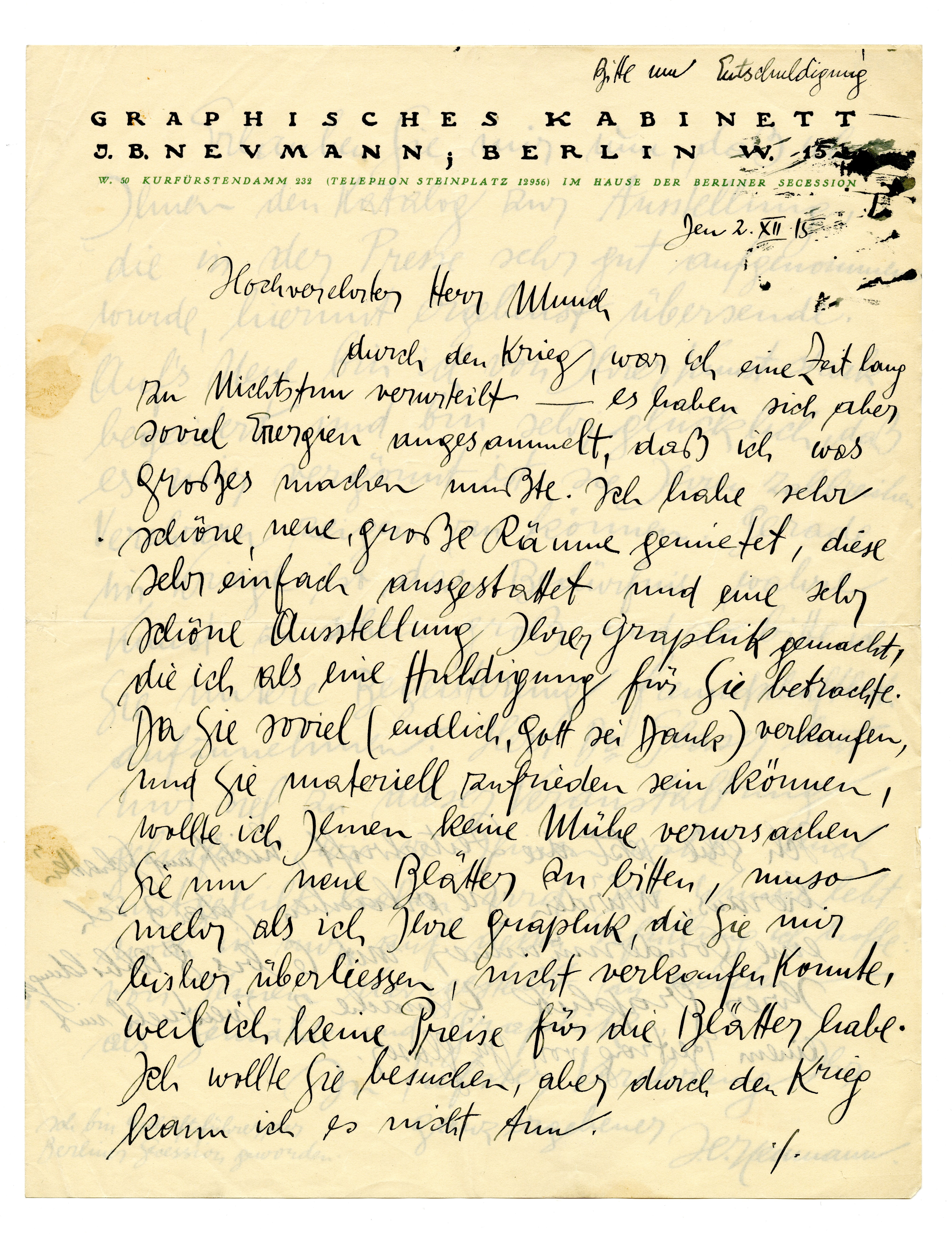 MM K 3594, Munchmuseet. Datert 02.12.1915. Brev fra J.B. Neumann, Graphisches Kabinett, J. B. Neumann.