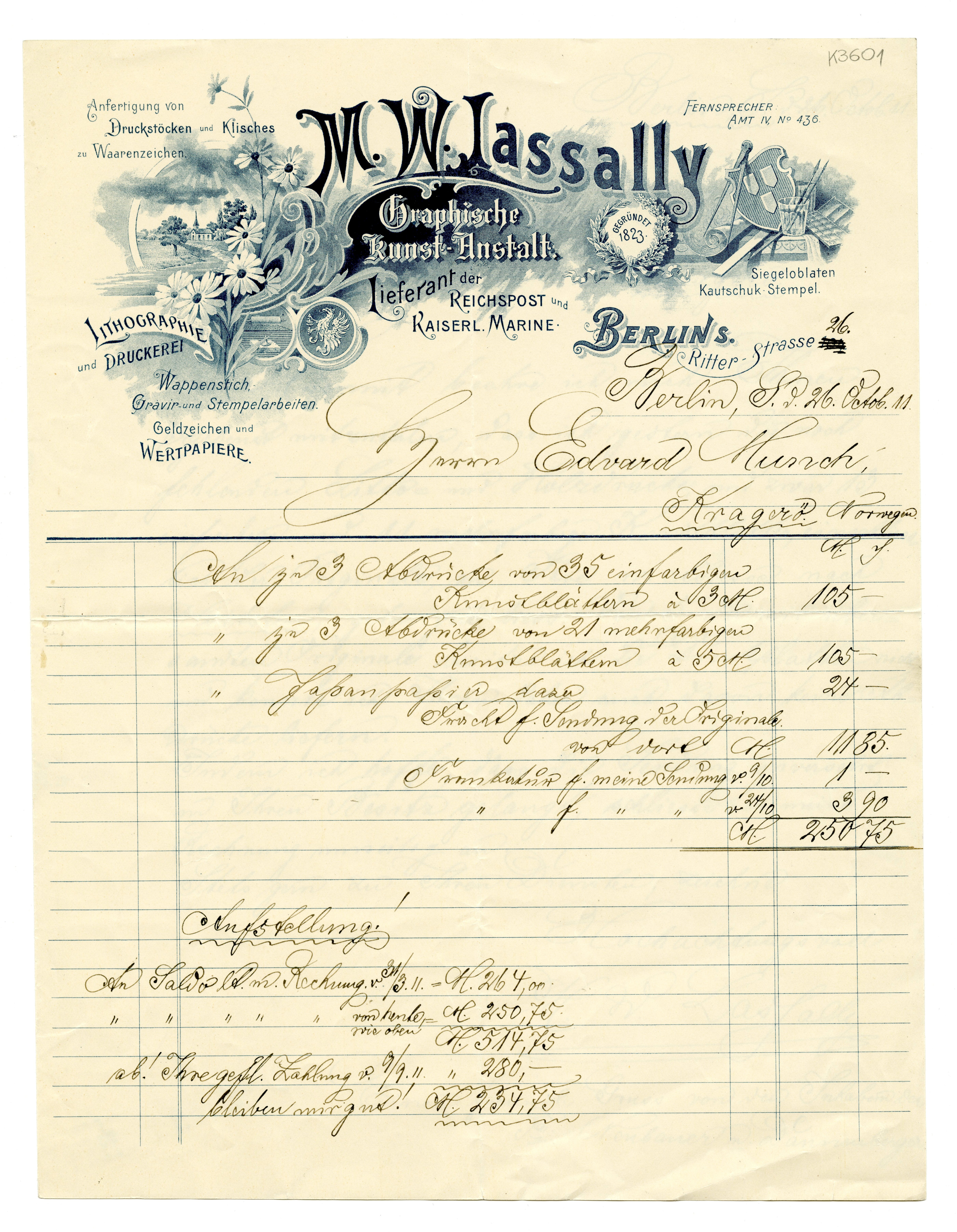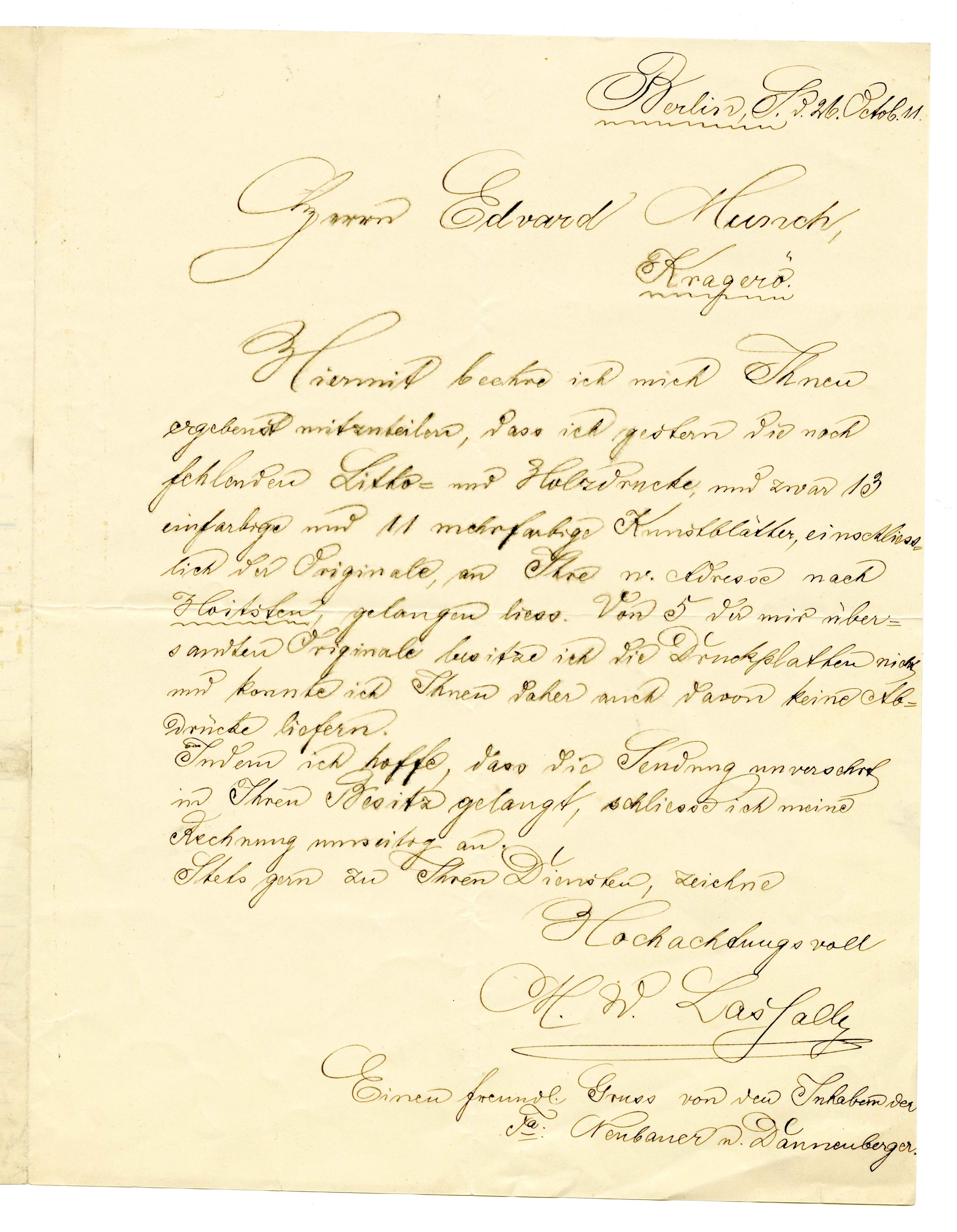 MM K 3601, Munchmuseet. Datert 26.10.1911. Brev fra M. W. Lassally, Graphisches Kunst-Anstalt.