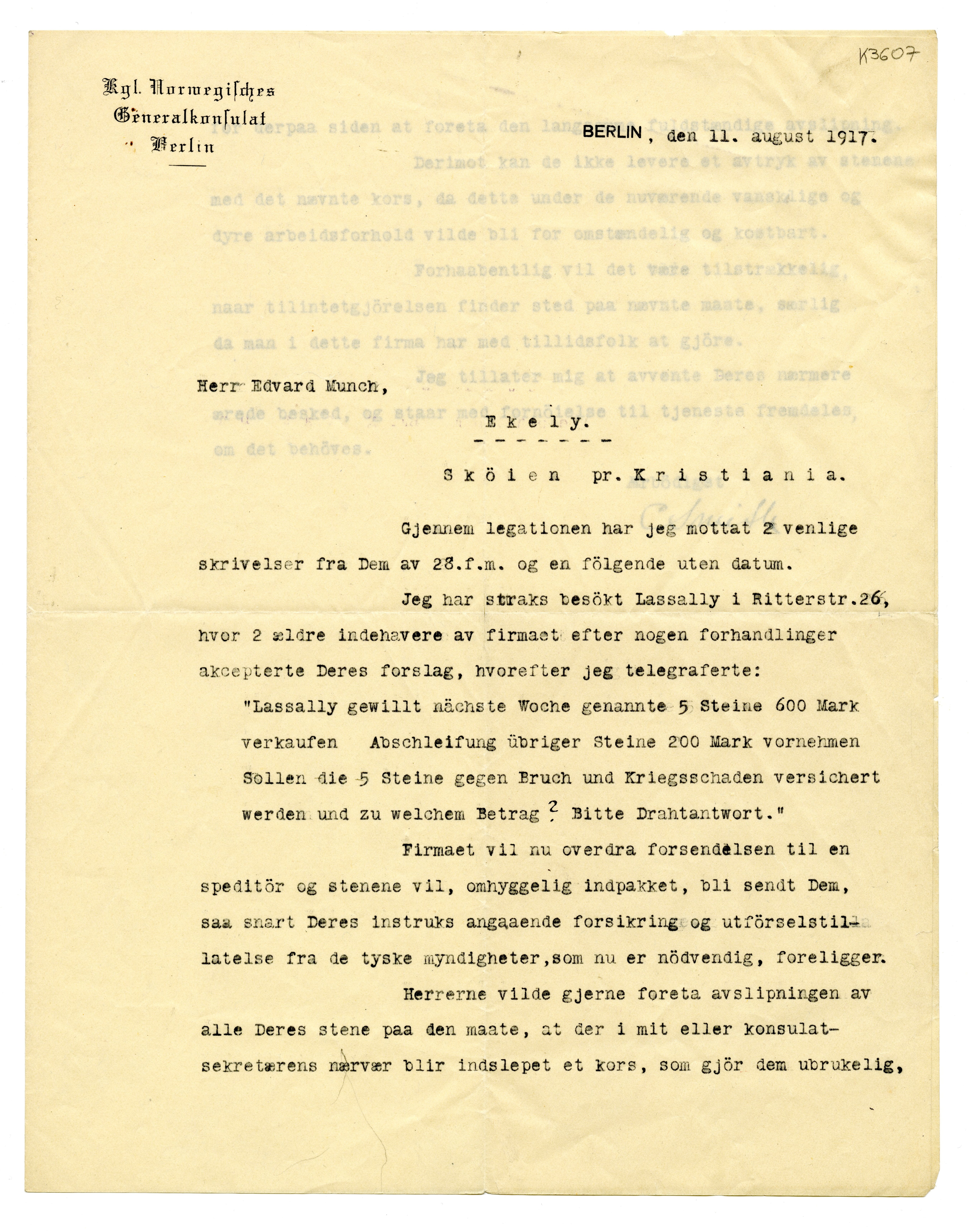 MM K 3607, Munchmuseet. Datert 11.08.1917. Brev fra Christen Smith.