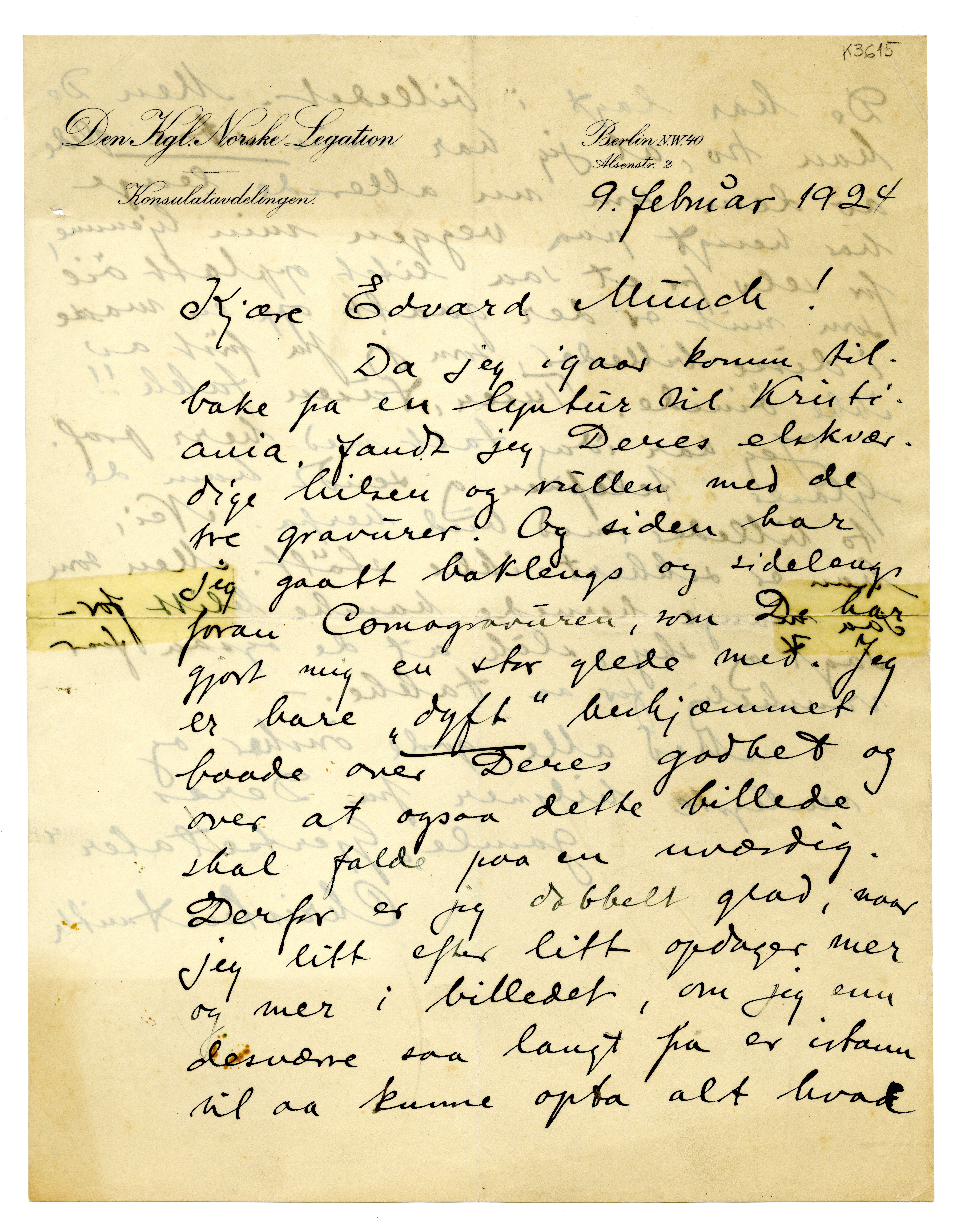 MM K 3615, Munchmuseet. Datert 09.02.1924. Brev fra Christen Smith.