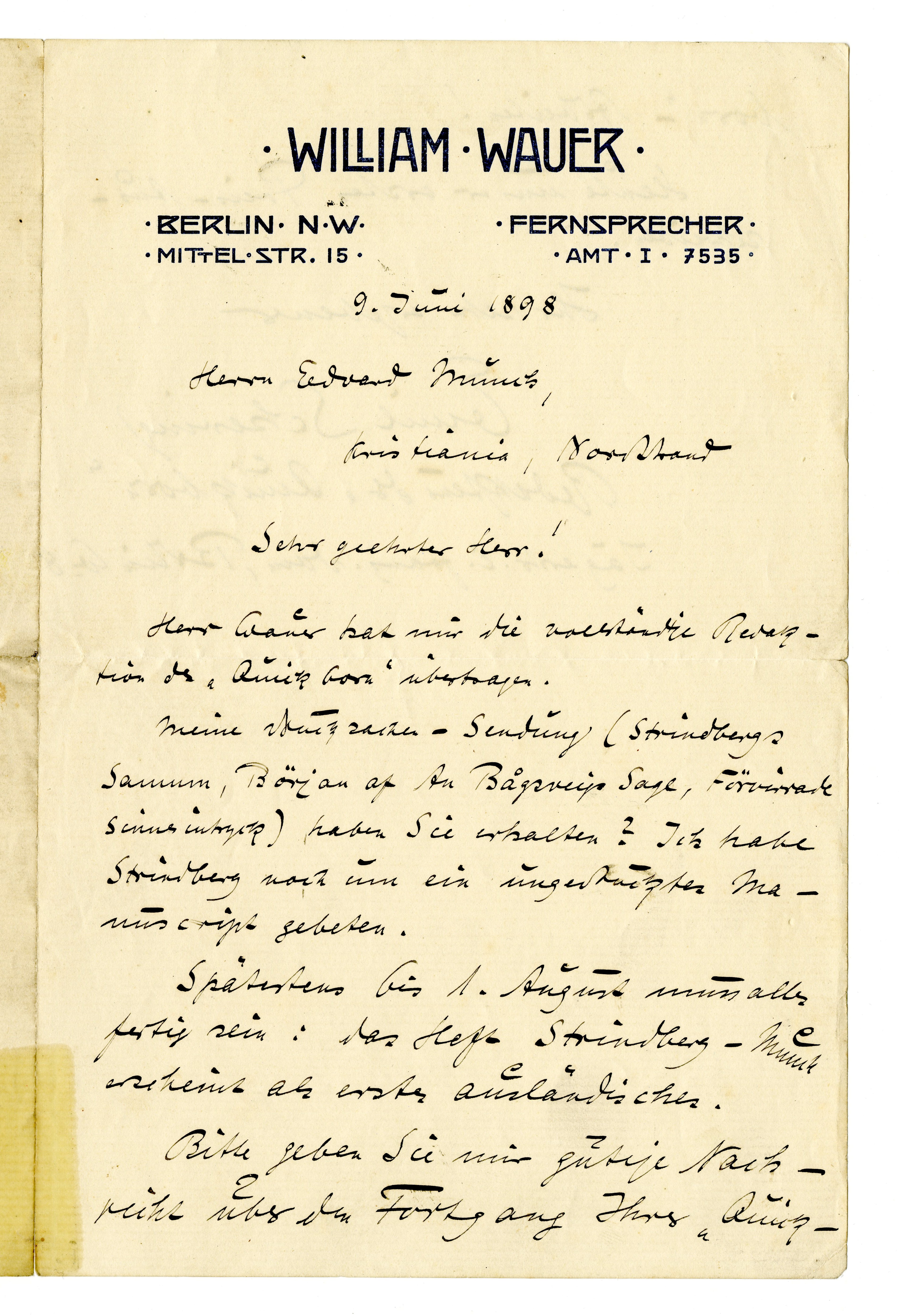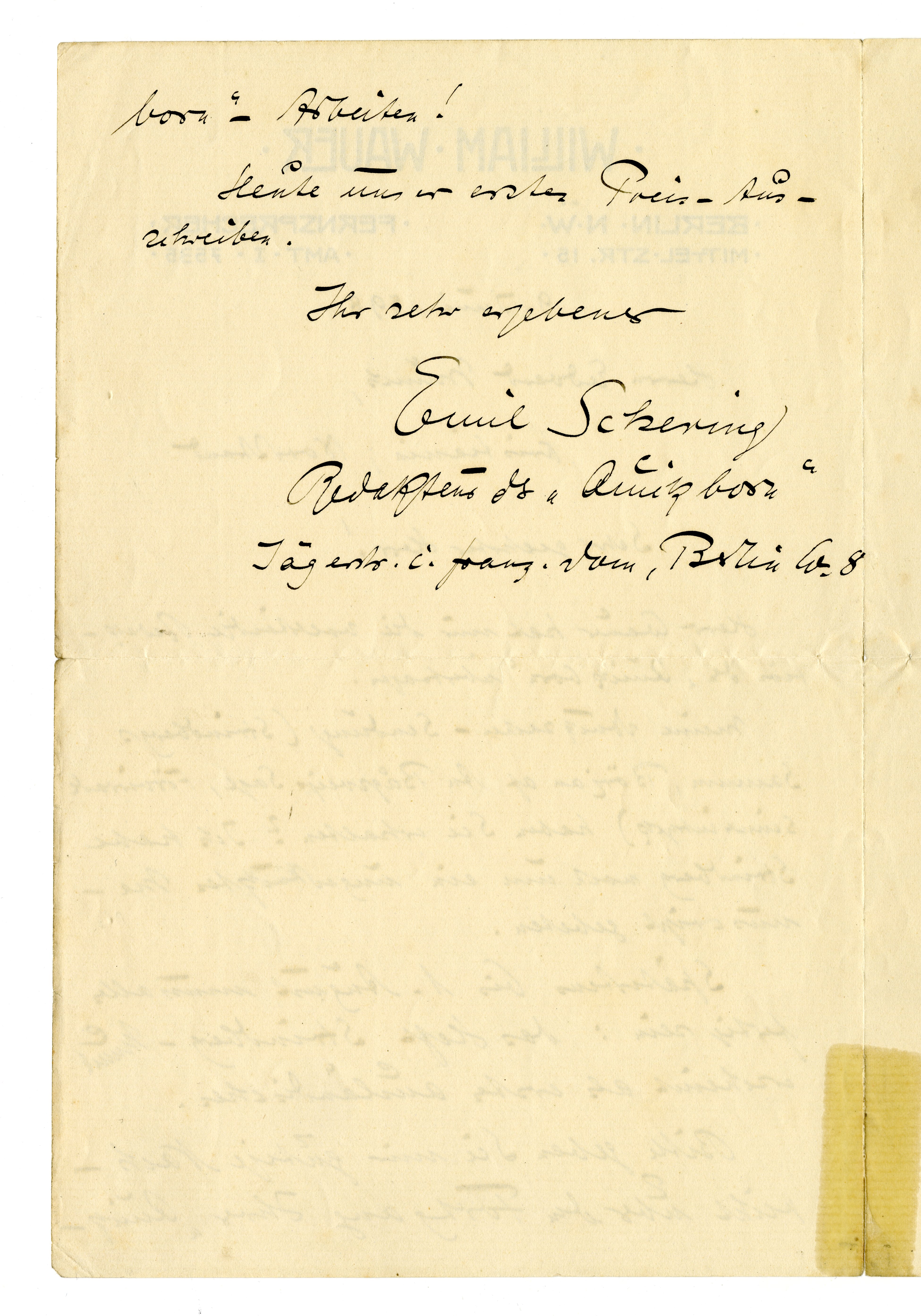 MM K 3625, Munchmuseet. Datert 09.06.1898. Brev fra Emil Schering, Deutscher Kunstverlag A-G Quickborn.