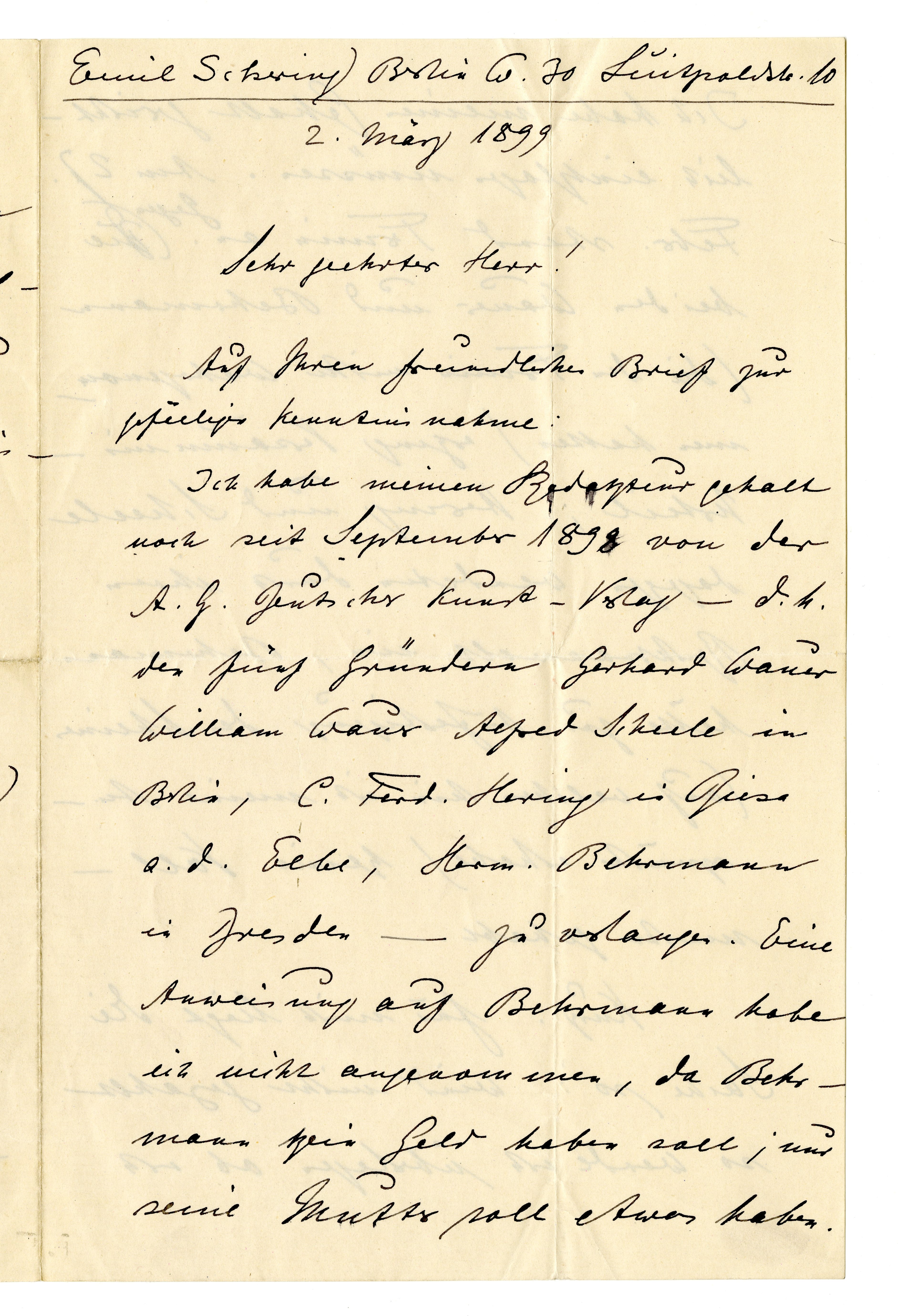 MM K 3630, Munchmuseet. Datert 02.03.1899. Brev fra Emil Schering, Deutscher Kunstverlag A-G Quickborn.
