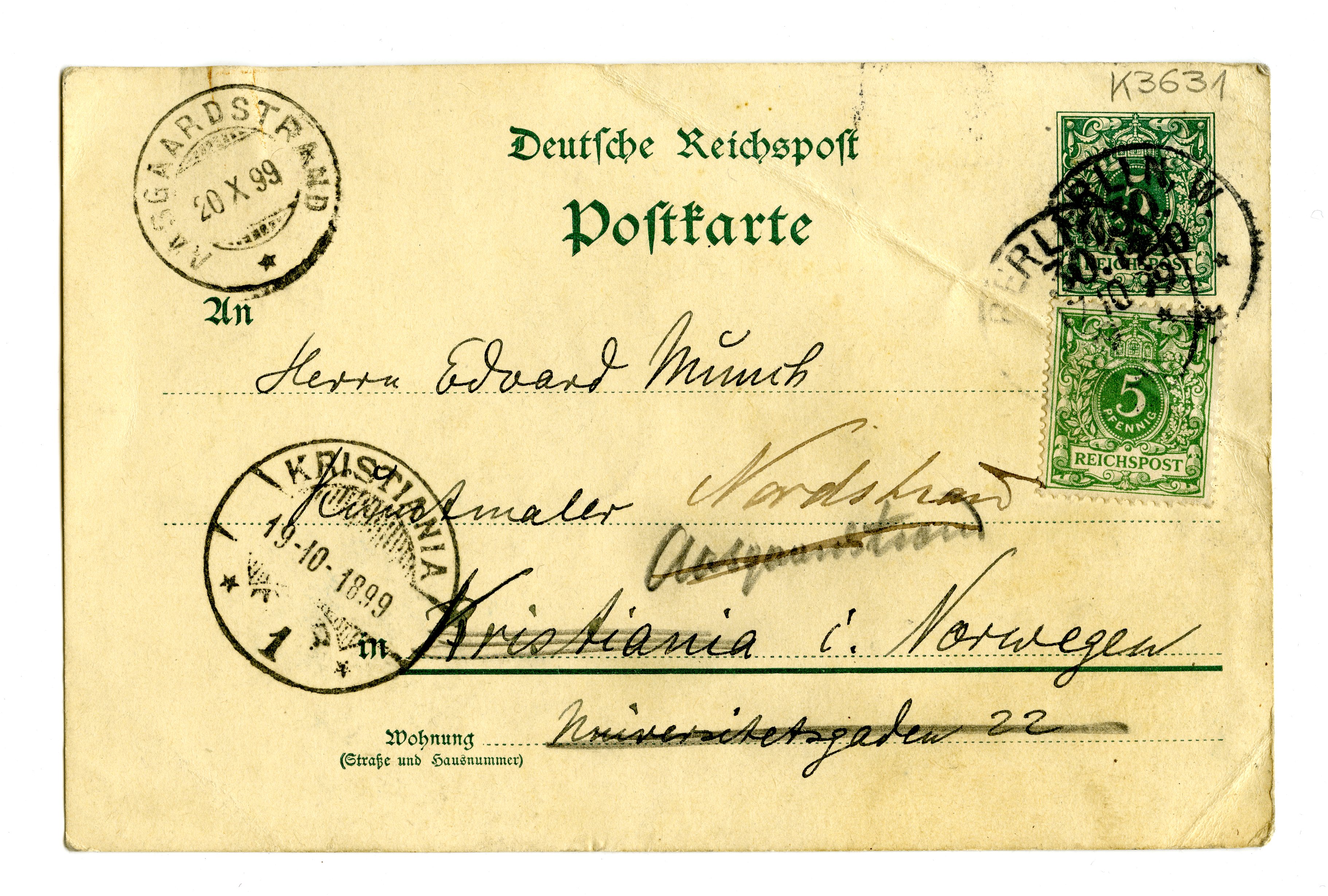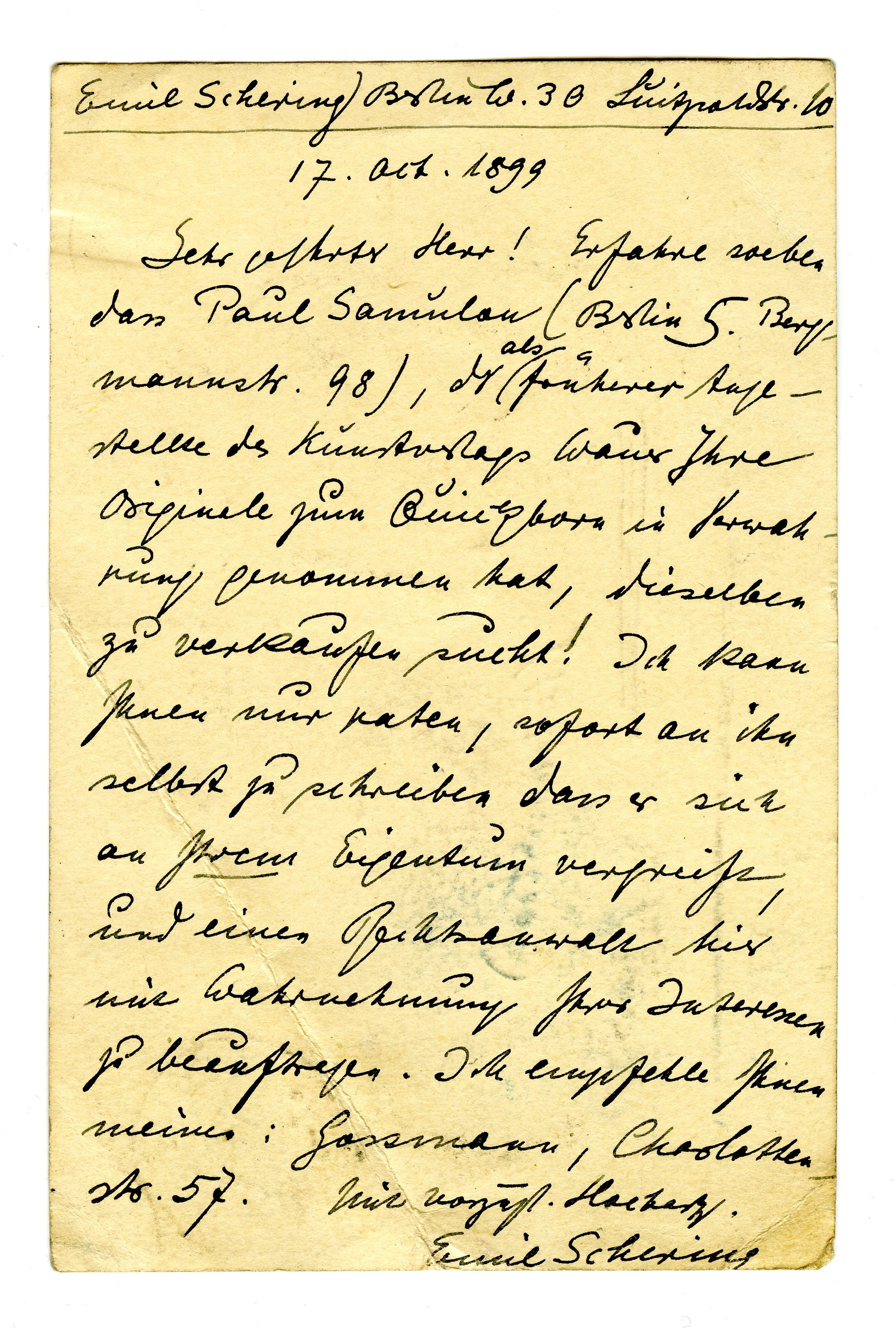 MM K 3631, Munchmuseet. Datert 17.10.1899. Brev fra Emil Schering, Deutscher Kunstverlag A-G Quickborn.