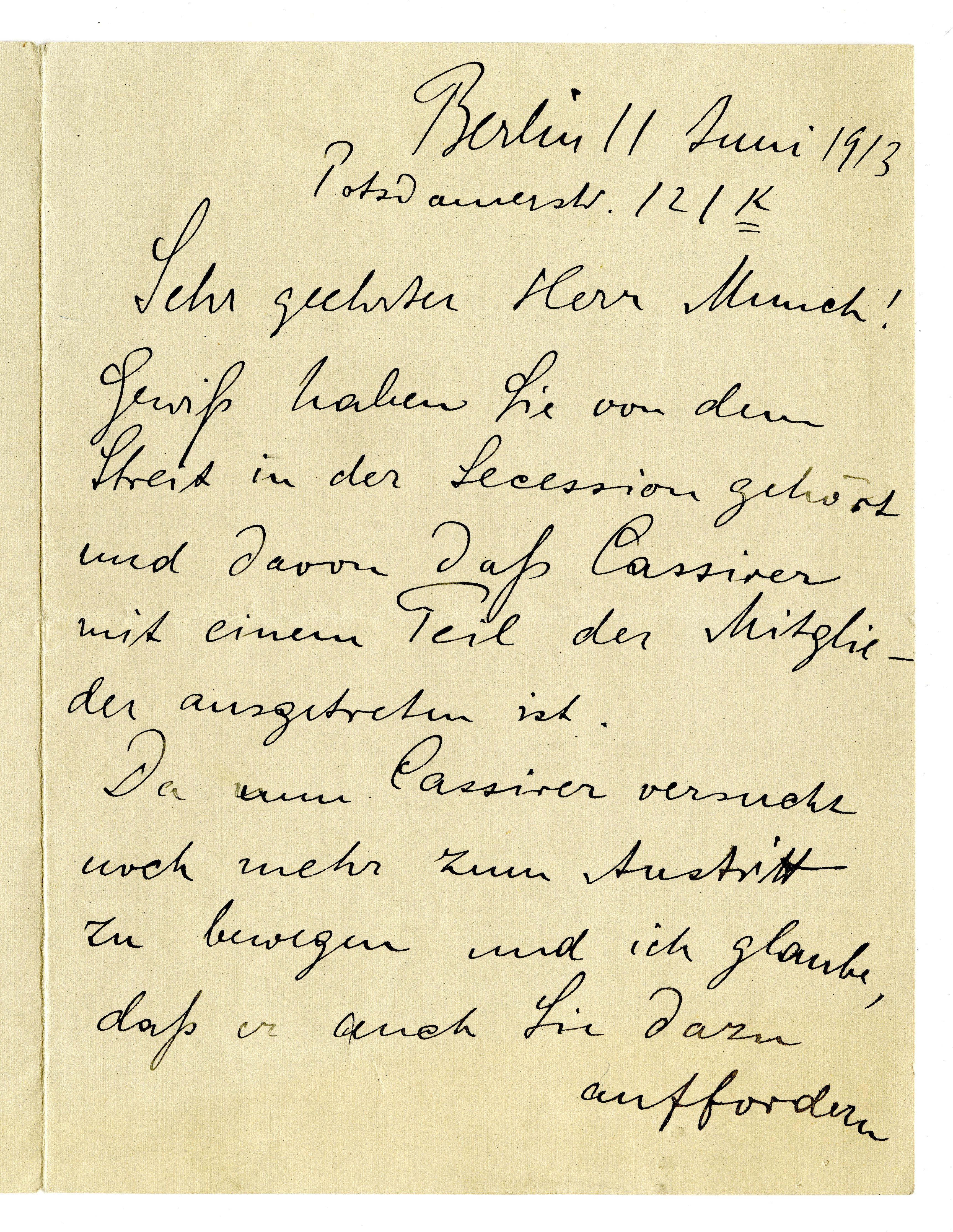 MM K 3638, Munchmuseet. Datert 11.06.1913. Brev fra Heinrich Eduard Linde-Walther, Berliner Secession.