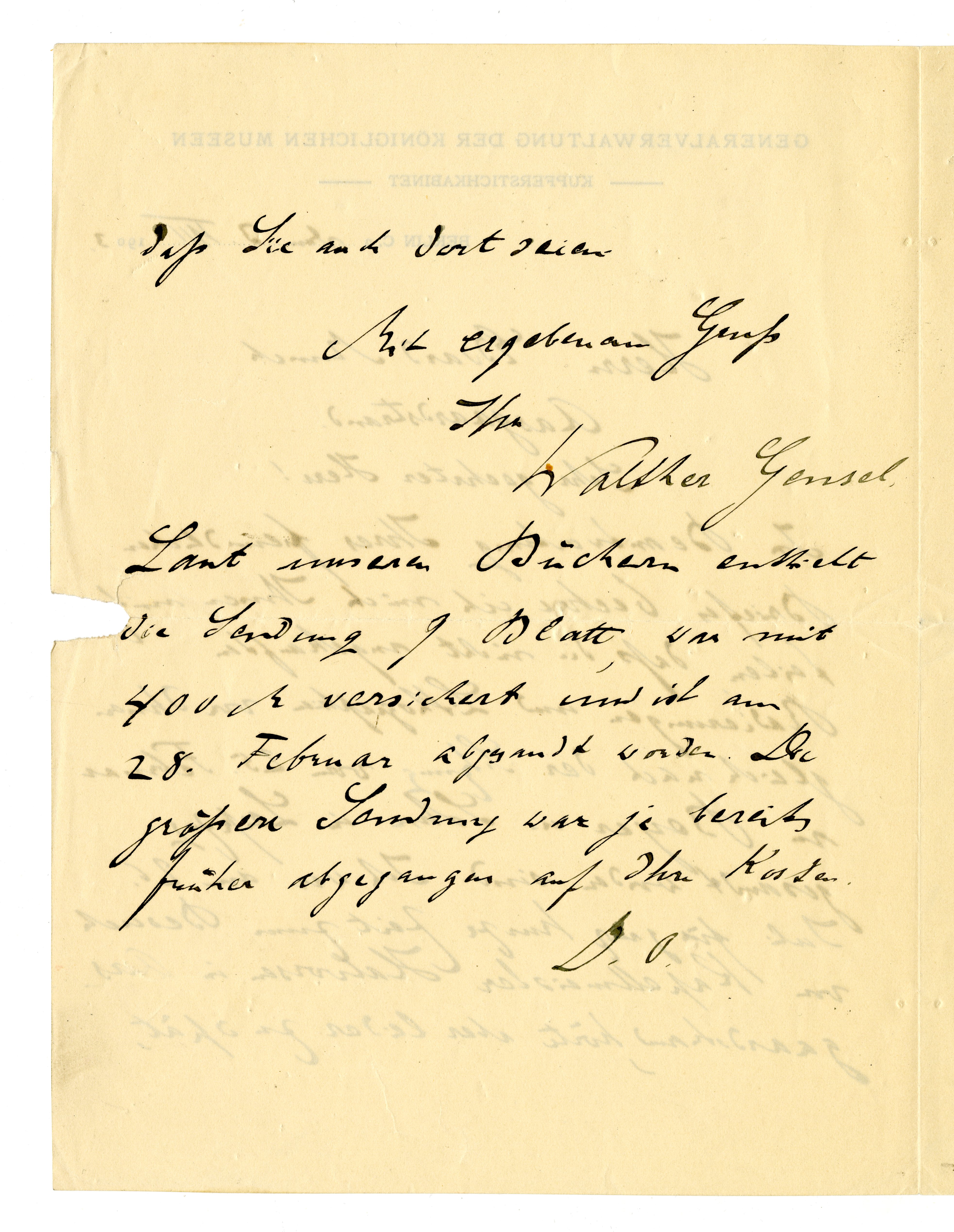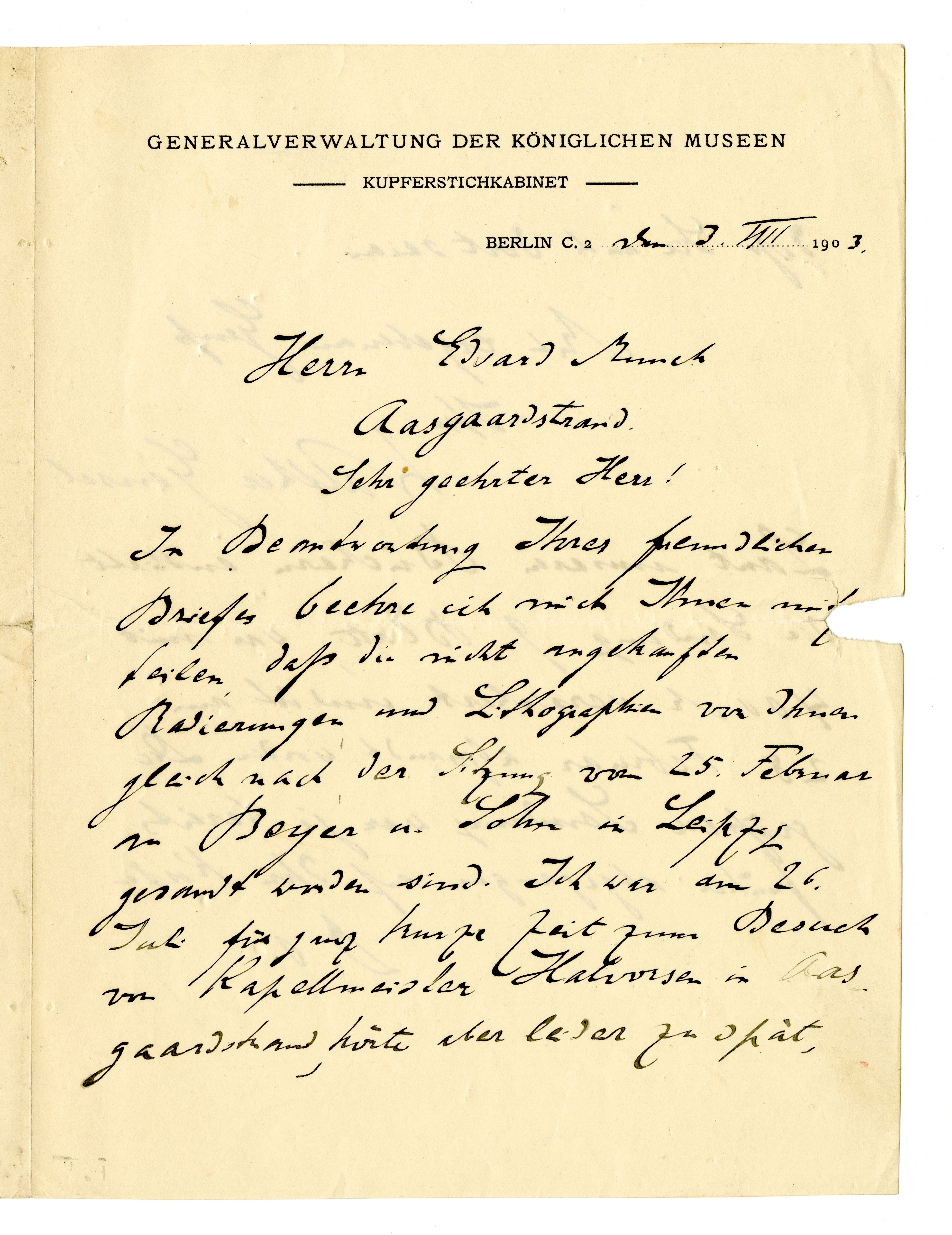 MM K 3643, Munchmuseet. Datert 03.08.1903. Brev fra Staatliche Museen (Königliche Museen).
