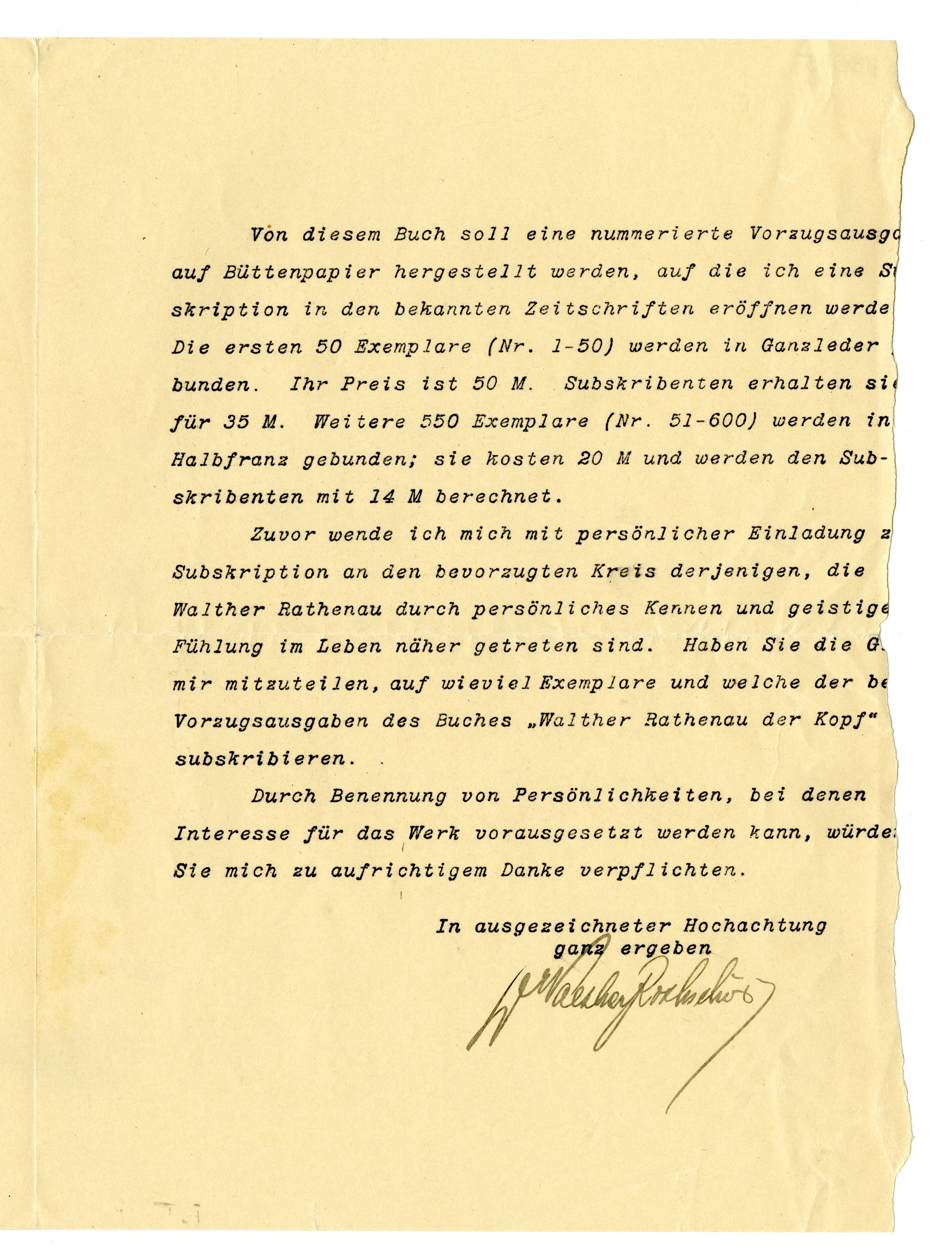 Walther Rathenaus enthalten, das seine ehrwürdige Frau …