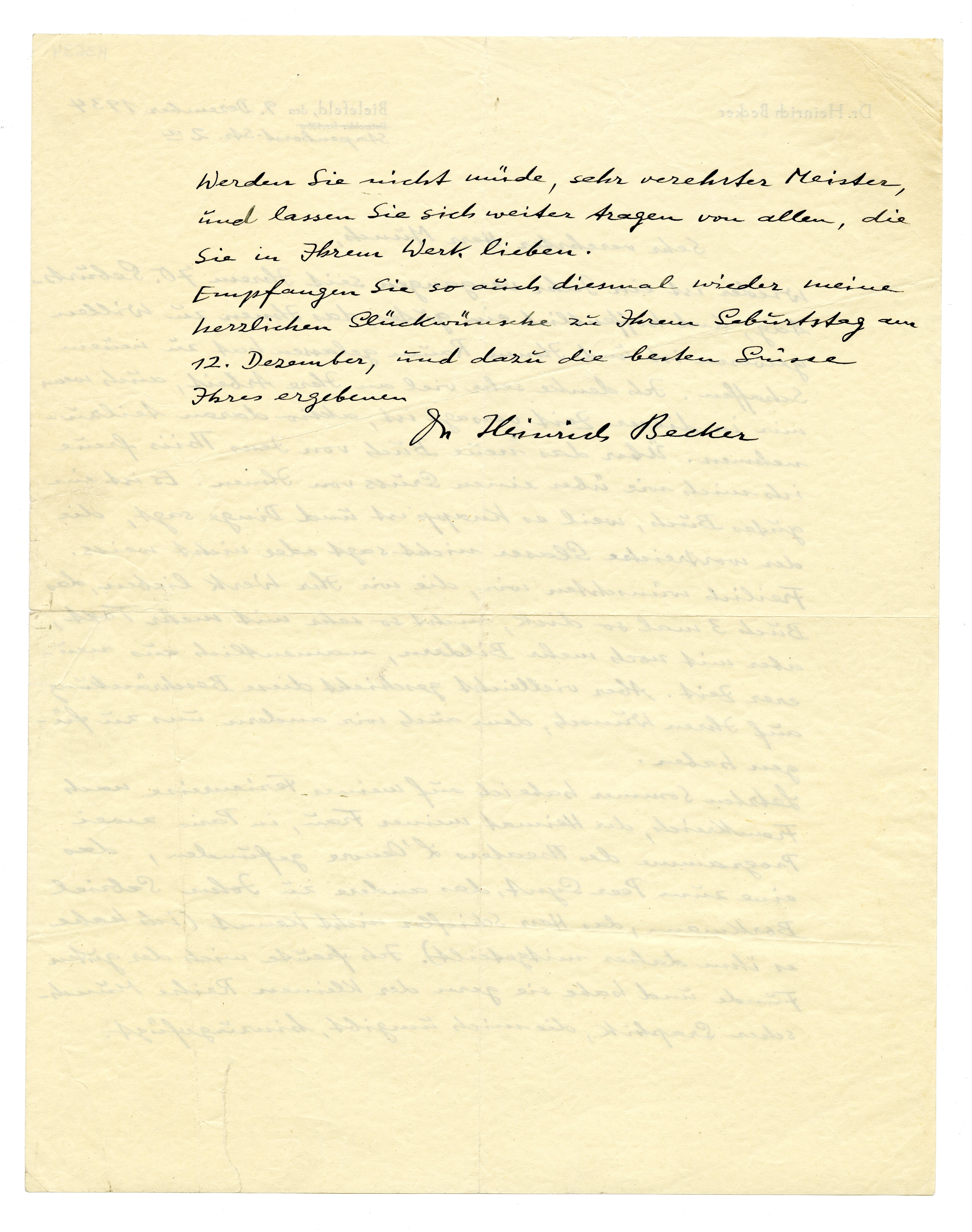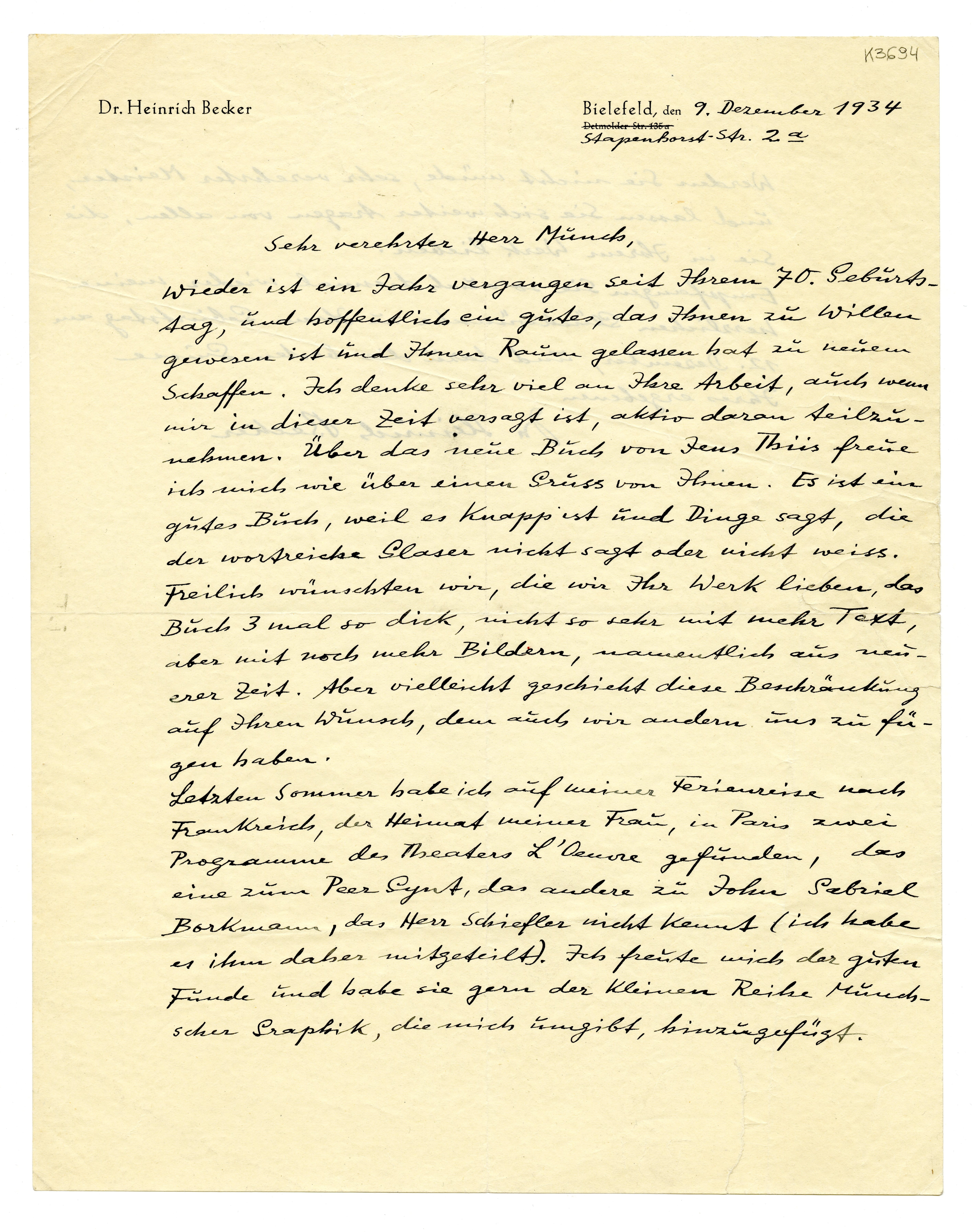 MM K 3694, Munchmuseet. Datert 09.12.1934. Brev fra Heinrich Becker, Städtisches Kunsthaus.