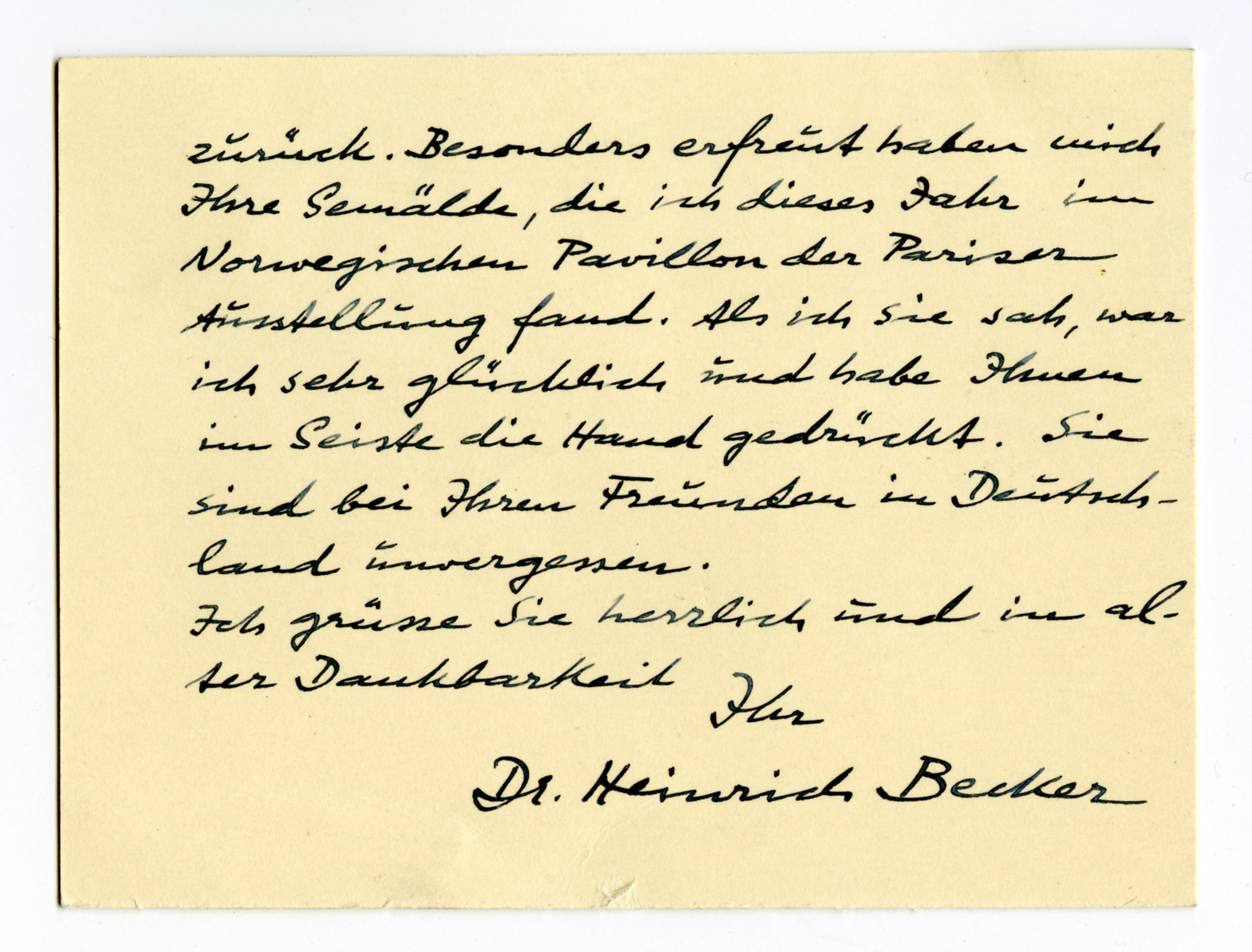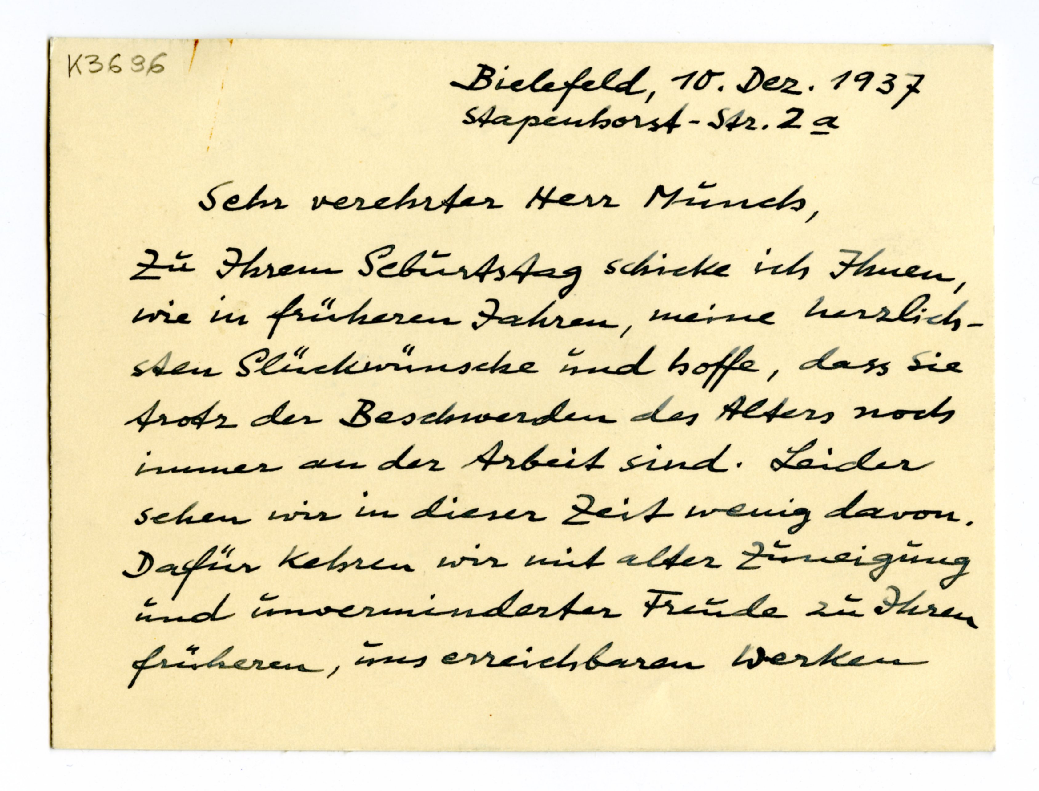 MM K 3696, Munchmuseet. Datert 10.12.1937. Brev fra Heinrich Becker, Städtisches Kunsthaus.