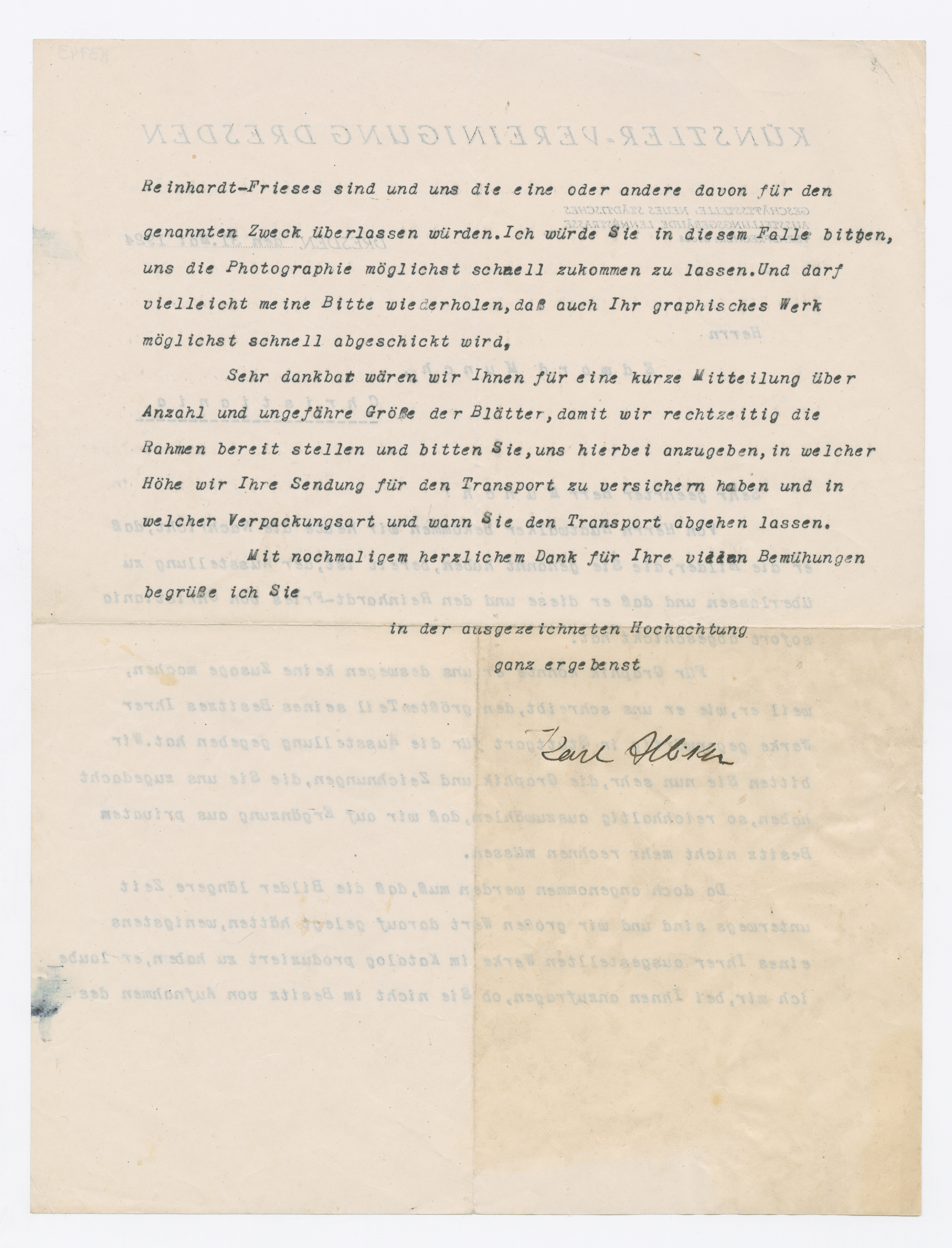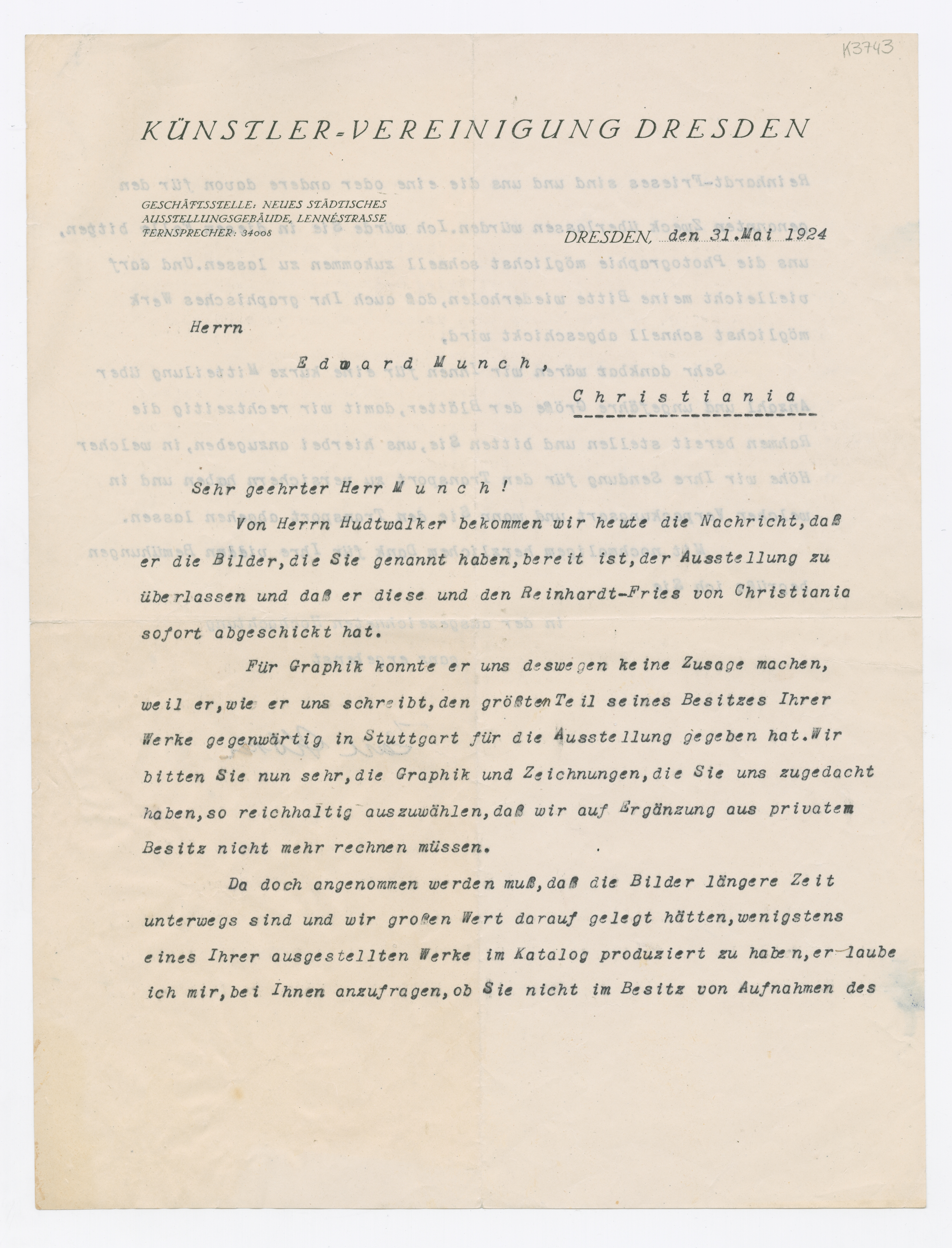 MM K 3743, Munchmuseet. Datert 31.05.1924. Brev fra Künstler-Vereinigung Dresden, Karl Albiker.