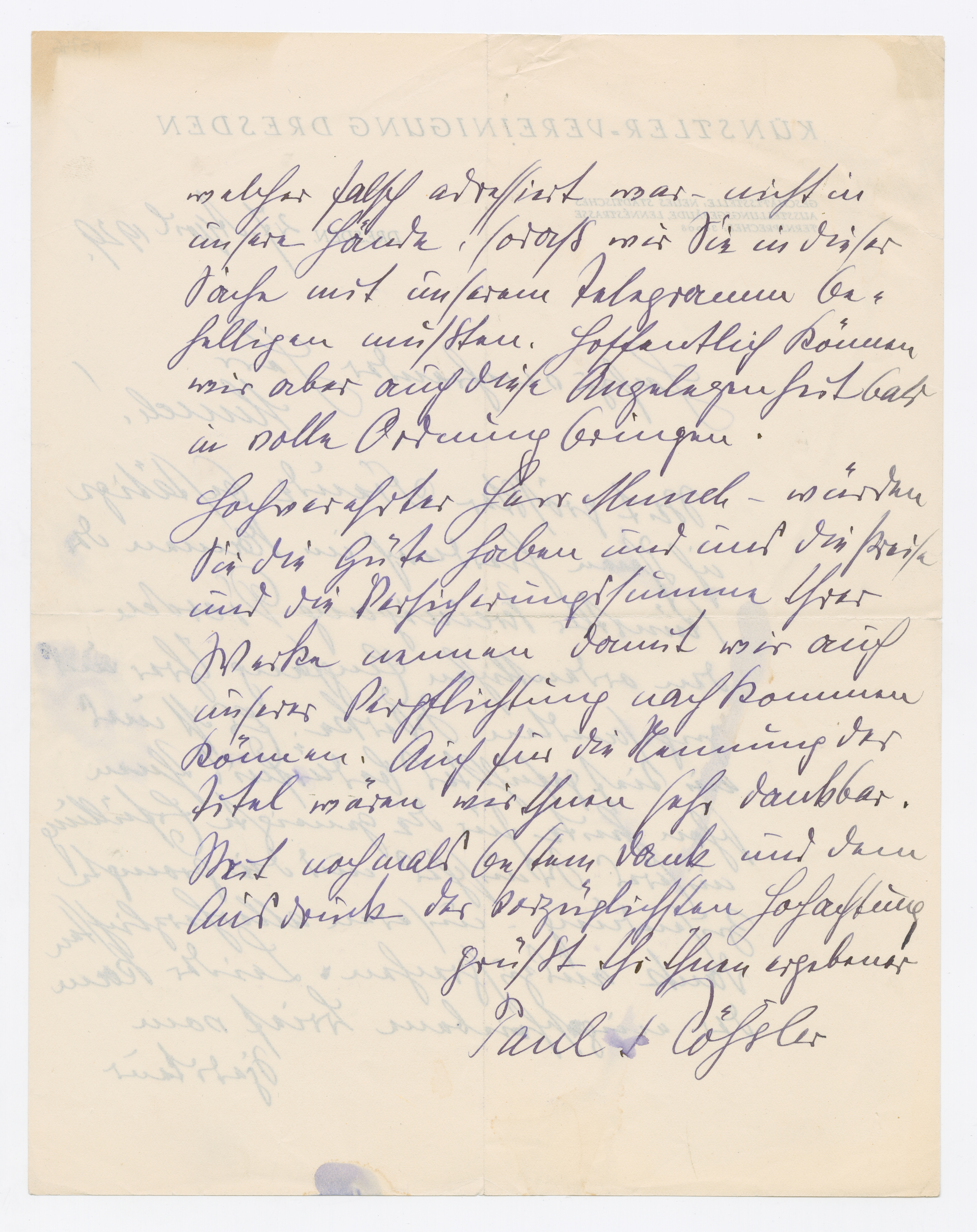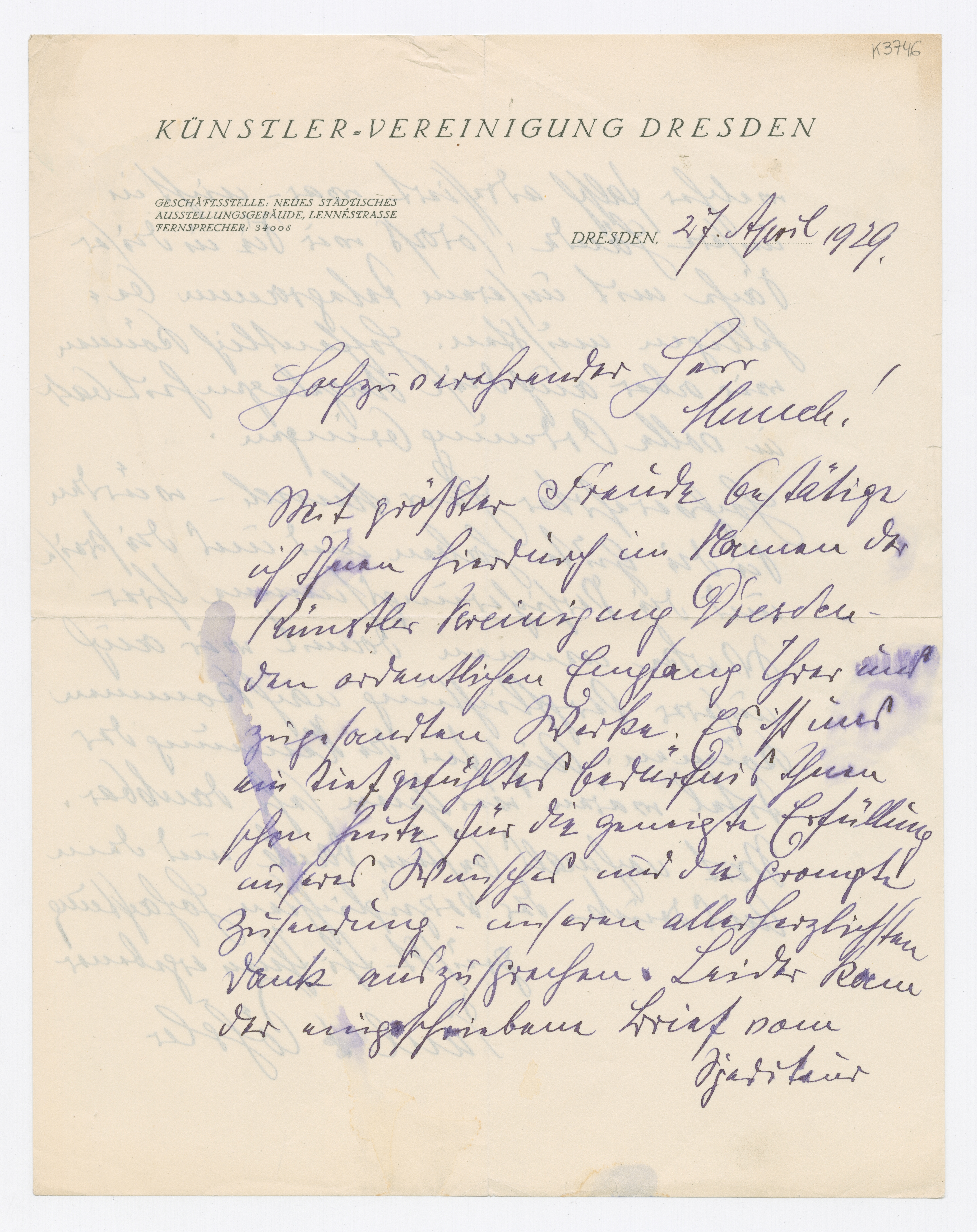 MM K 3746, Munchmuseet. Datert 27.04.1929. Brev fra Künstler-Vereinigung Dresden, Paul Rössler.