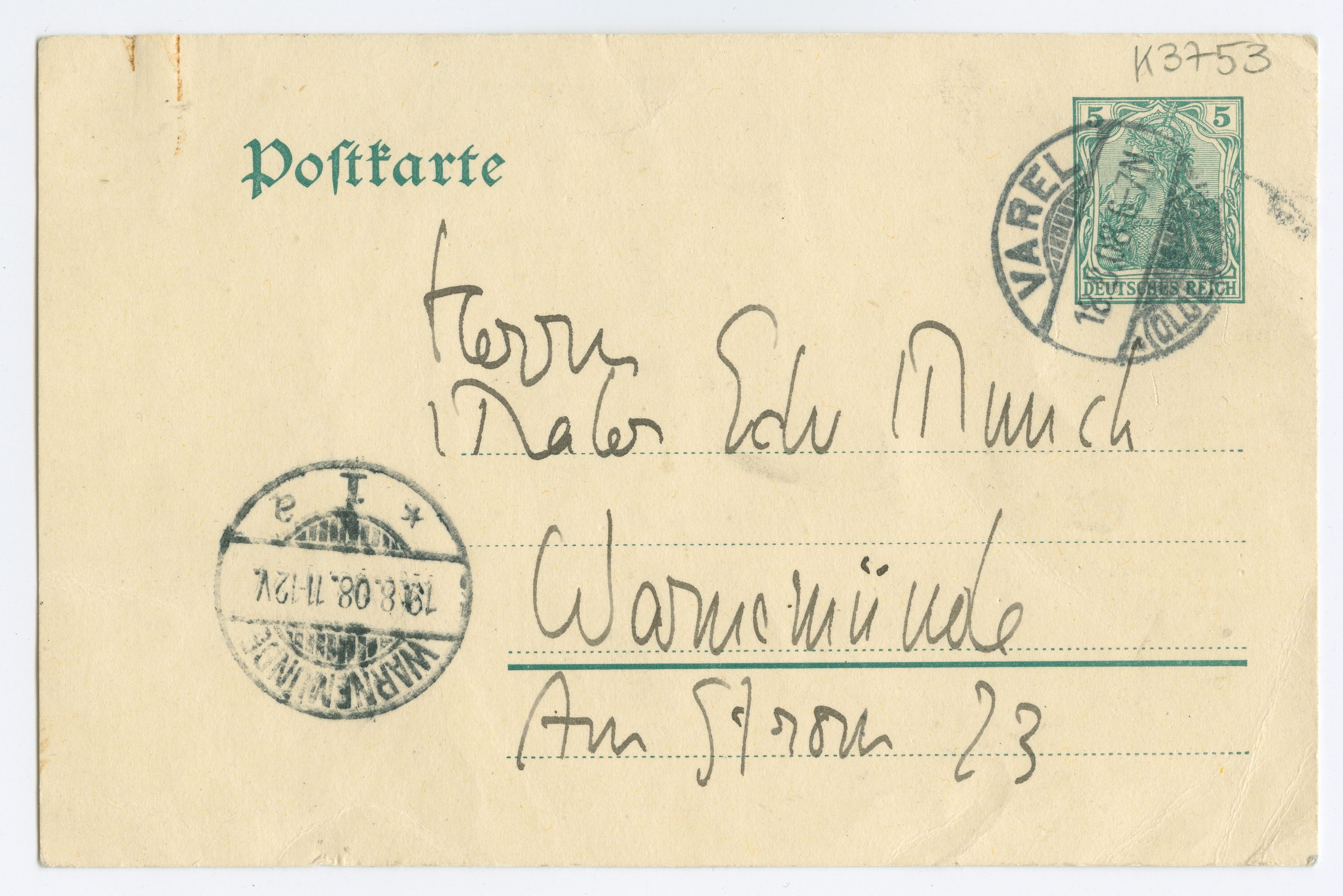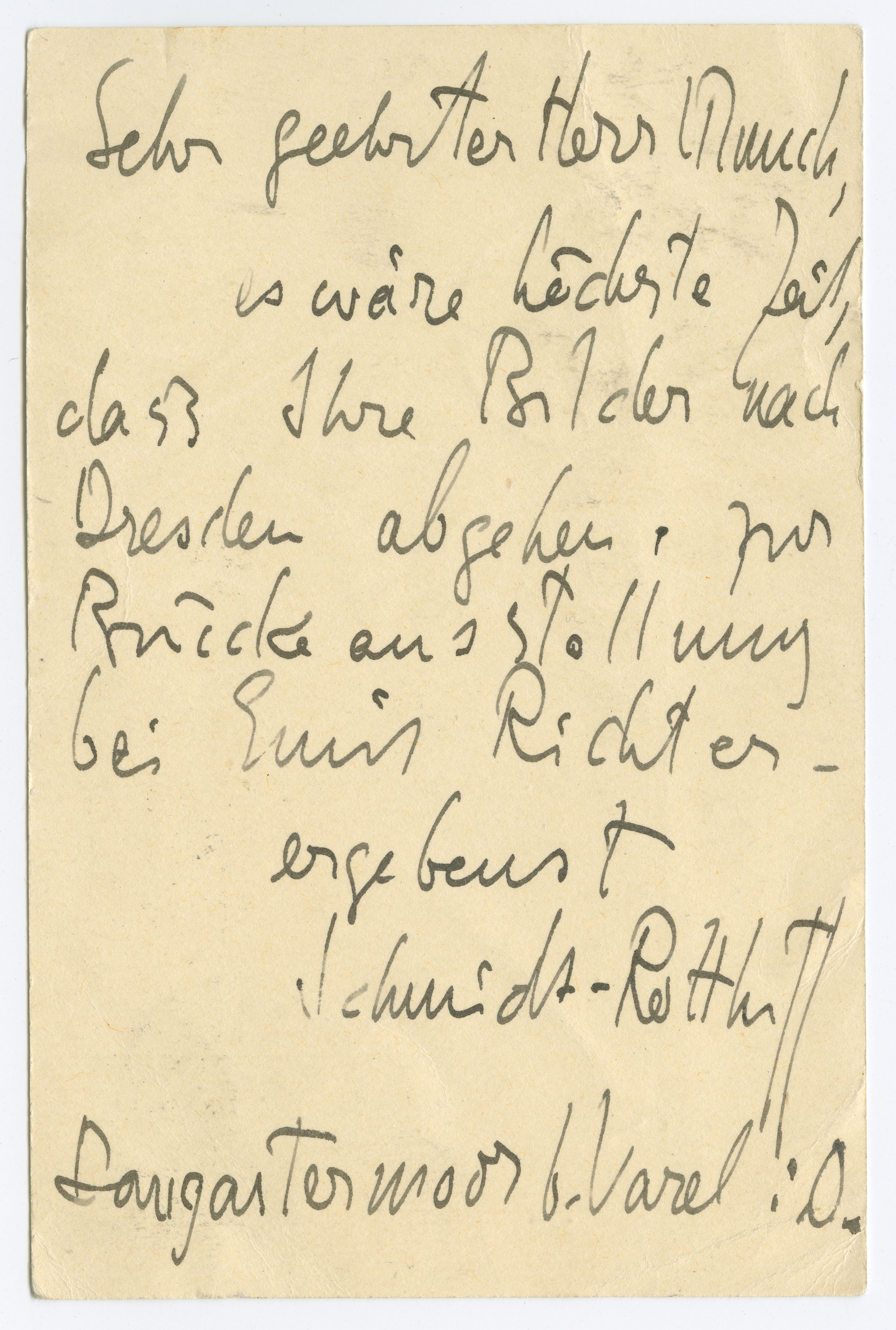 MM K 3753, Munchmuseet. Datert 18.08.1908. Brev fra Karl Schmidt-Rottluff, Die Brücke.