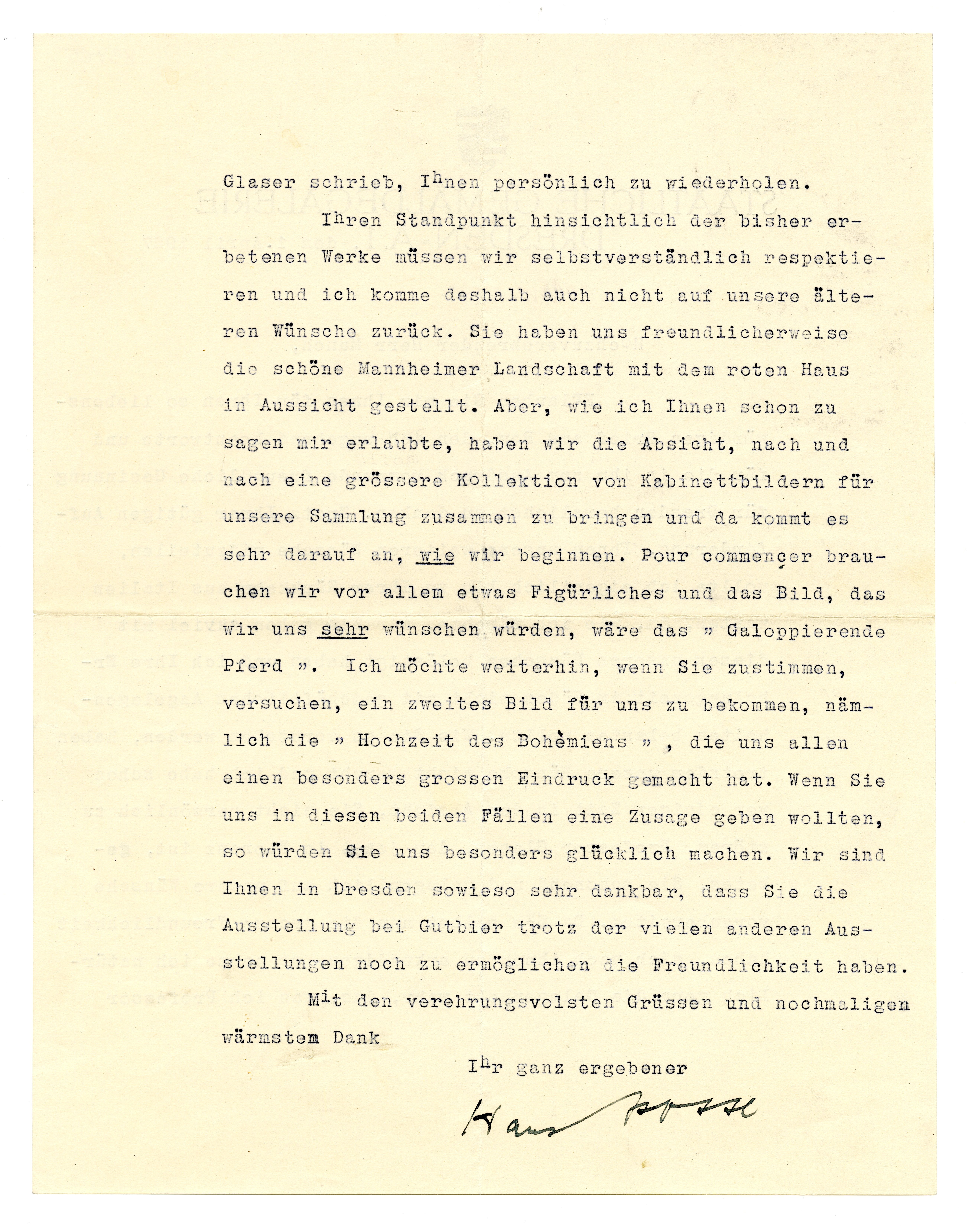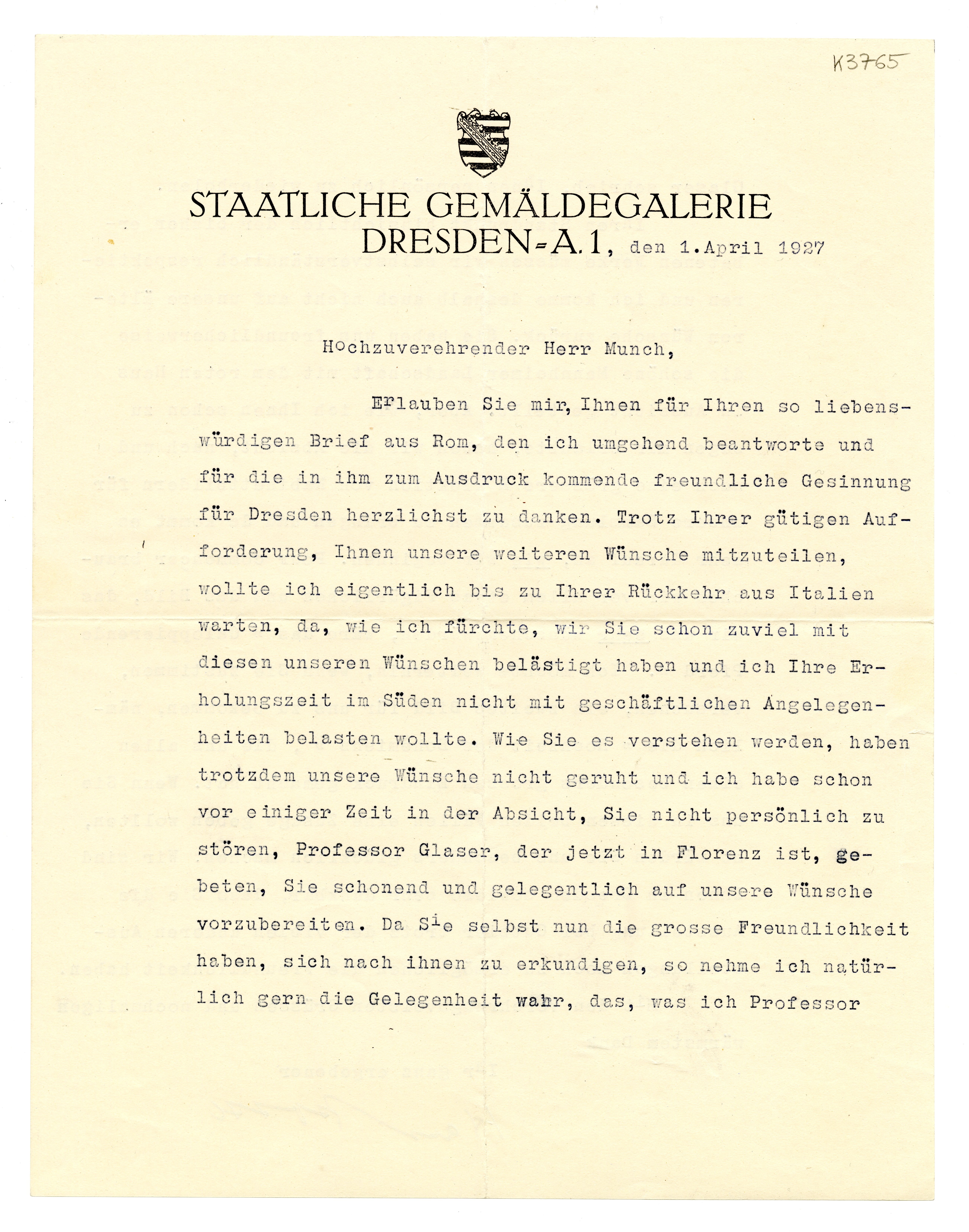 MM K 3765, Munchmuseet. Datert 01.04.1927. Brev fra Hans Posse, Staatliche Gemäldegalerie og Internationale Kunstausstellung 1926.
