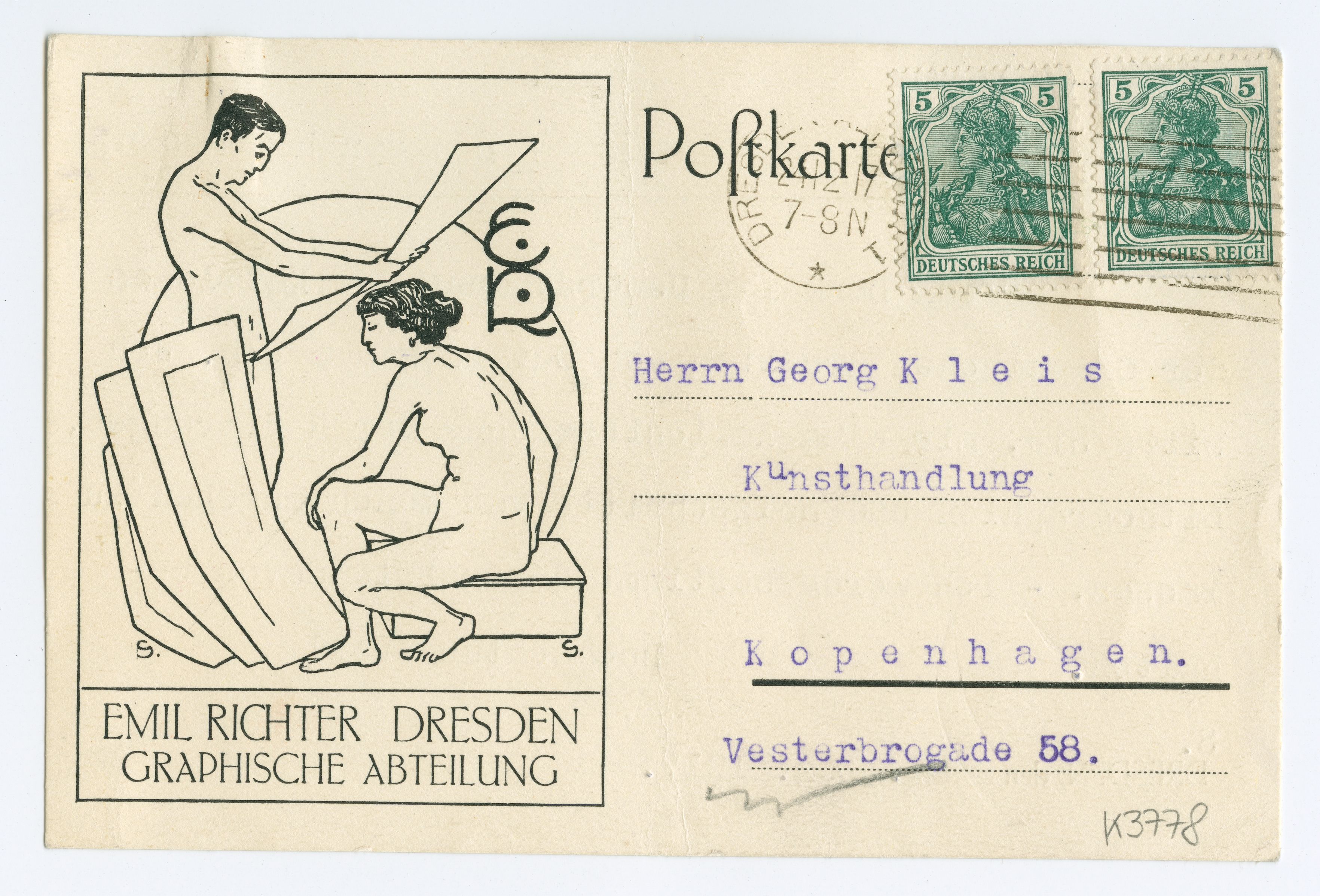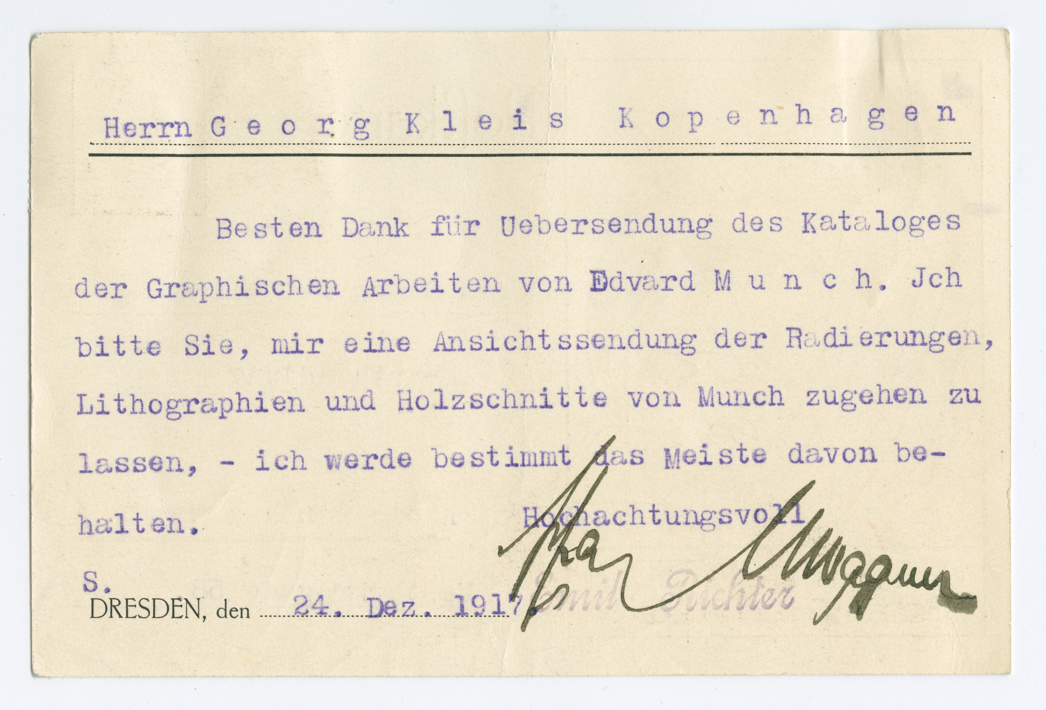 MM K 3778, Munchmuseet. Datert 24.12.1917. Brev fra Hofkunsthändler Emil Richter Herrmann Holst.