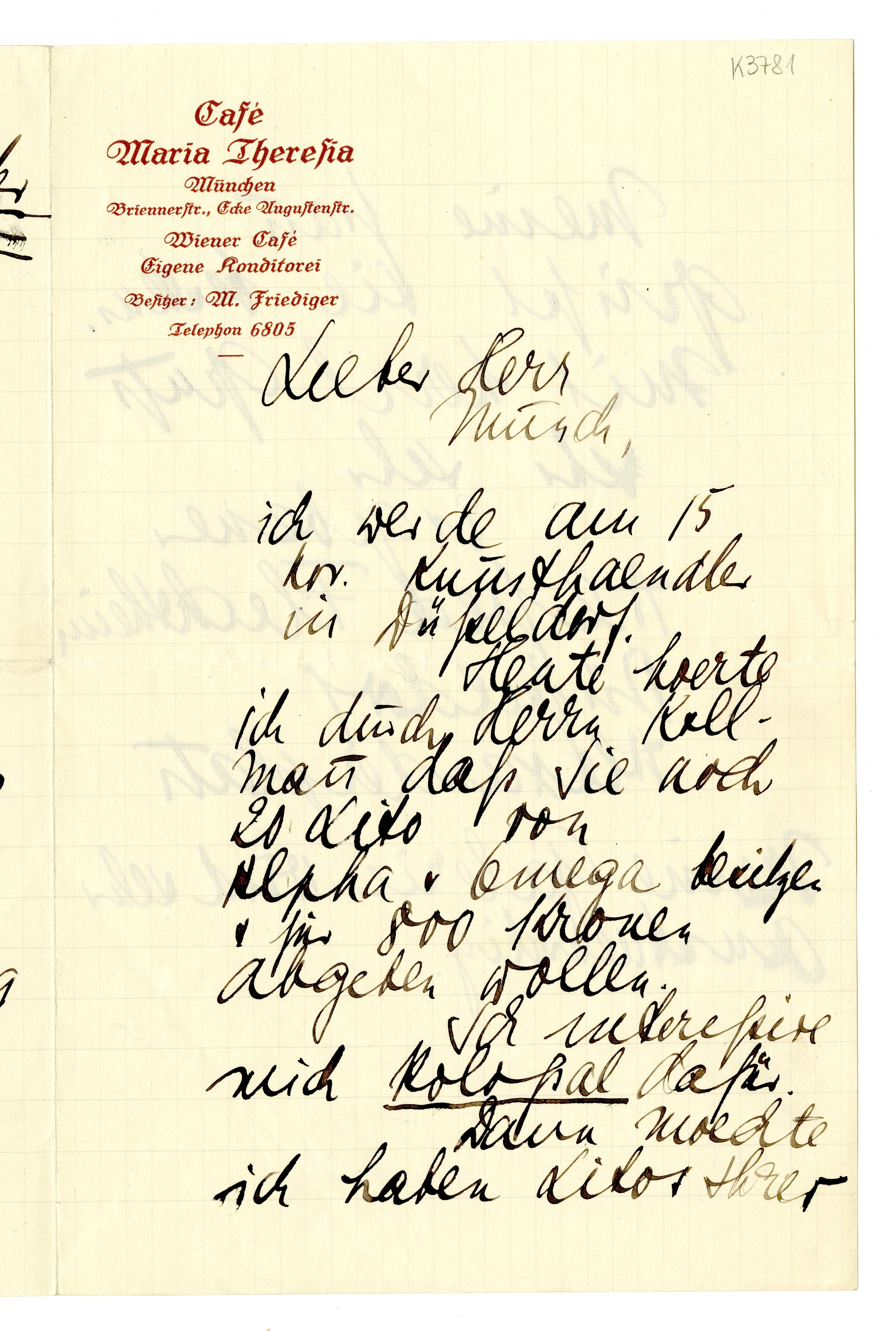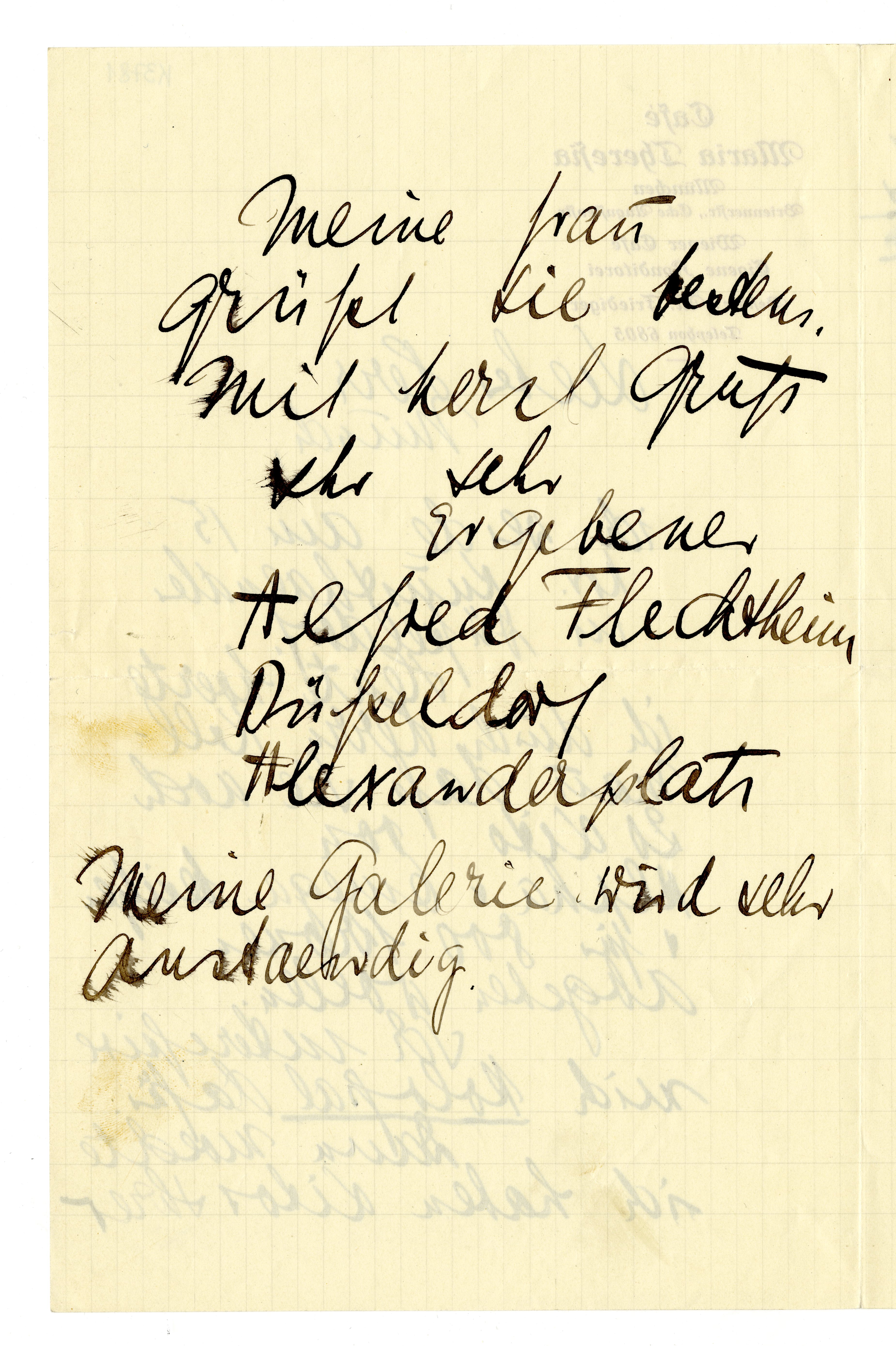 MM K 3781, Munchmuseet. Ikke datert. Brev fra Alfred Flechtheim, Alfred Flechtheim Galerie.