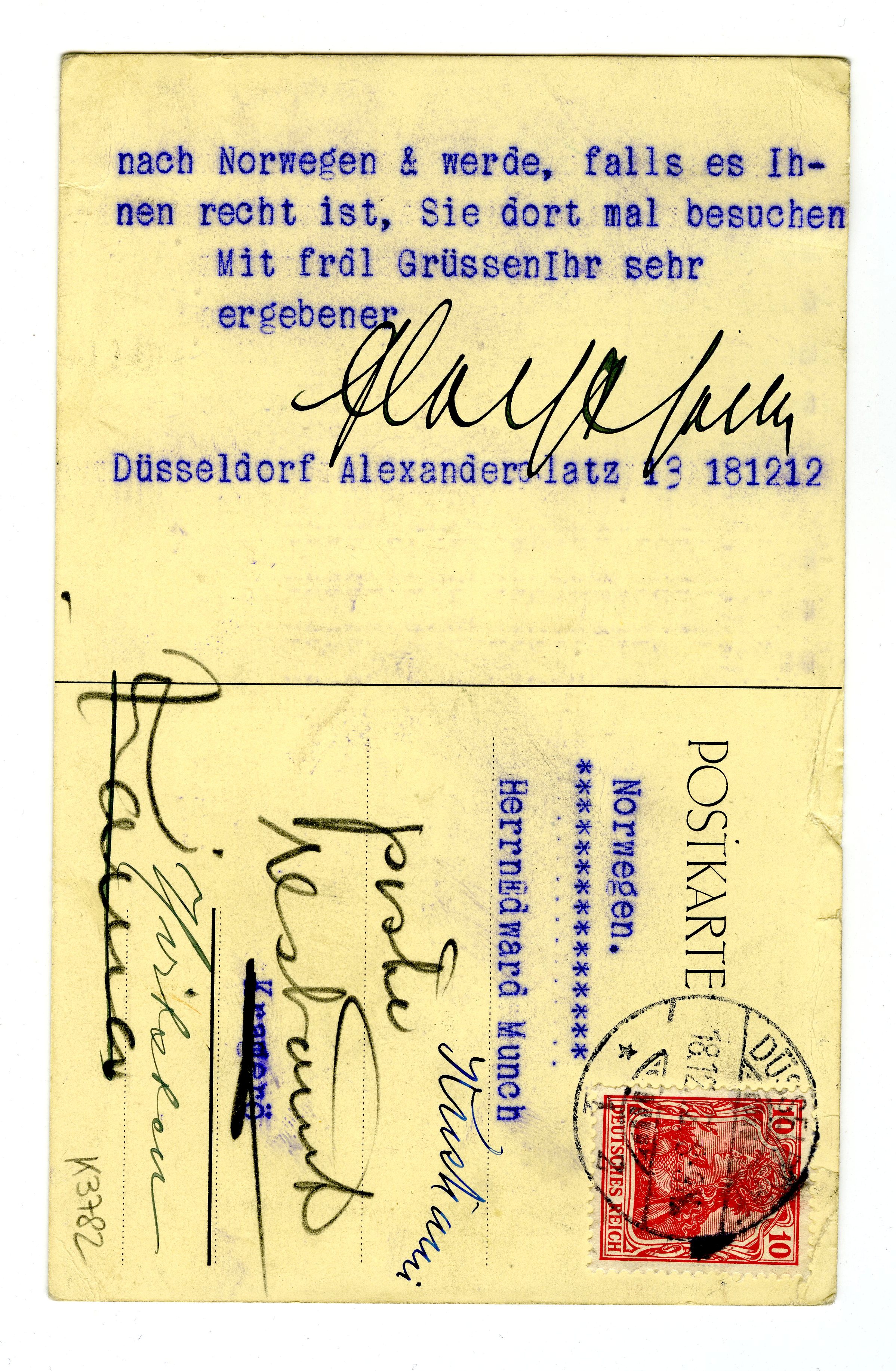 MM K 3782, Munchmuseet. Datert 18.12.1912. Brev fra Alfred Flechtheim, Alfred Flechtheim Galerie.