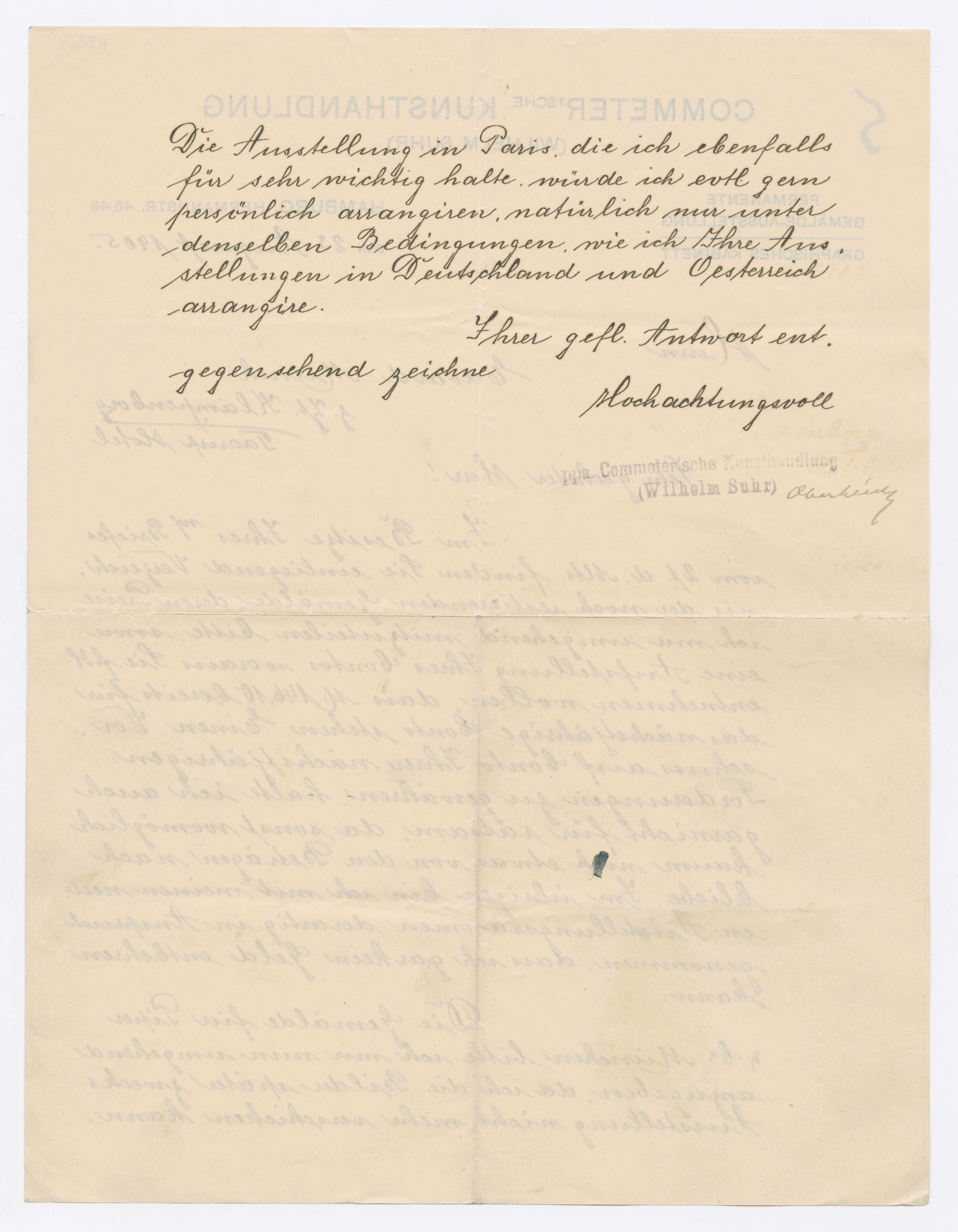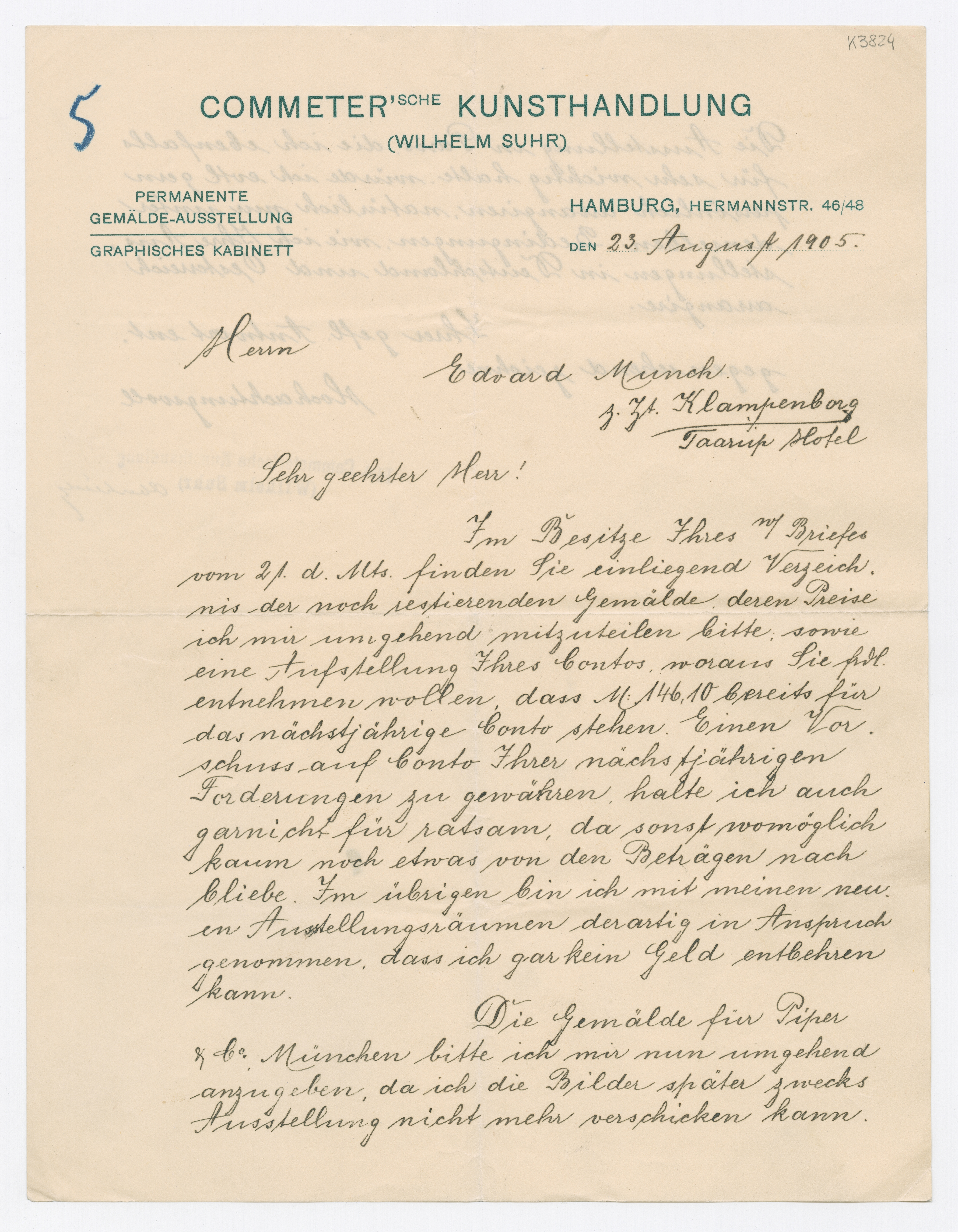 MM K 3824, Munchmuseet. Datert 23.08.1905. Brev fra Albert Oberheide, Commeter'sche Kunsthandlung.