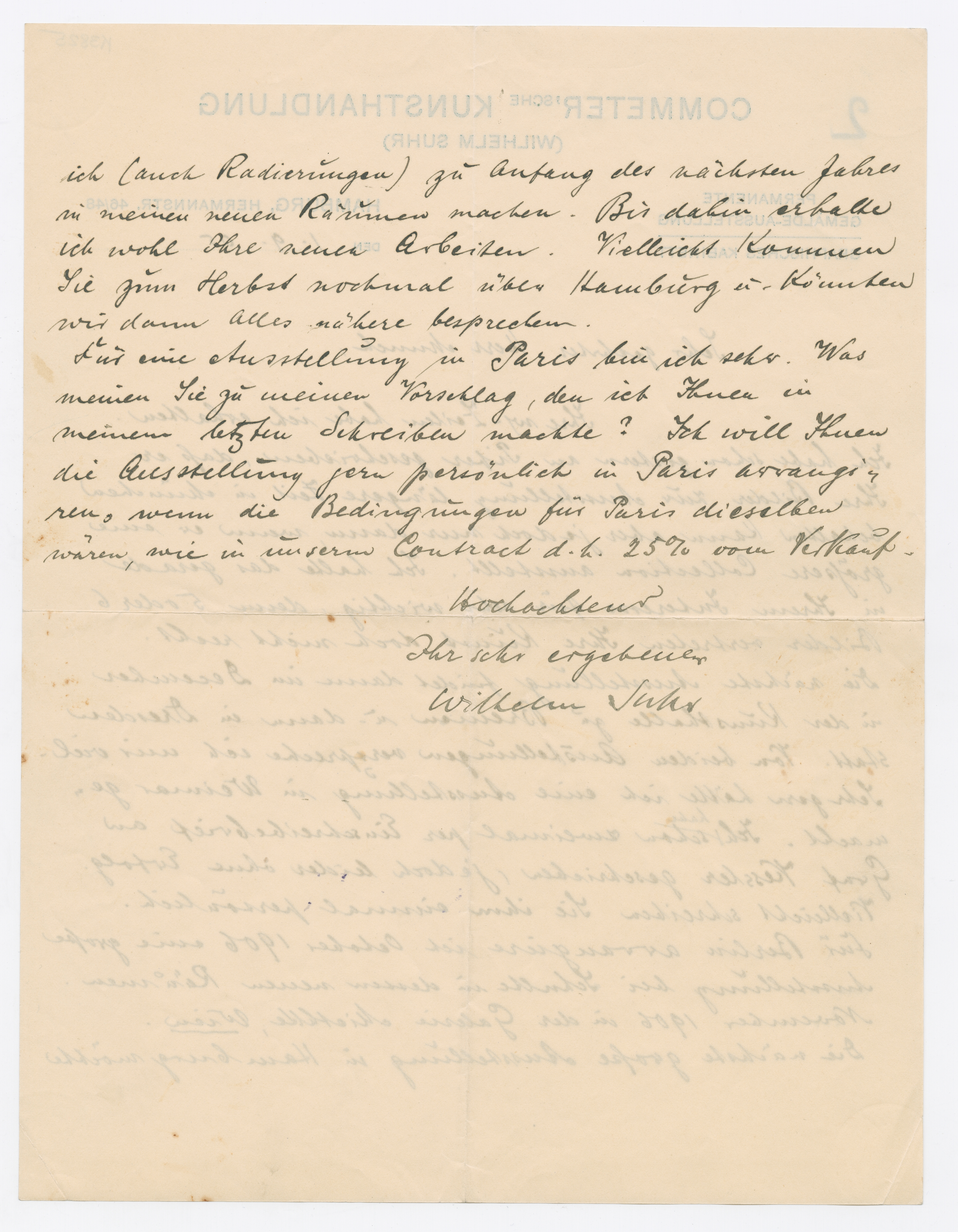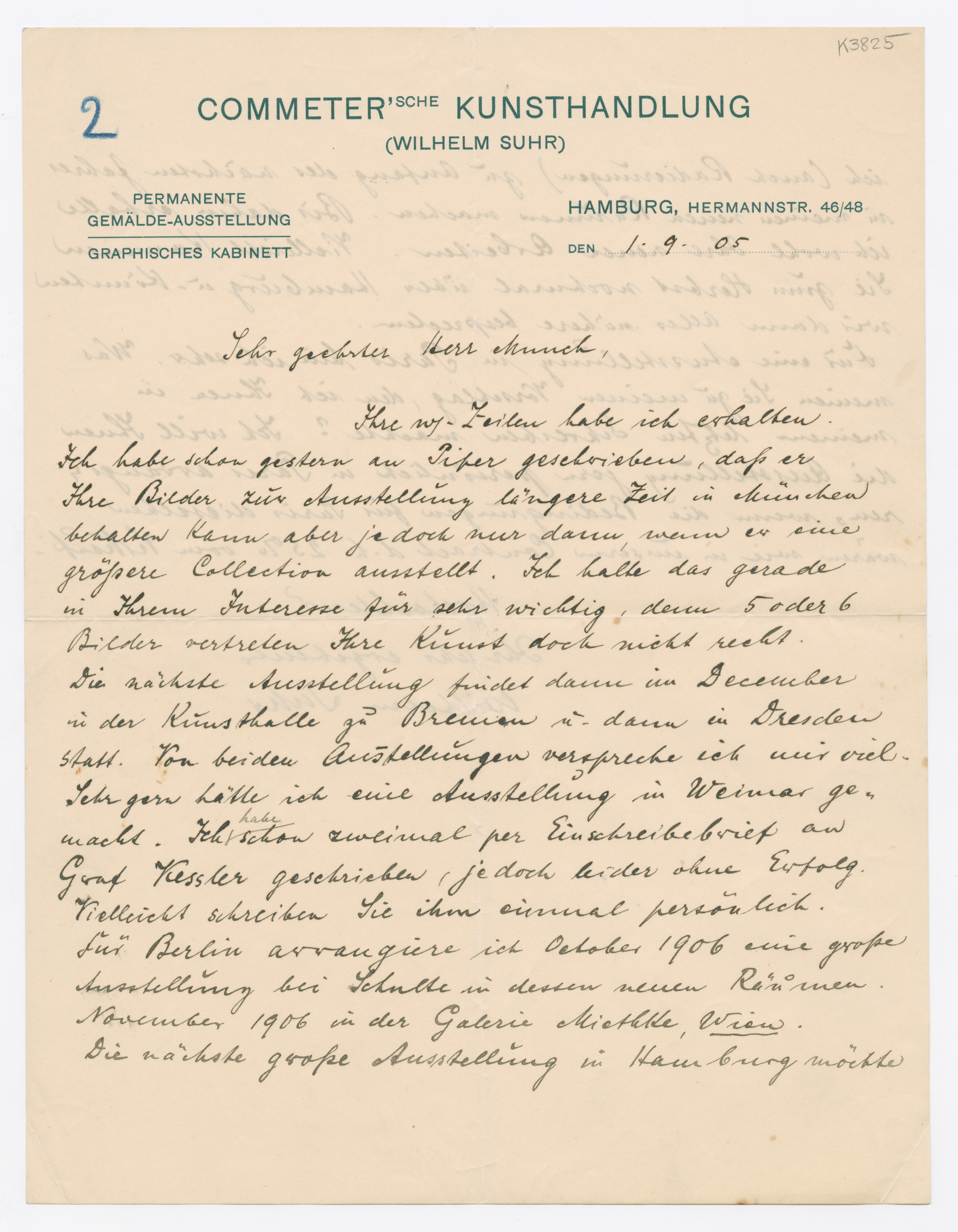MM K 3825, Munchmuseet. Datert 01.09.1905. Brev fra Wilhelm Suhr, Commeter'sche Kunsthandlung.