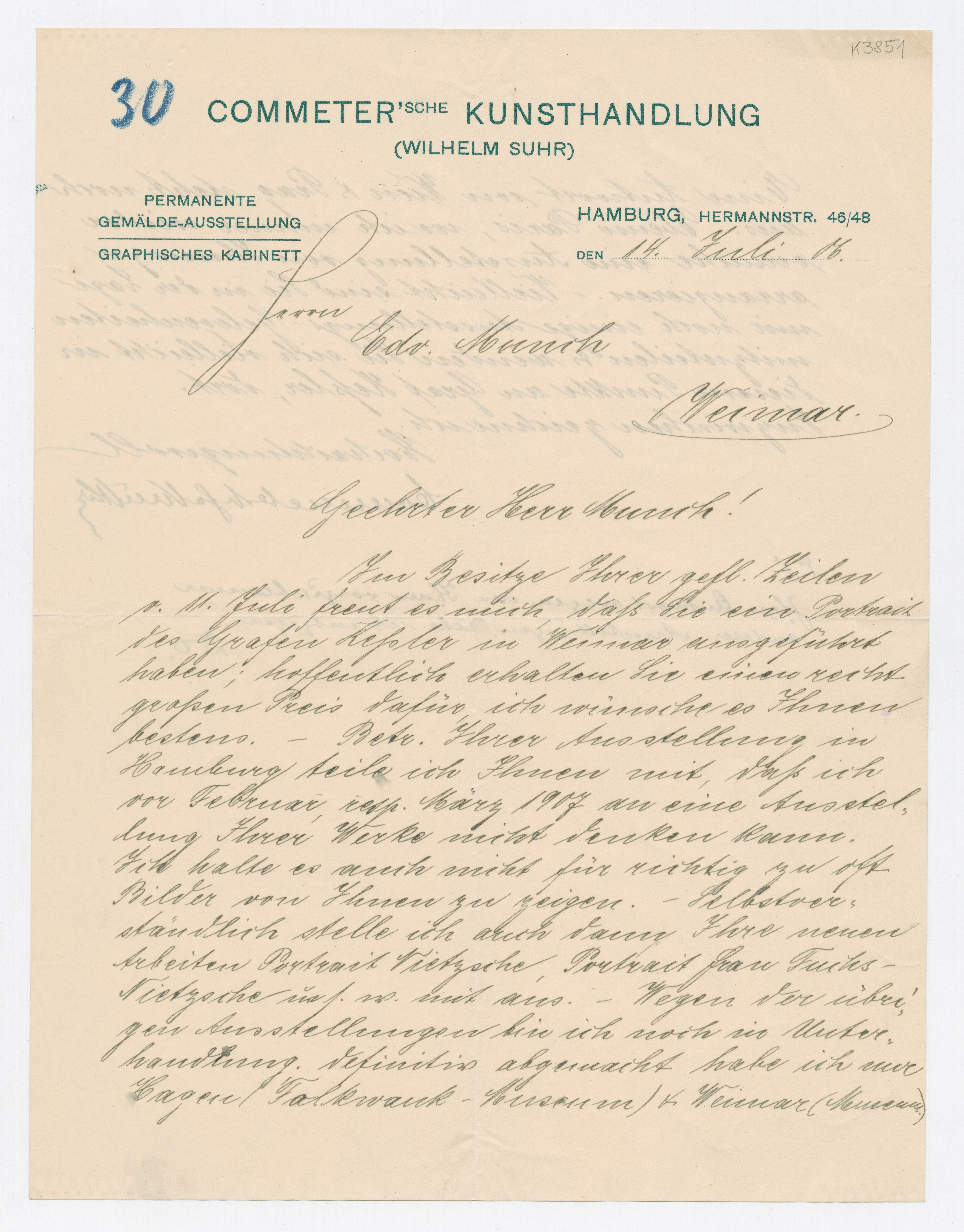 MM K 3851, Munchmuseet. Datert 14.07.1906. Brev fra Commeter'sche Kunsthandlung.