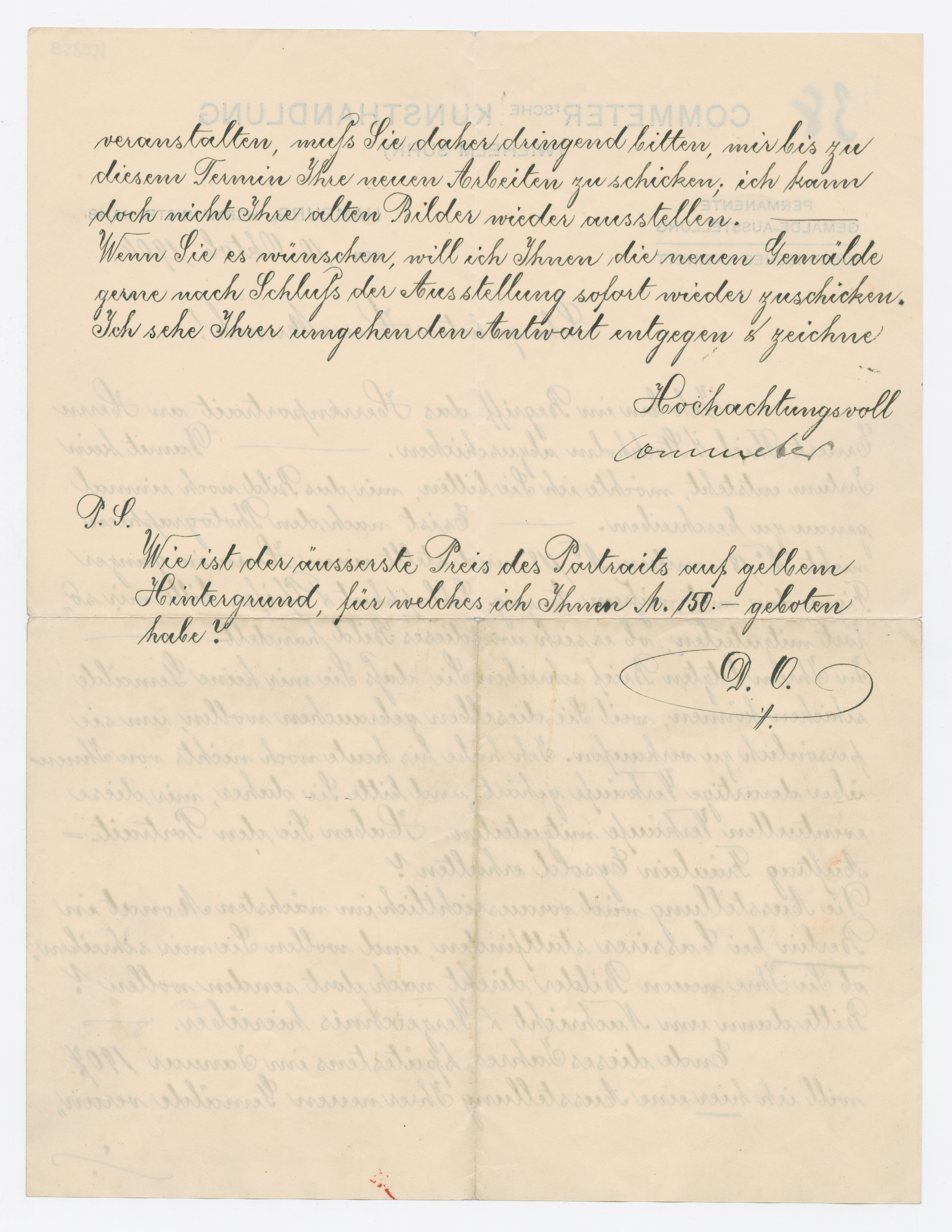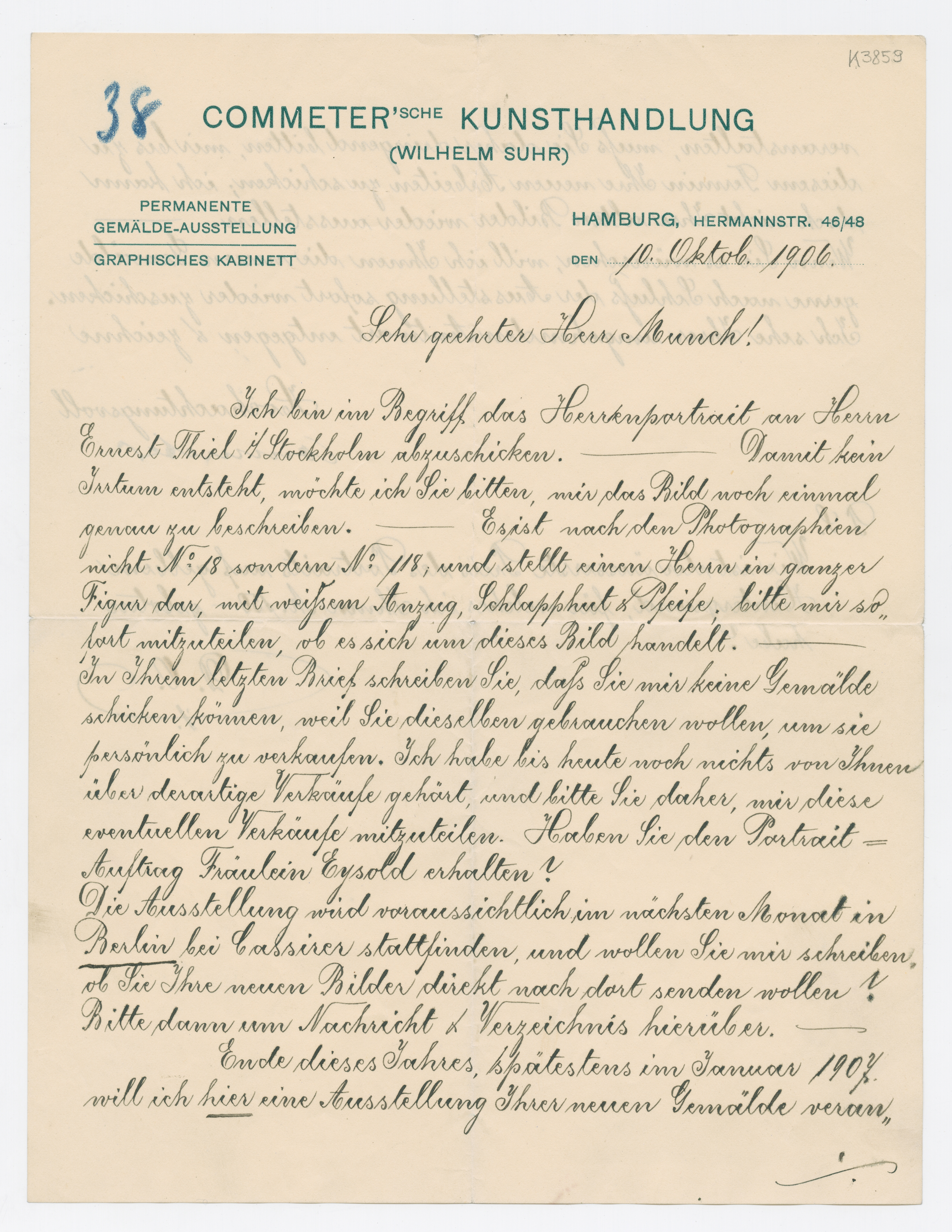 MM K 3859, Munchmuseet. Datert 10.10.1906. Brev fra Commeter'sche Kunsthandlung.