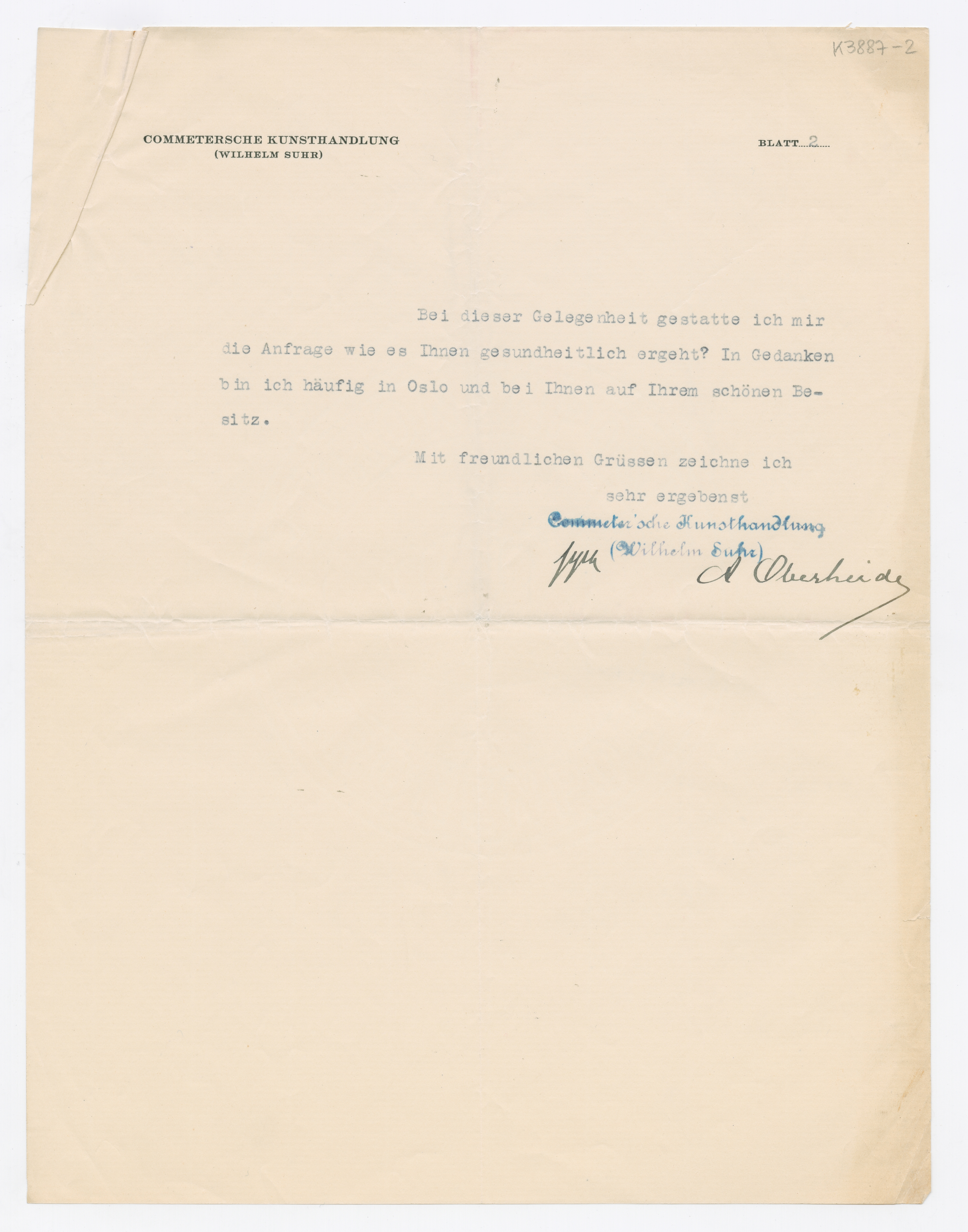 MM K 3887, Munchmuseet. Datert 30.06.1932. Brev fra Albert Oberheide, Commeter'sche Kunsthandlung.
