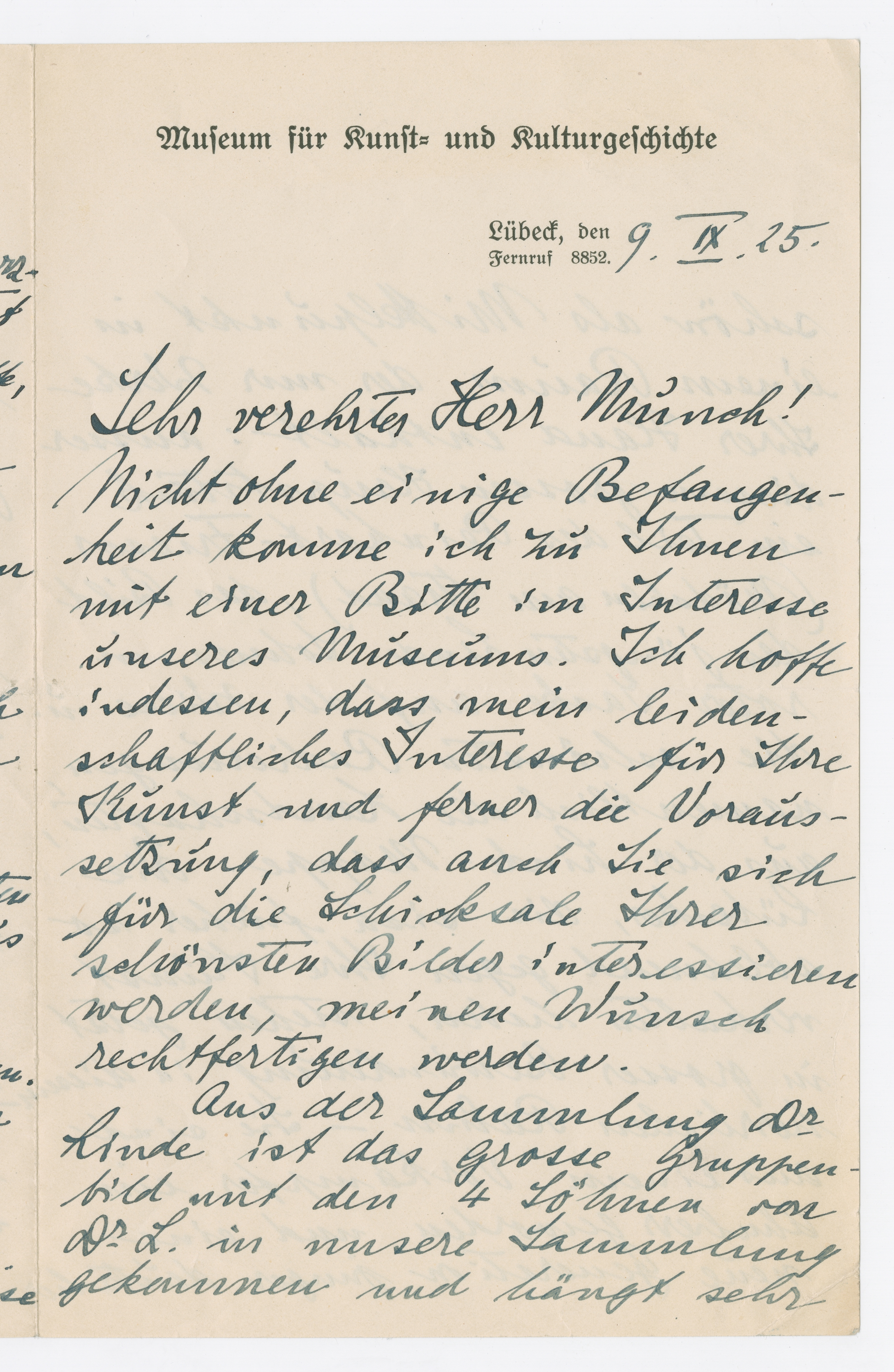 MM K 3920, Munchmuseet. Datert 09.09.1925. Brev fra Carl Georg Heise, Museum für Kunst- und Kulturgeschichte.