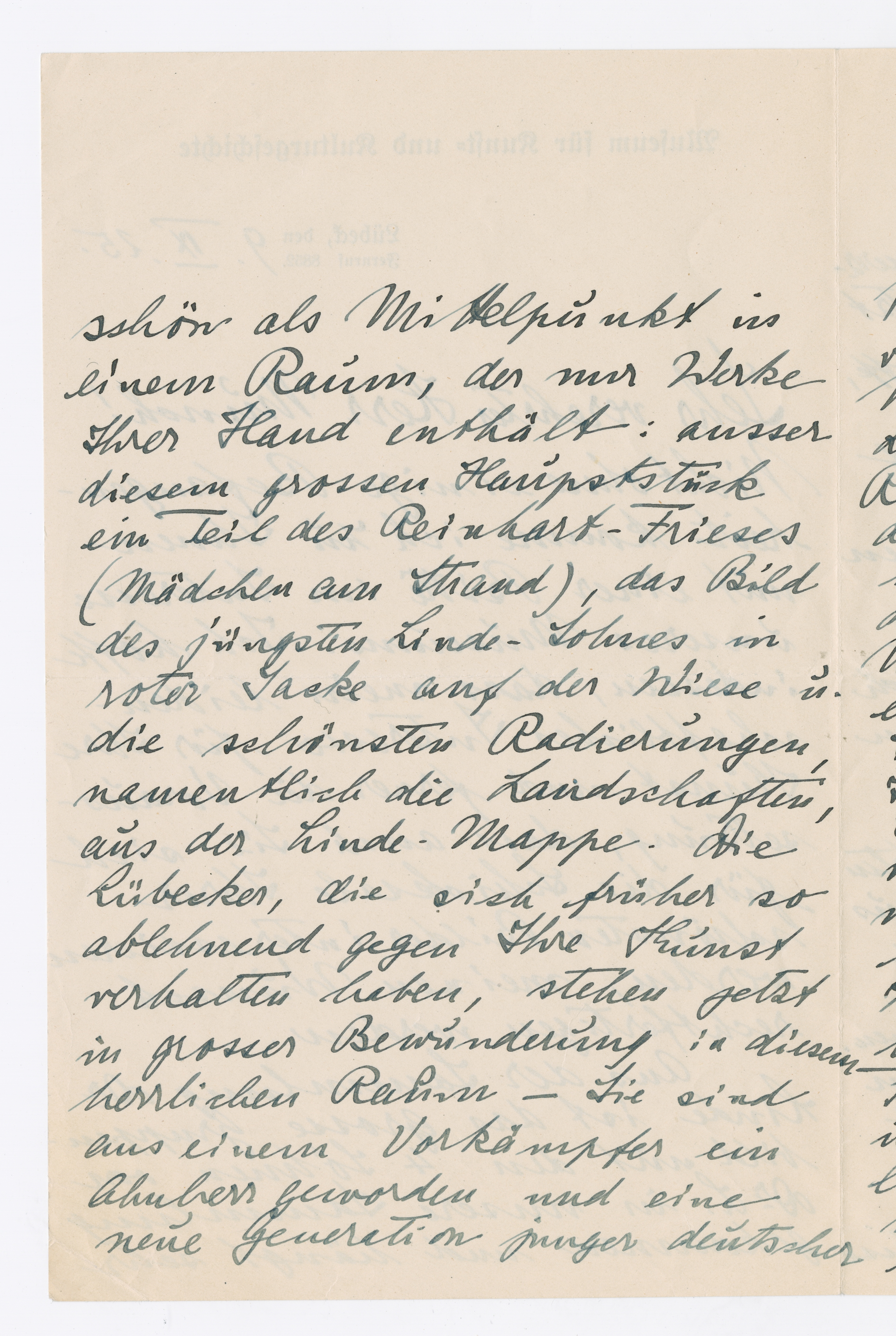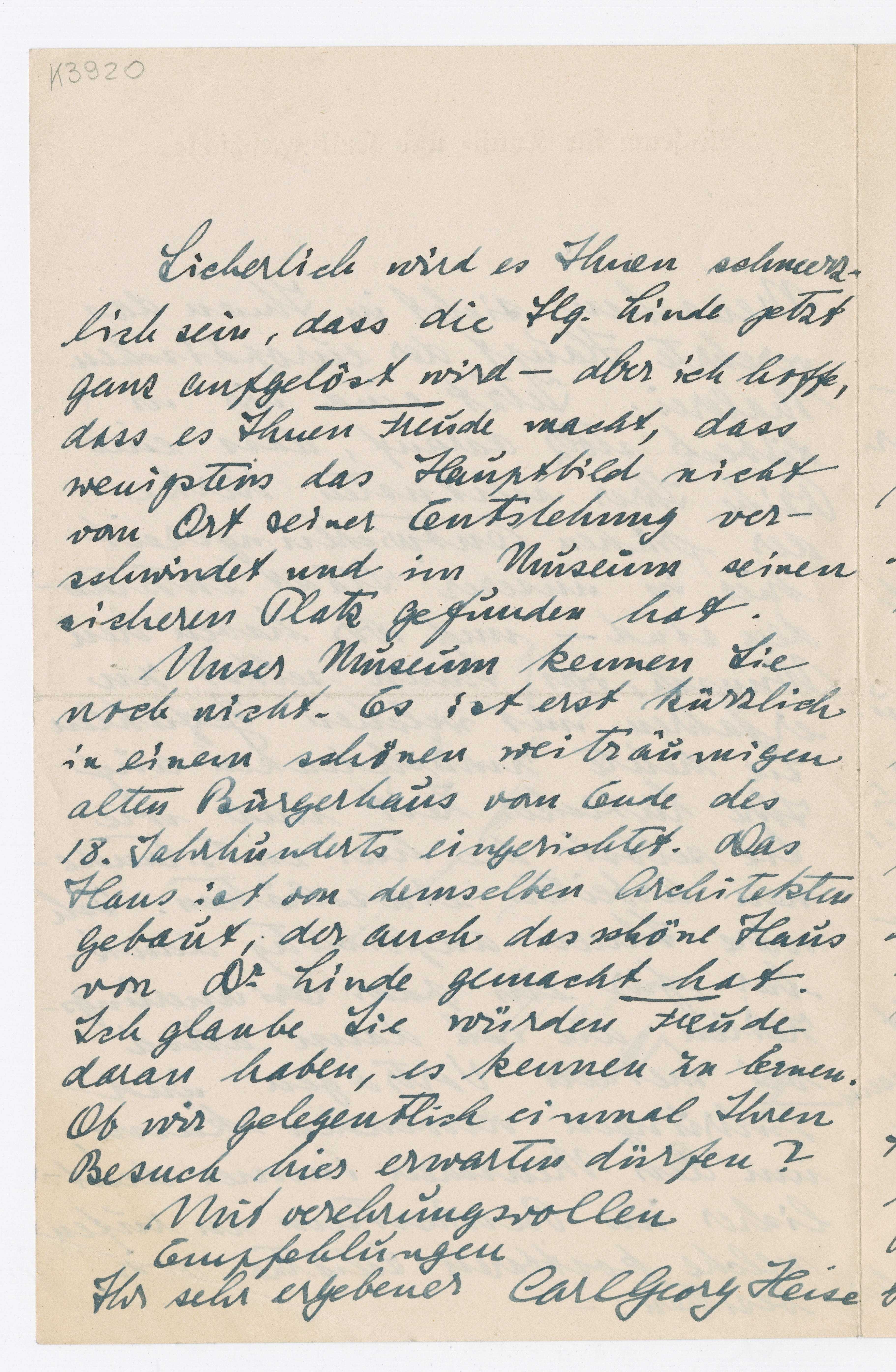 Brev fra Carl Georg Heise, Museum für Kunst- und Kulturgeschichte.