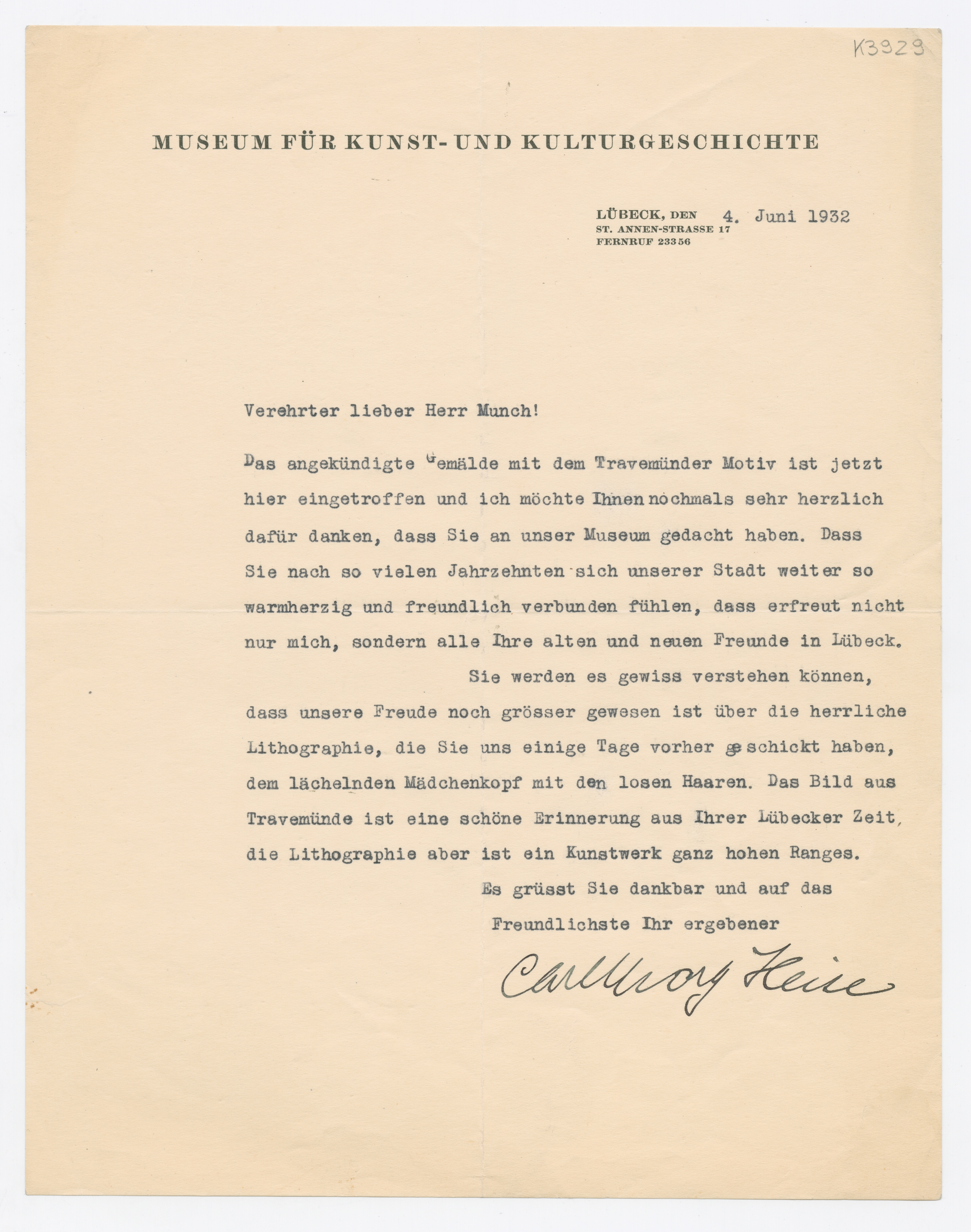 Verehrter lieber Herr Munch!