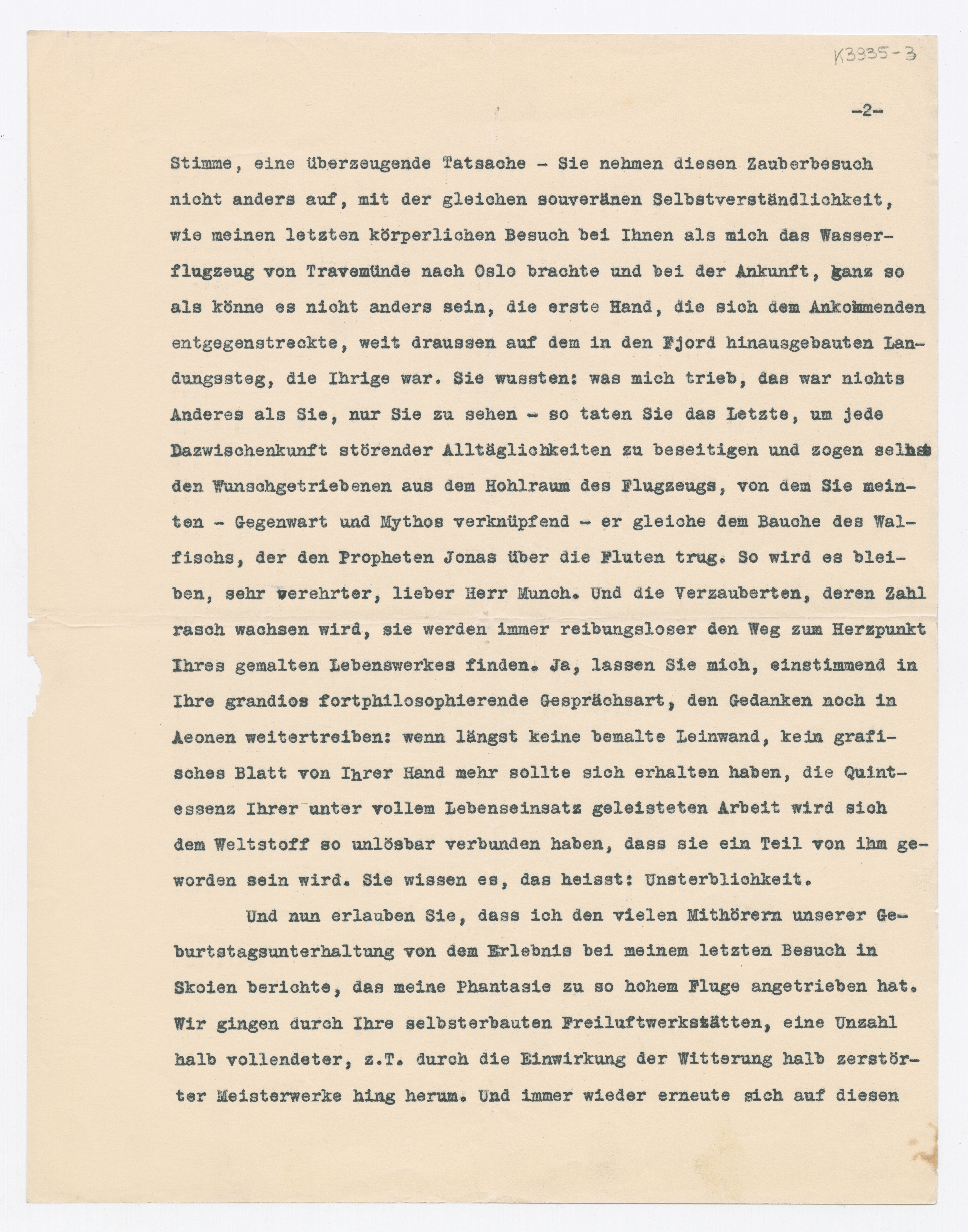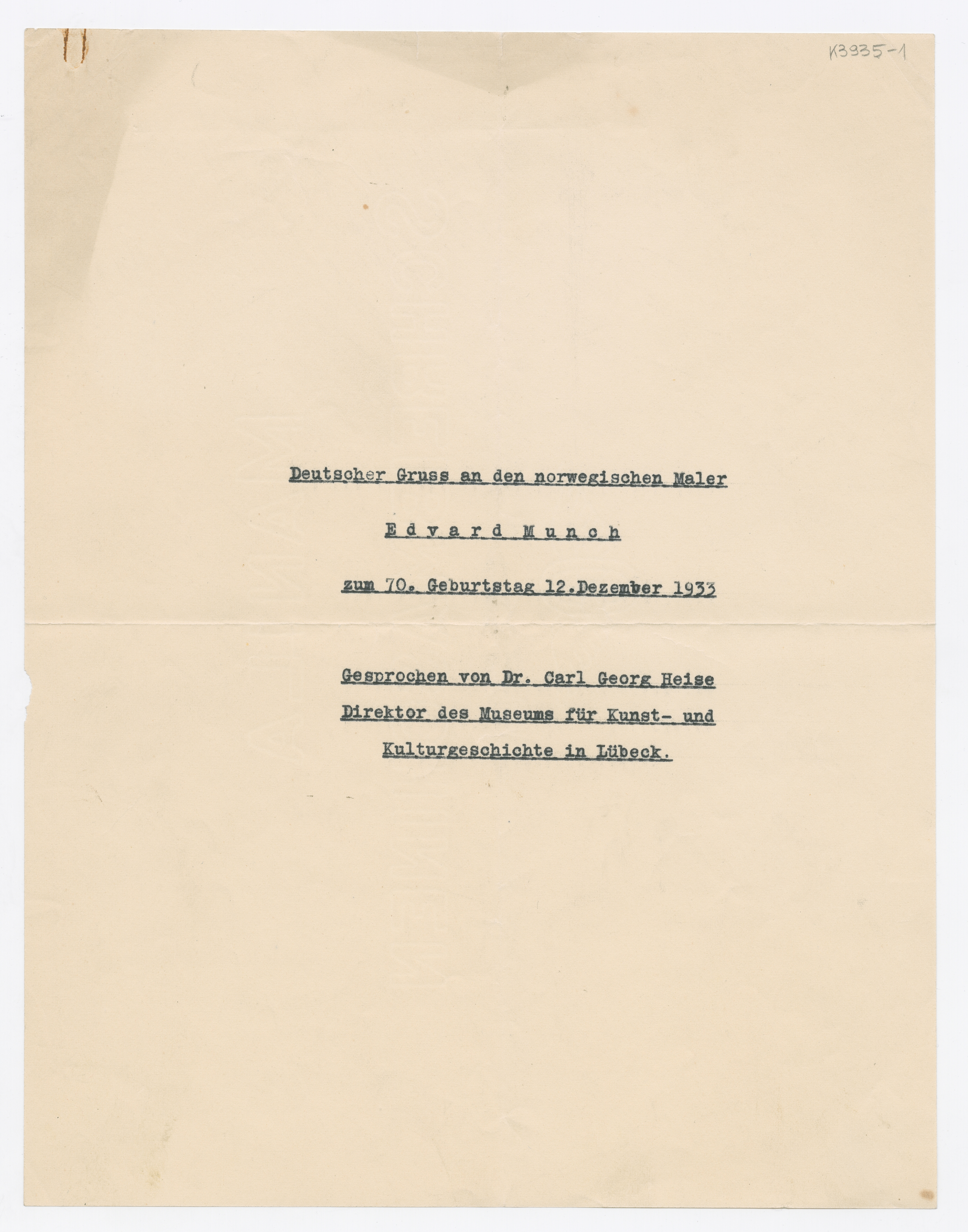 MM K 3935, Munchmuseet. Datert 12.12.1933. Brev fra Carl Georg Heise, Museum für Kunst- und Kulturgeschichte.