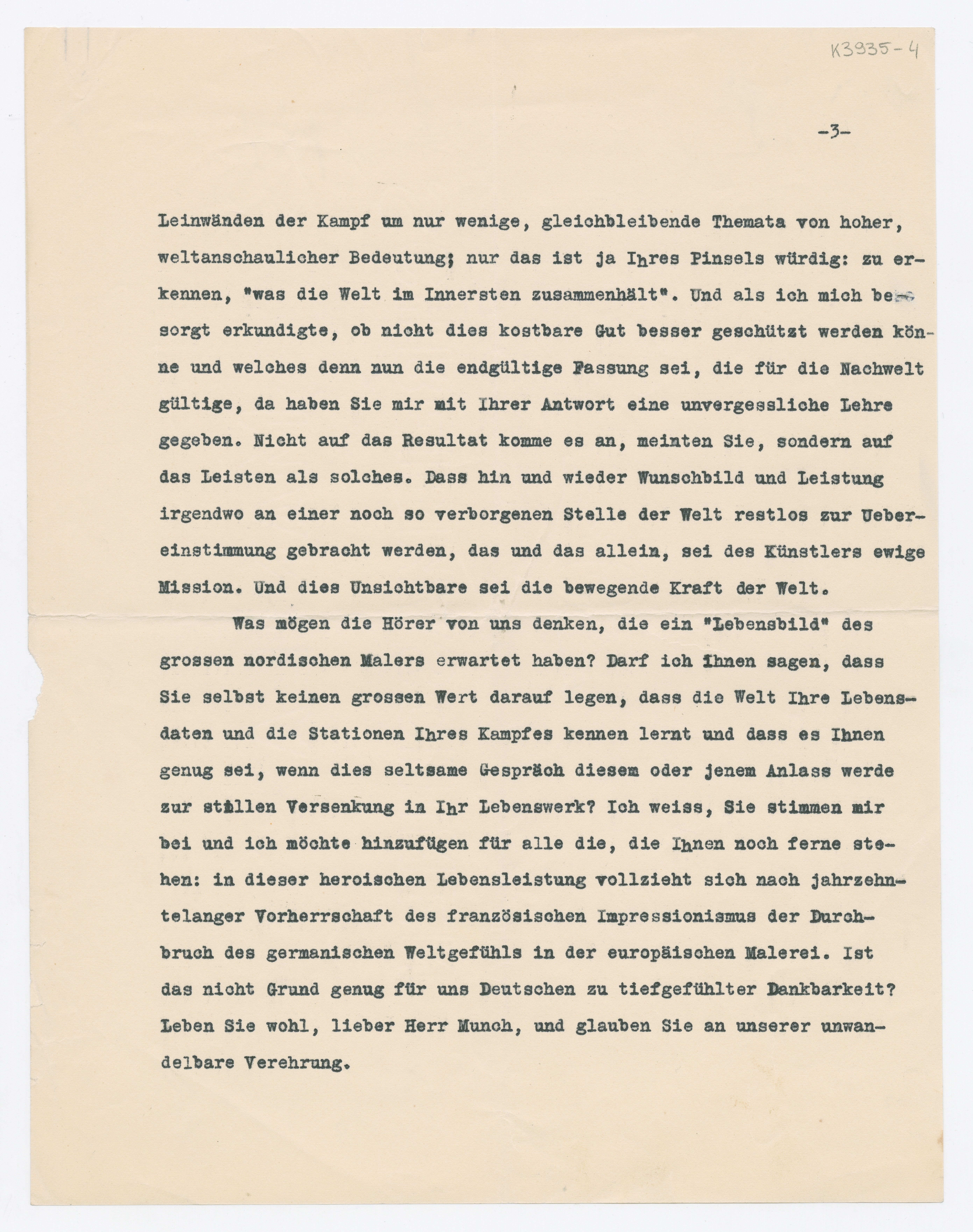 Leben Sie wohl, lieber Herr Munch, und glauben Sie an unserer unwan-