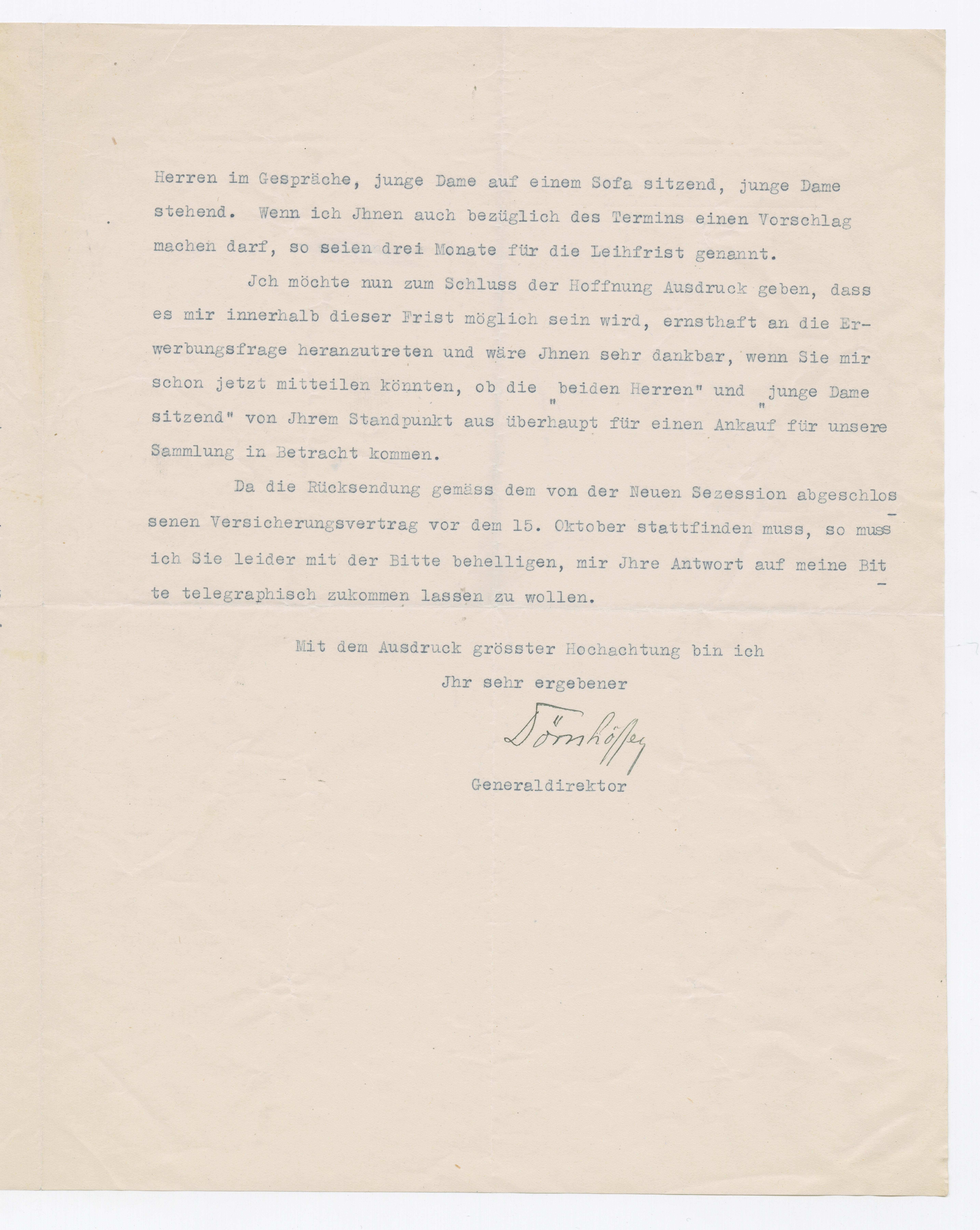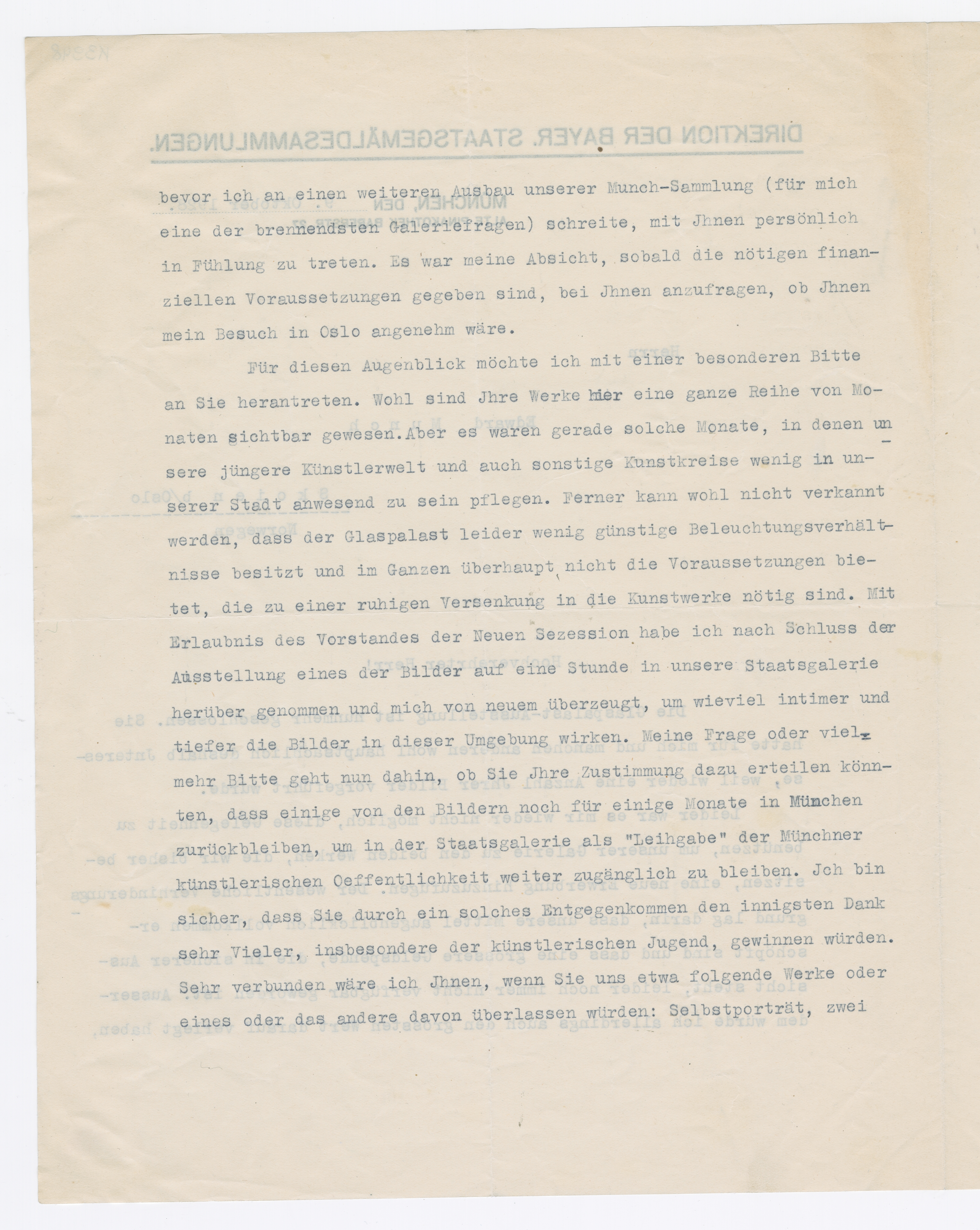 Brev fra Friedrich Dörnhöffer, Bayerischen Staatsgemäldesammlungen.